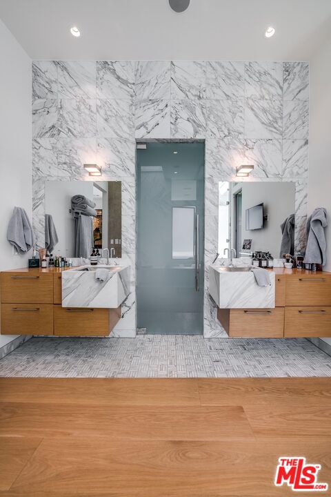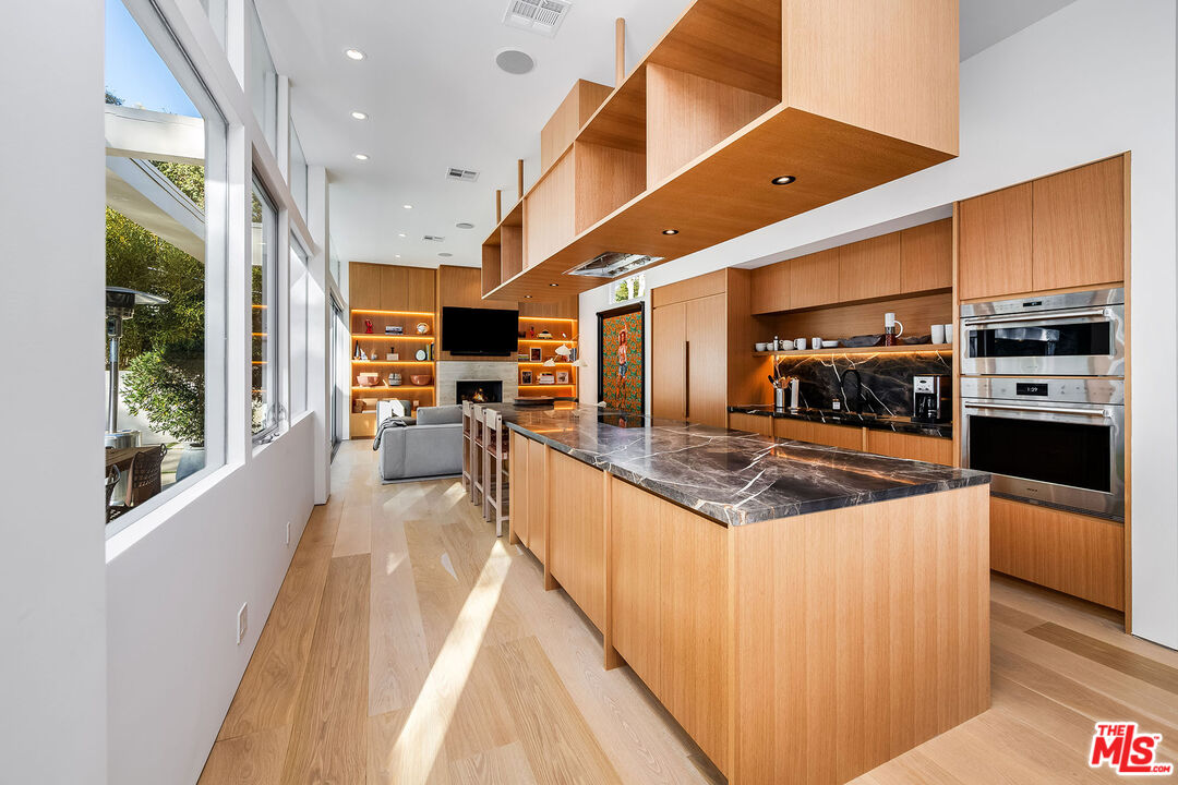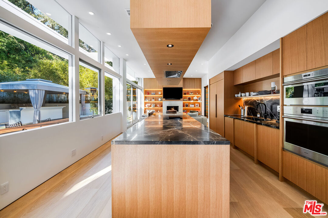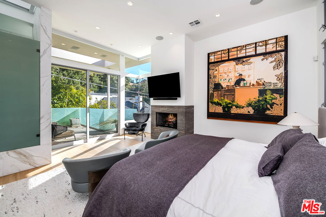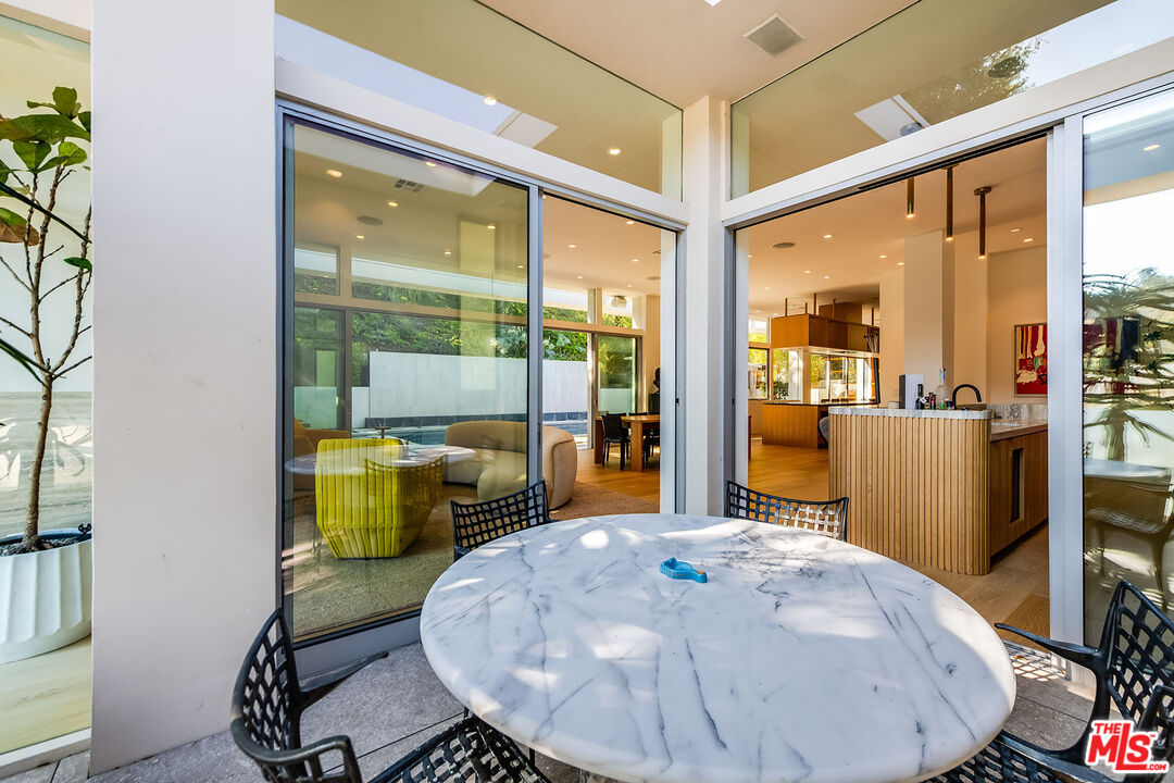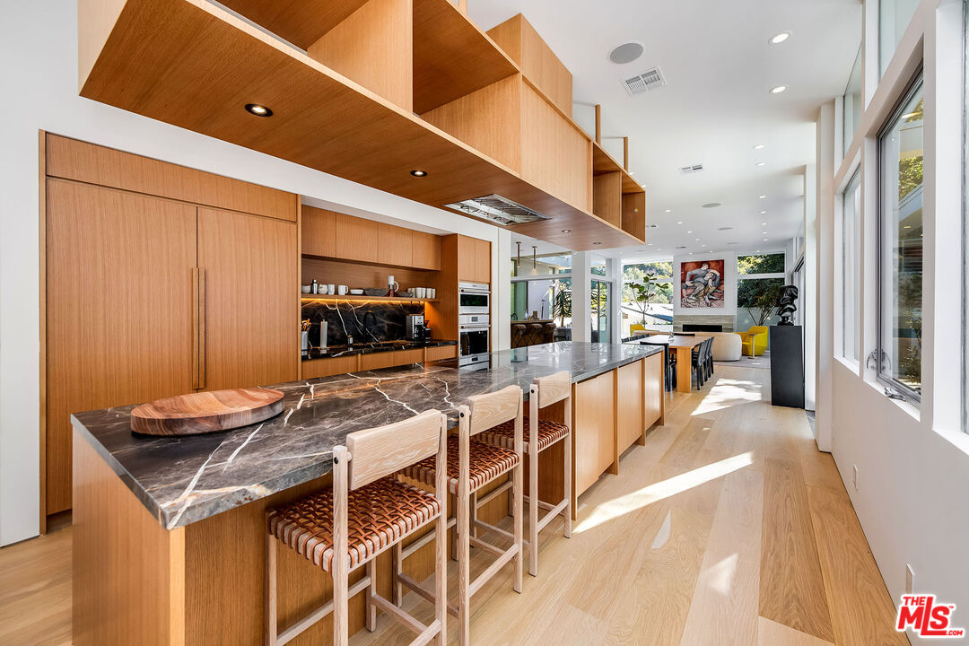 Stunning Contemporary on lower Bowmont Drive, just minutes from the heart of Beverly Hills. This fabulous home boasts high ceilings, gorgeous finishes with no expense spared, floor to ceiling windows and doors throughout that welcome bright light & open to the wonderful exterior space. Just remodeled fabulous open chef's kitchen w/large island, top-of-the line appliances w/double refrigerator/freezer & double ovens. Kitchen opens to the family rm. Great open living & dining space w/lit bar w/2 additional dishwashers & ice maker. Incredible space for entertaining. Living rm walls of sliding glass open to the spectacular pool, spa & deck w/built- in BBQ & additional multiple levels of decks. Wonderful master suite w/private deck, fireplace, walk-in closet & spa-like bath. 2 additional bdrm suites & 4th bdrm suite w/built-in bookcases & private patio. Upper level flat yard space for half court basketball, play area for kids or a possible pickle ball court. This home has been stunningly remodeled and is totally turn key, completely private & secure. This home can be purchased with most of the furniture.Interested in this Listing?
