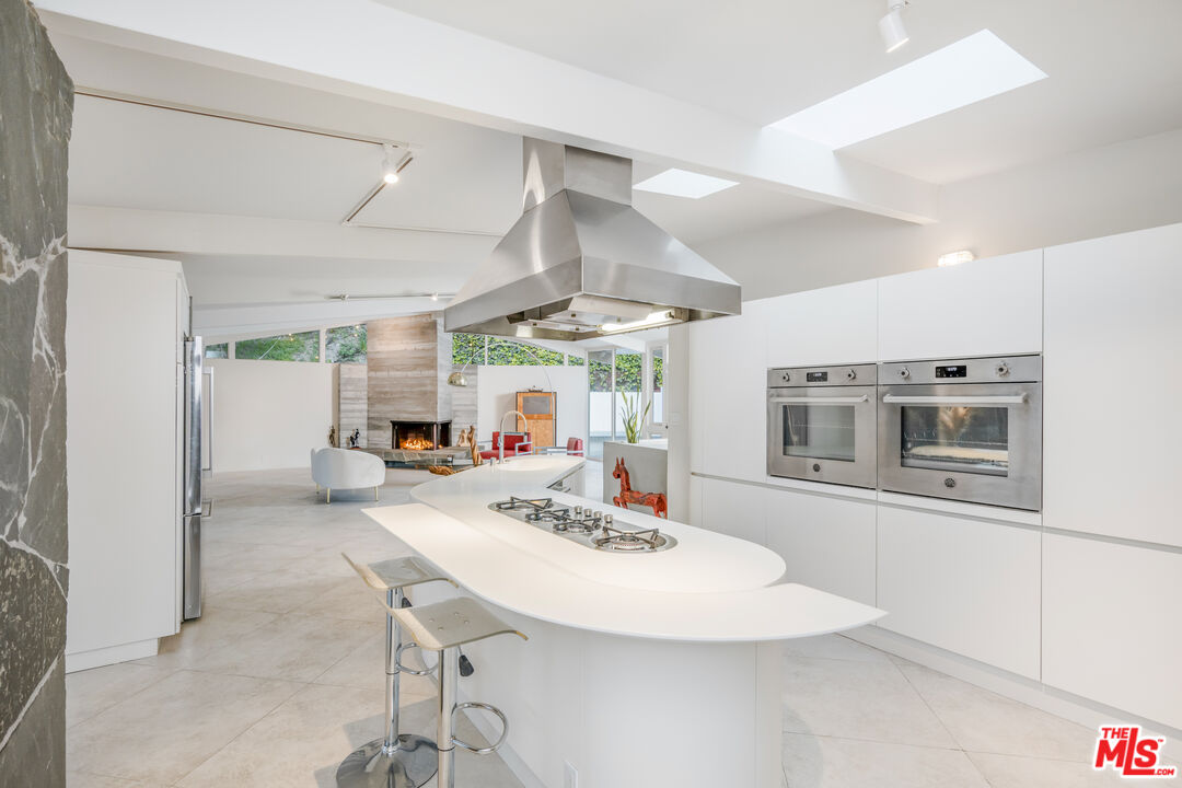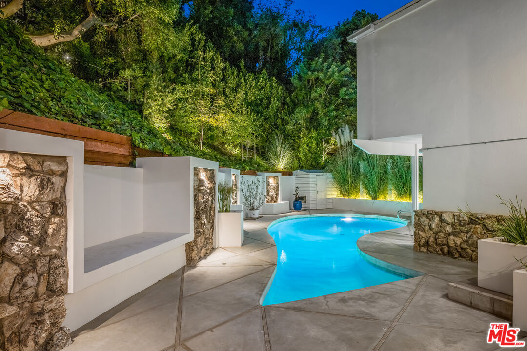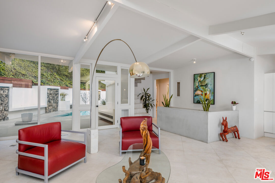 Nestled in the serene hills of Franklin Canyon, this iconic mid-century home is a masterful blend of architectural elegance, creative energy, natural beauty, and throughout the years has had a notable celebrity pedigree. From the moment you enter the double doors, you're greeted by an expansive open layout featuring porcelain floors, smooth steel-troweled walls, and soaring ceilings that flood the interiors with natural light, creating a radiant flow seamlessly connects each space. A striking concrete and stone fireplace anchors the main living area, while walls of glass dissolve the boundary between indoor comfort and outdoor splendor, with clerestory windows above adding an extra layer of natural light. The chef's kitchen sits at the heart of the home, designed with a custom curved island, sleek stainless steel appliances, and ample cabinetry perfect for everyday living and entertaining. Outside, discover a private oasis with a saltwater pool, multiple lounge areas for al fresco dining, a deck, outdoor shower, and fire bowl all curated for seamless day-to-night enjoyment. The entire upper level is devoted to the luxurious primary suite, a serene retreat with its own private balcony overlooking the lush, secluded backyard. It boasts a spa-inspired bath with a cement soaking tub and separate shower, dual closets, and a separate water closet with sink. Crisp white walls and clean modern lines further enhance the home's bright, airy aesthetic. Two guest bedrooms are located on the main level, while a versatile office/glam room on the lower level invites productivity, creativity, or peaceful retreat blending function with design. Additional features include security cameras, wine cellar and large storage room. Enjoy a rare sense of escape with Franklin Canyon Park steps away, offering serene hiking trails right outside your door. Nature and wildlife provide the perfect backdrop for peaceful outdoor exploration. Whether you're seeking a quiet retreat or an invigorating adventure, the park delivers a truly idyllic setting. TreePeople is also nearby, offering another opportunity to connect with nature. Despite its secluded feel, the home is just minutes from the vibrant offerings of both Beverly Hills and Studio City, blending serene privacy with easy access to world-class dining, shopping, and entertainment.Interested in this Listing?