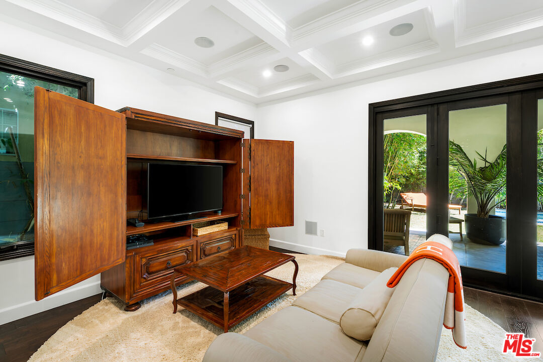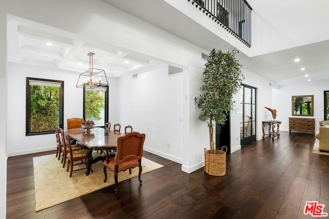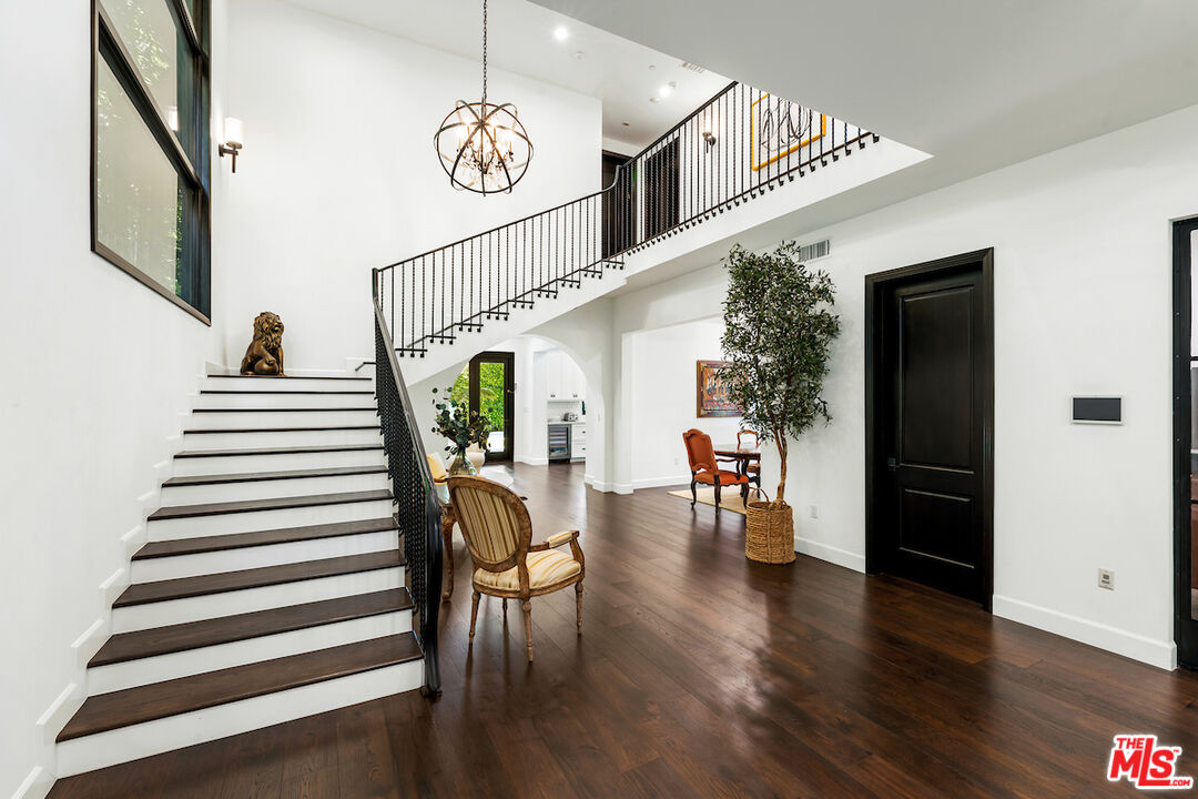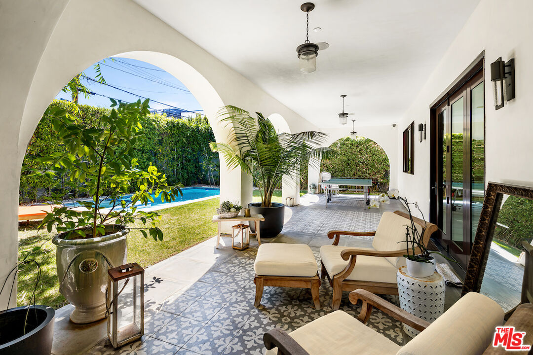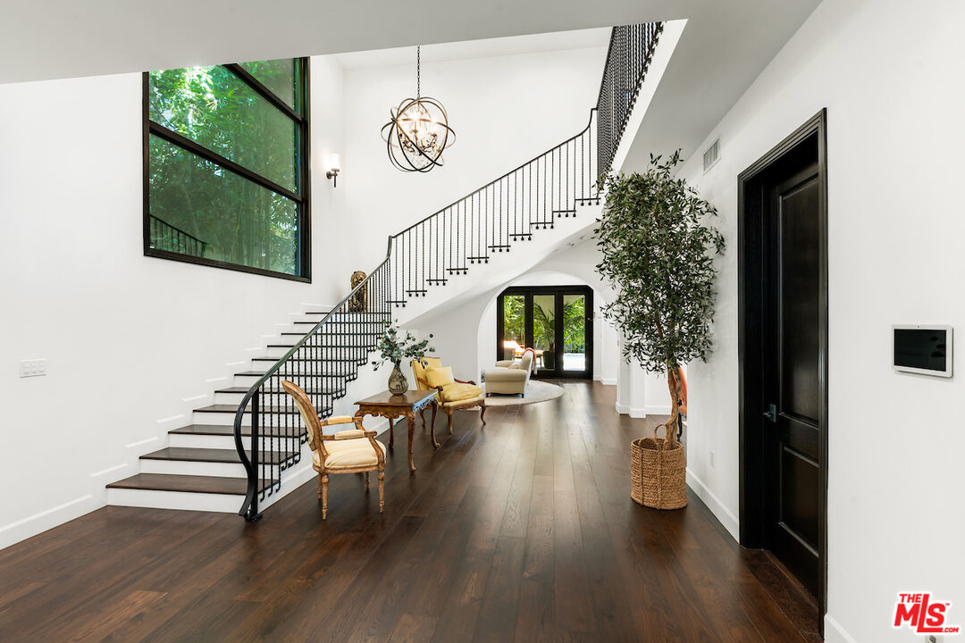 Privately tucked away behind lush, mature landscaping is this contemporary Mediterranean masterpiece in the heart of Beverly Hills. A dramatic archway welcomes guests through the double height front door and into the formal living room displaying a cozy stone fireplace. One of the five bedrooms is placed just off of the living room, offering endless options of additional uses such as an office or exercise room. Coffered ceilings ornately line the formal dining room and den, providing a touch of sheer elegance. The chef's kitchen boasts stainless steel appliances, an abundance of cabinetry for storage, and marble countertops and center island. The grand, wrought iron, staircase is the focal point, gracefully leading to the second level. Luxurious primary suite features an expansive walk-in closet with built-in's and opulent en-suite showcasing dual sinks, stand alone tub, and a generous shower. Three additional bedrooms, each generous in size, with their own en-suites and a laundry room make up this level. Accordion doors seamlessly integrate indoor-outdoor living opening to the covered patio framed by archways and ornate tile rugs. A considerable pool and hot tub meet the flat grassy pad to complete this outdoor oasis. Experience Beverly Hills' finest dining and shops just minutes away from this meticulous abode.Interested in this Listing?
