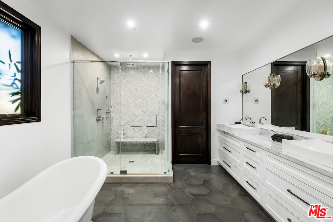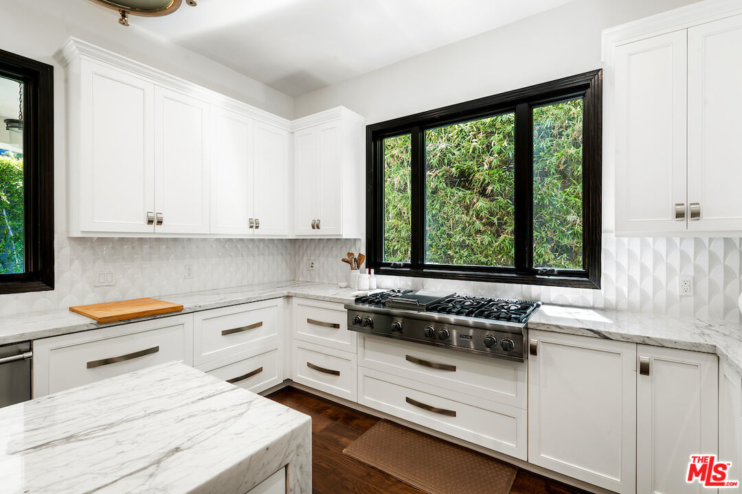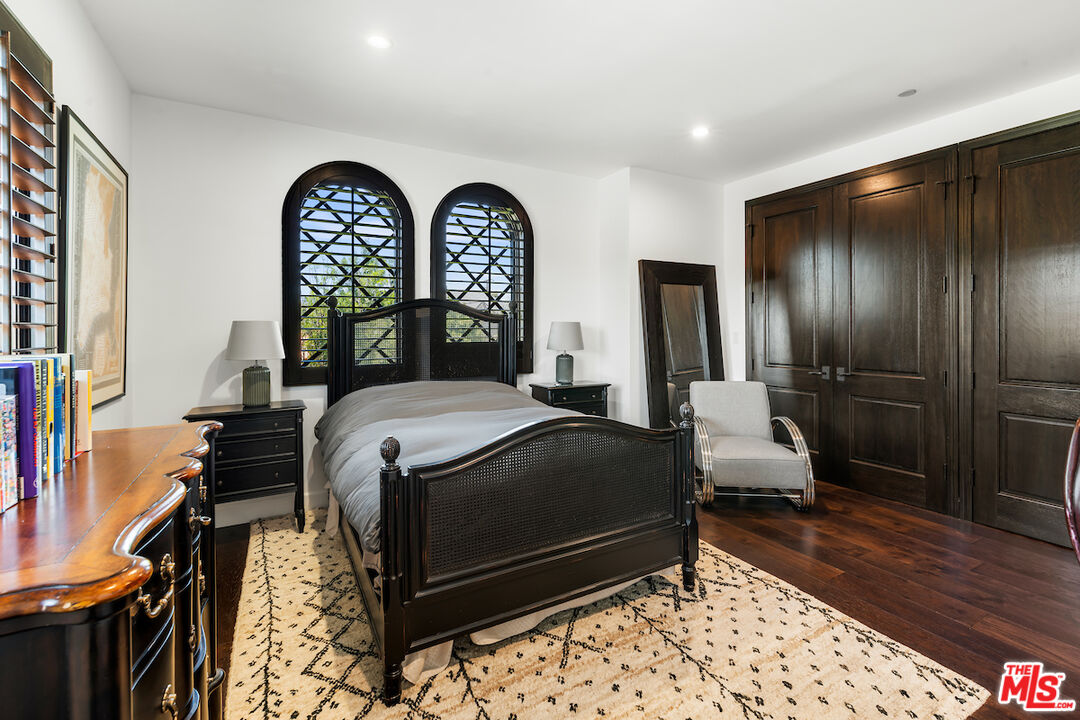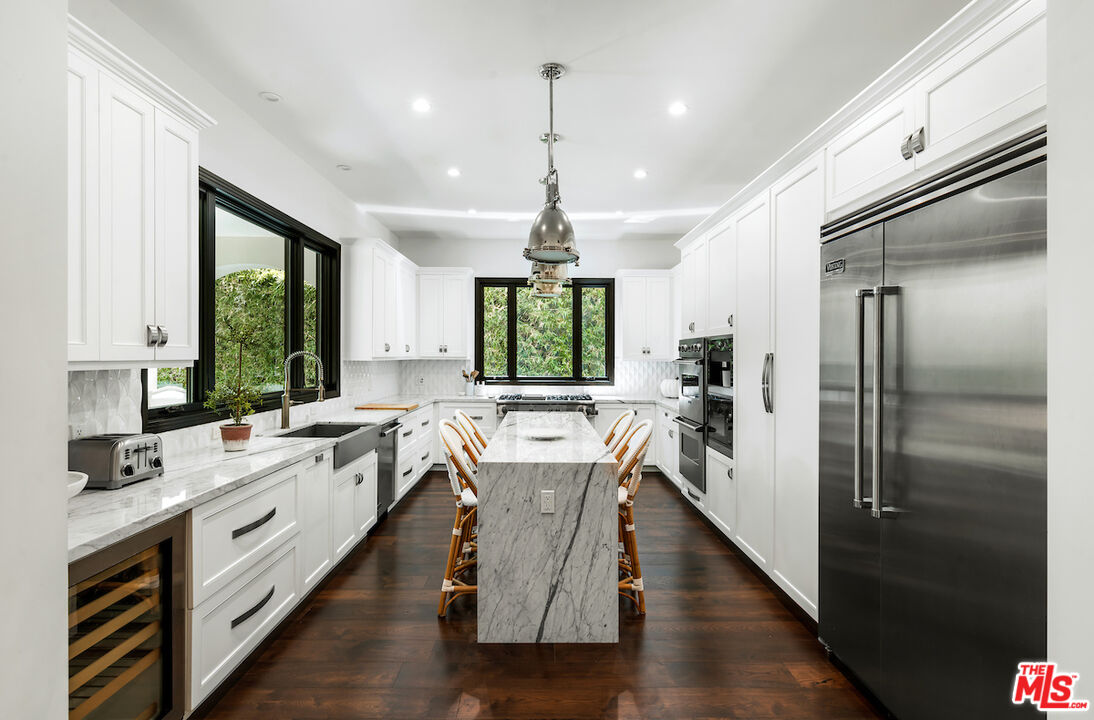 Privately tucked away behind lush, mature landscaping is this contemporary Mediterranean masterpiece in the heart of Beverly Hills. A dramatic archway welcomes guests through the double height front door and into the formal living room displaying a cozy stone fireplace. One of the five bedrooms is placed just off of the living room, offering endless options of additional uses such as an office or exercise room. Coffered ceilings ornately line the formal dining room and den, providing a touch of sheer elegance. The chef's kitchen boasts stainless steel appliances, an abundance of cabinetry for storage, and marble countertops and center island. The grand, wrought iron, staircase is the focal point, gracefully leading to the second level. Luxurious primary suite features an expansive walk-in closet with built-in's and opulent en-suite showcasing dual sinks, stand alone tub, and a generous shower. Three additional bedrooms, each generous in size, with their own en-suites and a laundry room make up this level. Accordion doors seamlessly integrate indoor-outdoor living opening to the covered patio framed by archways and ornate tile rugs. A considerable pool and hot tub meet the flat grassy pad to complete this outdoor oasis. Experience Beverly Hills' finest dining and shops just minutes away from this meticulous abode.Interested in this Listing?