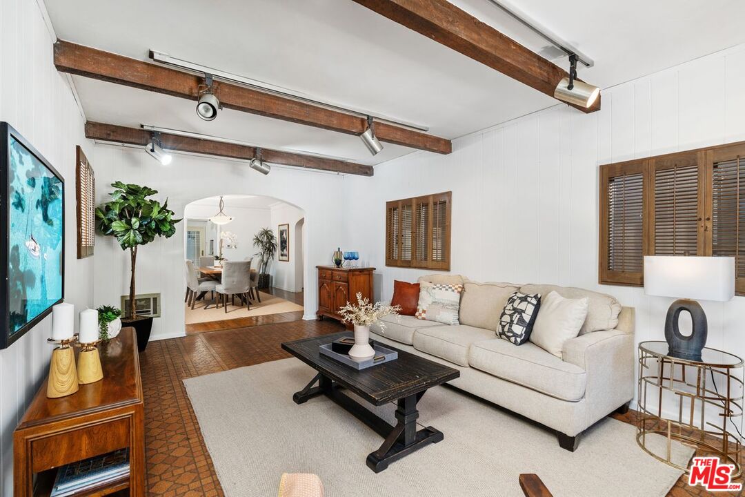Grand Old-World Spanish, 3,829 square foot home w/6 bedrooms, 4.5 baths, a grand living room, a large family room, and a good sized formal dining room. Located in Prime Beverly Hills, on a quiet street in close proximity to Roxbury Park, Beverly Drive and Beverly Hills High School. The house has 3 bedrooms upstairs (1 being a primary suite) and 3 bedrooms downstairs (1 being a 2nd primary suite). The living room has a high beamed ceiling and fireplace. The kitchen has high-end appliances. Both Primary suites have walk-in closets. The house has beautiful hardwood floors, skylights and leaded glass windows. In addition, there is a 2-car garage and 4 additional spaces.Interested in this Listing?