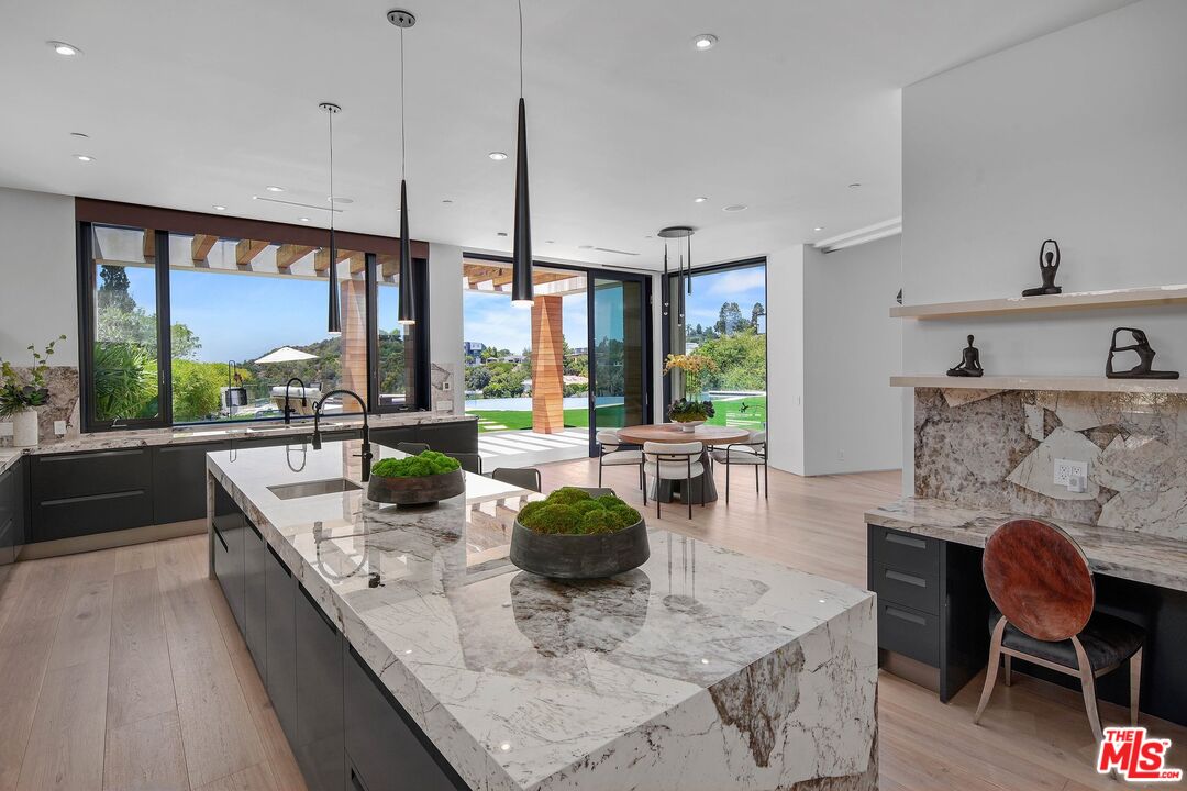 The Castle | Trousdale Estates' Best Value Under $2,000/SqFt. A rare offering in one of Beverly Hills' most prestigious enclaves, The Castle is a newly renovated estate that combines timeless design with modern sophistication and it's priced to sell. Situated on a quiet cul-de-sac, this 8,600-square-foot residence delivers extraordinary scale, privacy, and luxury at an exceptional value. Originally built in 2008 and recently reimagined with top-tier finishes, the home welcomes you with soaring ceilings, a dramatic skylight, and floor-to-ceiling glass that blurs the line between indoors and out. White oak hardwood floors, custom stone walls, and multiple fireplaces set a warm yet refined tone throughout. The chef's kitchen is outfitted with state-of-the-art appliances and a generous island, ideal for everyday living and elevated entertaining. A skylit corridor leads to the expansive primary suite featuring a private sitting area, designer closets, a spa-inspired bath, and direct access to the pool and garden. Thoughtfully designed amenities include a home theatre, wellness center with sauna and steam shower, massage room, wine cellar, bar, office, and staff quarters, all tailored for comfort, functionality, and style. Set on over 20,000 square feet, the grounds are designed for resort-style living, with a brand-new stone hardscape, lush landscaping, infinity pool, multiple fire features, and expansive outdoor lounge and dining areas. Enjoy sweeping canyon, city, and peek-a-boo ocean views. This is a rare chance to own a turnkey, statement residence in Trousdale with unmatched quality, scale, and value. Also available for lease at $82,500/month.Interested in this Listing?