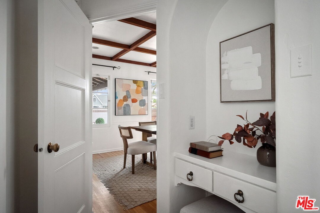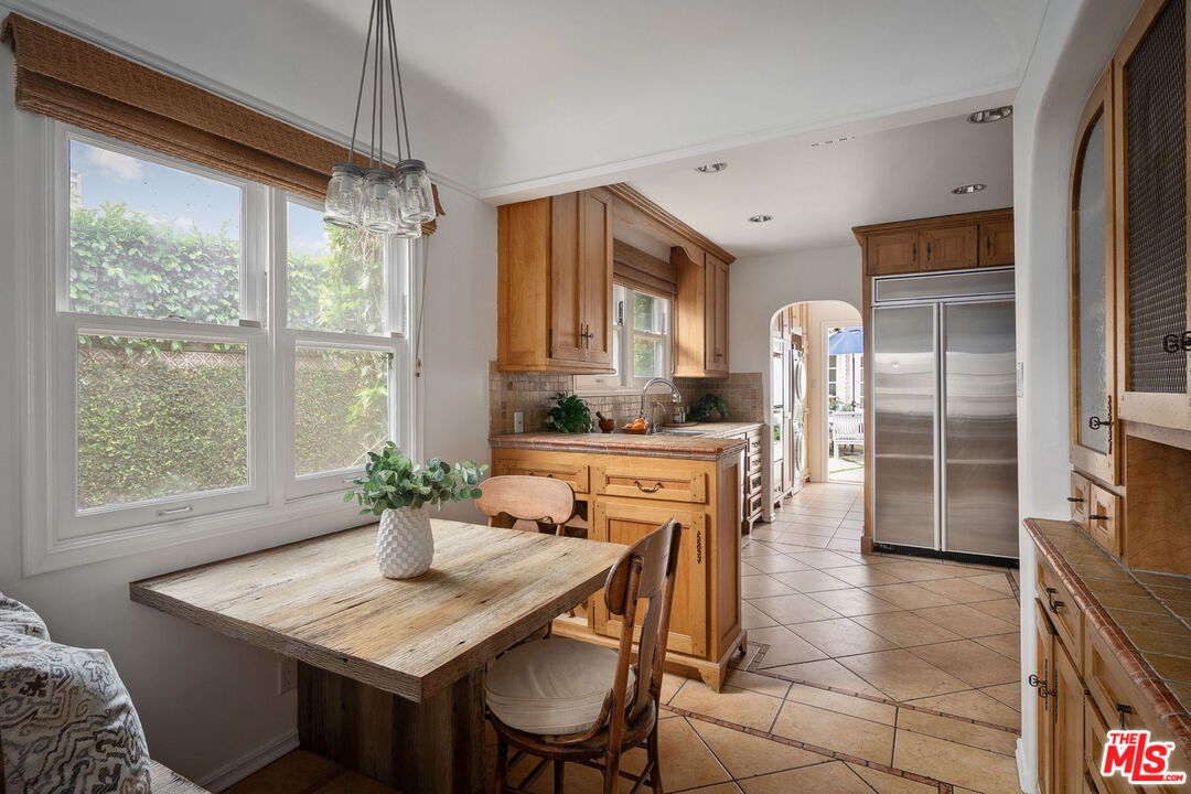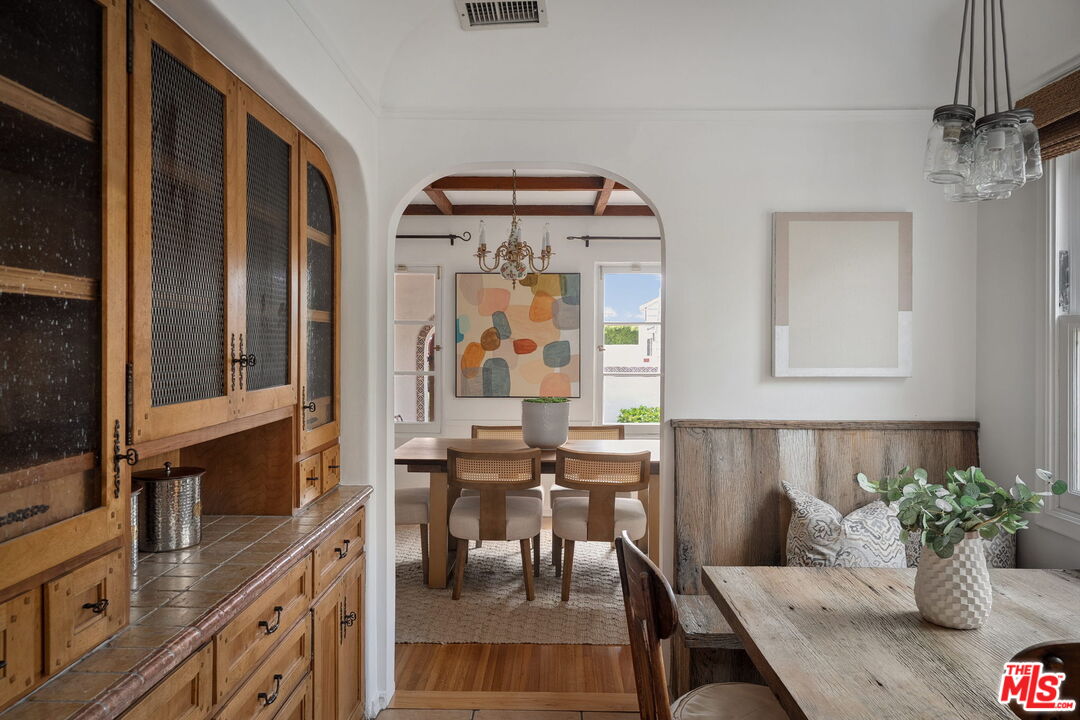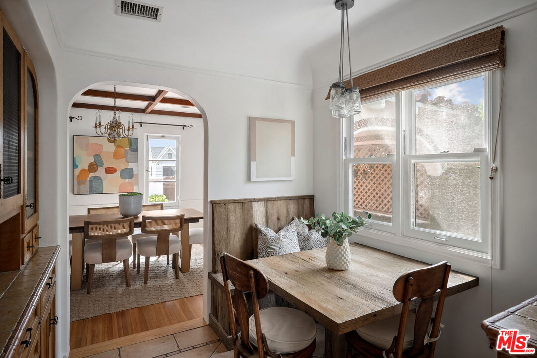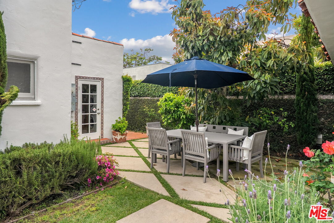 Offers due on Monday May 12th at 2:00PM. This stunning contemporary Spanish-style home masterfully blends timeless elegance with thoughtful modern updates. Tucked behind a private courtyard entry, the home welcomes you into a gracious formal living room with soaring vaulted ceilings, exposed wood beams, large paned windows, and a cozy fireplace that adds warmth and character. Just beyond, the formal dining room provides an ideal space for entertaining, while the gourmet kitchen features stainless steel appliances, authentic cabinetry, and abundant storage. A charming breakfast nook with built in banquet offers the perfect spot for casual meals or morning coffee. The home boasts three well-proportioned bedrooms, each offering comfort and style. The primary suite features an updated spa-like bath with sleek finishes, a spacious layout, and a double vanity for added convenience. The second bathroom has also been tastefully upgraded, serving the additional bedrooms. At the rear of the property, a versatile flex space with its own bath makes for an ideal guest suite, home office, game/family room or creative studio. Step outside to discover a lushly landscaped, private backyard oasis, complete with an incredible built-in outdoor BBQ area and fire-pit, perfect for dining and entertaining under the stars. Meticulously maintained and full of original charm, this exceptional home offers elegant design, updated amenities, and true indoor-outdoor living in a serene, secluded setting. Other features include: Hardwood floors through-out, central heat/air and ample storage. Prime Beverly Hills location close to shops, restaurants, excellent schools, and houses of worship. Don't miss the chance to make this exceptional home yours!Interested in this Listing?