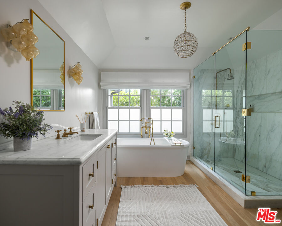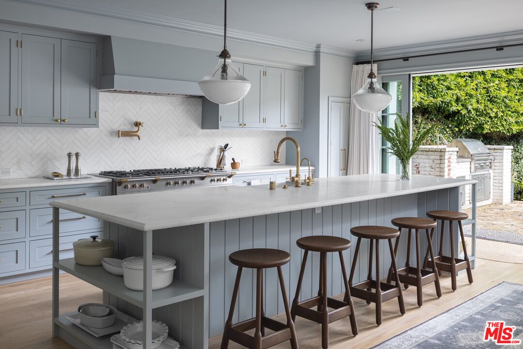 Gated and private beautiful East Coast Traditional Estate in prime 700 block of the flats. Recently and extensively remodeled with top tier finishes materials and design throughout. Formal living room with fireplace, library/office with bookcases, custom bar, family room opens to incredible outdoor terrace with fireplace. Chef's gourmet kitchen featuring top appliances, center island, custom cabinetry and polished stonework. Spacious primary suite opens to large terrace with fireplace, beautiful his and hers baths and closets. 3 additional en-suite bedrooms (2 open to terraces) plus optional 5th bedroom on the 1st floor. Staff wing with practical work spaces all connecting to a 3 car garage. Stunning new full guest house with living room, fireplace, kitchen, 1 bedroom and 2 baths. New large swimmers pool and landscaping. The lush gardens are surrounded by walls of tall hedges offering total privacy, lawns, spa/waterfall and firepit area. Great for entertaining flow. with outdoor dining area with grill. Unique double motor court allows for additional onsite parking along with walls and gates. One of a kind in this extremely desirable location.Interested in this Listing?