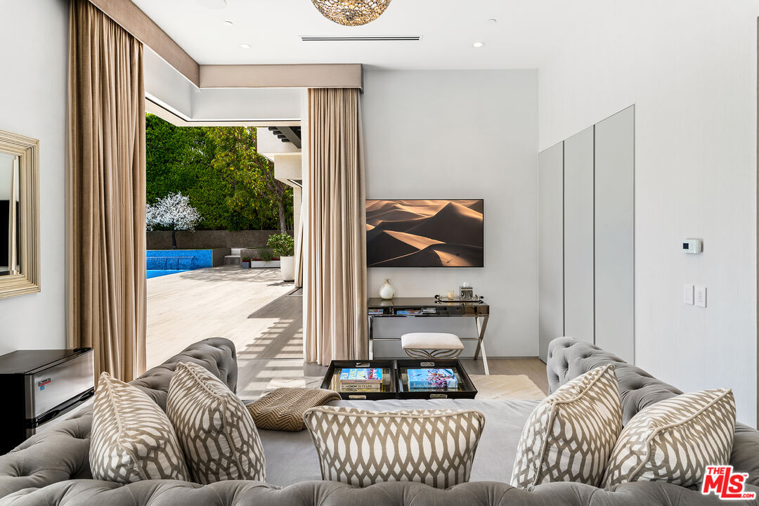 Take a one-minute trip from the iconic Beverly Hills Hotel and arrive at this private modern estate tucked behind gates and mature landscaping in the best location in Beverly Hills. Offering 12,664 SF of air-conditioned space and a total of 16,646 SF under roof on an expansive 28,747 SF lot, this extremely well-built, stylish, and masterfully designed compound features a flawless floor plan with 9 bedrooms and 13 bathrooms. Being sold by its only owner since completion, the estate offers the highest level of accommodation for the high-end future owner. Designed with high ceilings on all levels and beautiful walls for the sophisticated art collector, the feel of home and the sense of an exciting vacation blur the line. The main floor boasts a sizable kitchen with a giant island that includes seating, opening to a family room with a beautiful staircase. Just around the corner, a living room with a bar, an oversized elevator, a cozy spacious den and an office with a private meeting room that all spill out to the spectacular hotel-like covered patio and grounds, complete with a sparkling swimmer's pool, spa, waterfall, fire pit lounge, barbecue kitchen under a steel pergola and a basketball area. The second floor features a luxurious primary suite with dual baths and walk-in closets and an oversized covered deck overlooking the pool along with three additional second-floor suites. There are also two suites on the main floor (one with a private entrance) and three detached casitas (two connecting with a receding sliding door) to complete the total of nine bedroom suites on the compound. Super inviting and high ceiling basement level with an expansive and fabulously appointed theater with receding blackout wall opening to a large game room, bar and temperature-controlled wine room. Subterranean garage for 8-plus cars with easy access for sports cars along with a dual-gated drive-thru motor court wrapping the property in endless parking onsite, perfect for entertaining flow. Indooroutdoor California living at its finest with complete serenity yet immediate access to the world's finest shops, restaurants, hotels, and spas.Interested in this Listing?