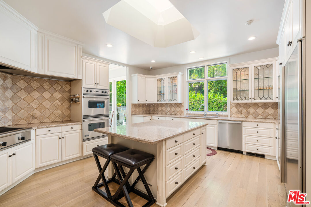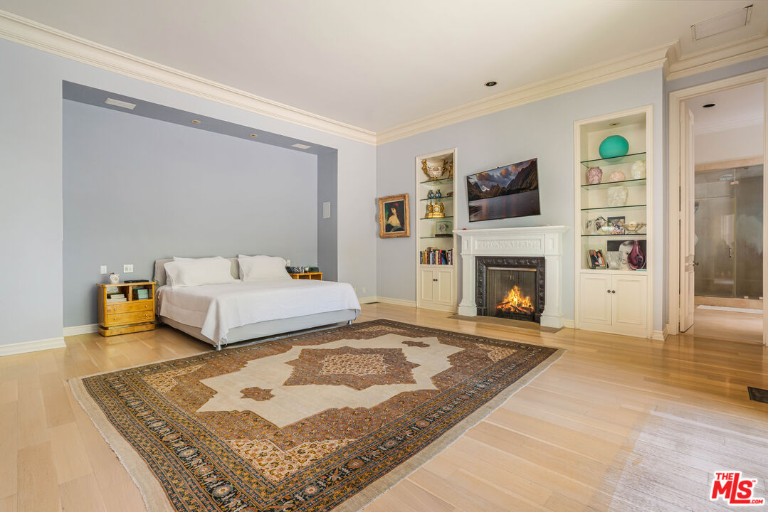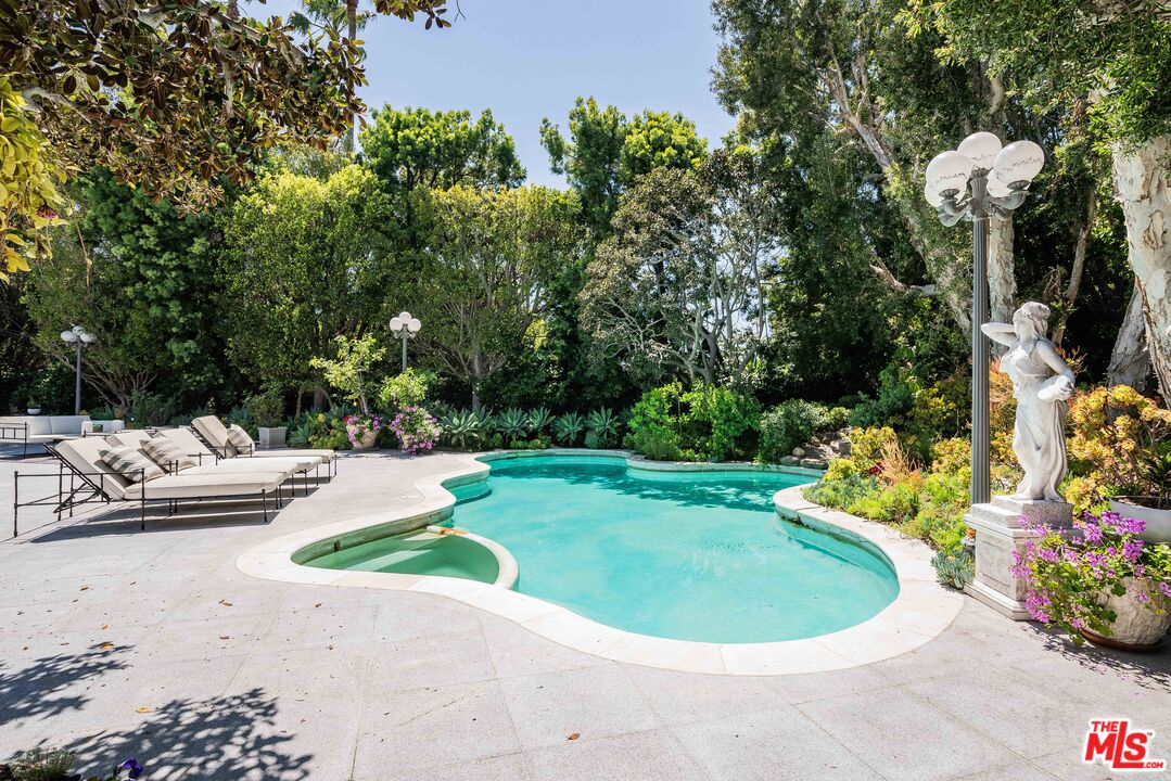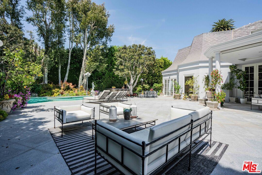 Introducing 915 Hartford Way, a timeless French Regency estate nestled behind private gates in prime Beverly Hills, just moments from the iconic Beverly Hills Hotel. This architectural gem blends elegance, sophistication, and serenity across beautifully landscaped grounds. Step through grand double doors into a dramatic two-story foyer. The formal living room showcases a stately fireplace and walls of glass framing lush surroundings. An open floor plan connects refined living spaces, including a formal dining room with soaring ceilings and tranquil views, and a charming breakfast room with direct outdoor access. The gourmet kitchen is a chef's dream, featuring a central island, top-tier appliances, and seamless design. A cozy family room/den boasts rich wood floors, custom built-ins, a fireplace, and an adjoining office. The luxurious primary suite offers a peaceful retreat with fireplace, dual walk-in closets, and a spa-like bath with soaking tub and walk-in shower. Two additional guest suites on the main level feature custom finishes and garden views. Upstairs, find a spacious guest room with its own bath and an expansive bonus room ideal for entertainment or play. Outdoors, enjoy a resort-style oasis with lush gardens, a covered terrace, pool, fire pit, bar, and multiple dining areas and lounge spaces. Additional amenities include maid's quarters, a wine cellar, and a 3-car garage. A rare offering of privacy, luxury, and proximity to world-class shopping, dining, and entertainment. Shown to prequalified buyers only.Interested in this Listing?