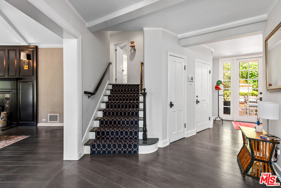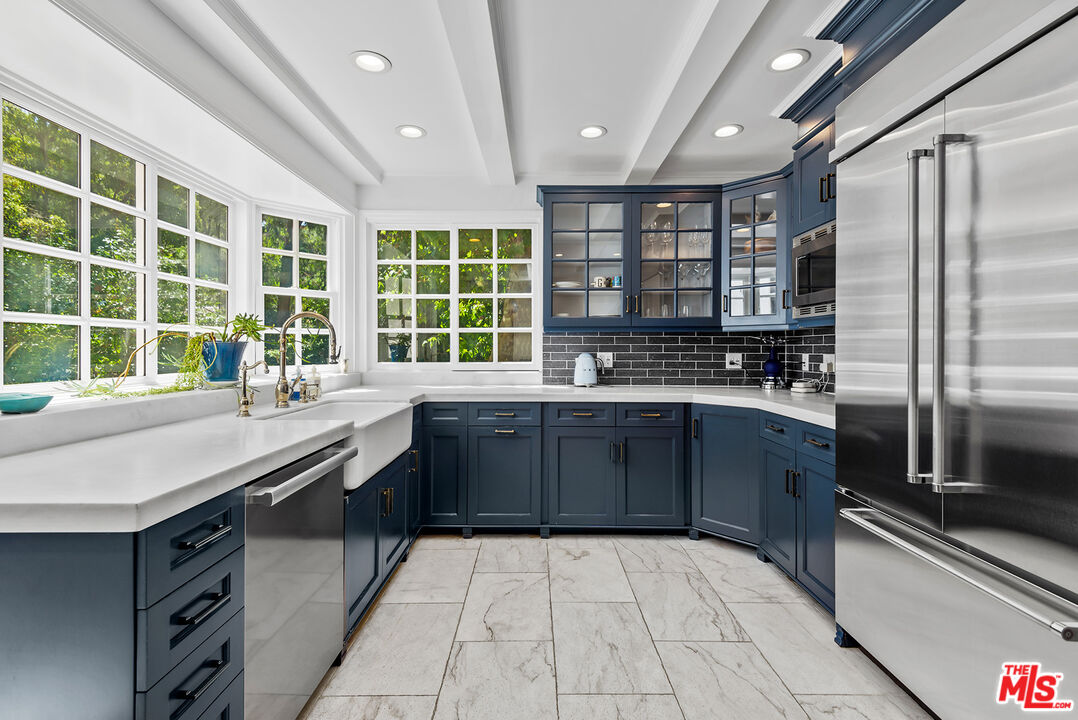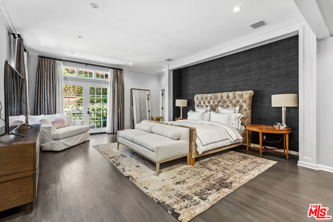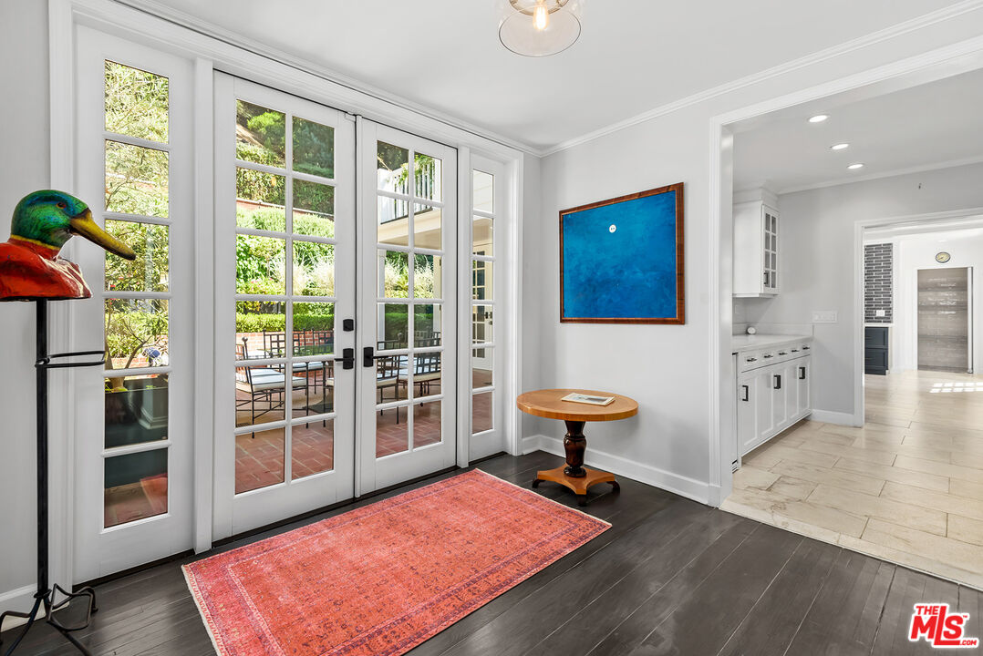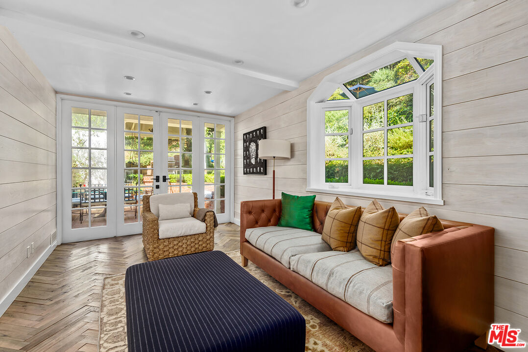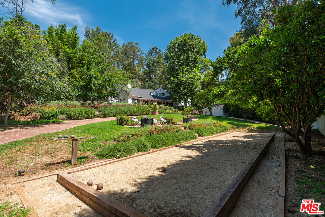 This luxurious Beverly Hills retreat, once owned by Hollywood legends Paul Newman and Joanne Woodward, is a rare and classic find. Situated on 1.2 acres of secluded land, this gated Colonial Revival property on highly sought-after Hazen Drive is surrounded by lush greenery, citrus trees, a bocce court, and a sparkling pool. As you enter through the gates, you are greeted by a grand brick driveway and a charming European garden. A rooftop cabana provides shade for a state-of-the-art gym with breathtaking views of the pool and nearby hiking trail. The estate boasts 4 luxurious ensuite bedrooms that exude both elegance and comfort. The kitchen has been expanded and features a walk-in pantry with dedicated wine storage. A cozy den with oak herringbone floors offers a perfect spot to relax. The living room showcases a striking black marble fireplace adding to the classic design of the home.Interested in this Listing?