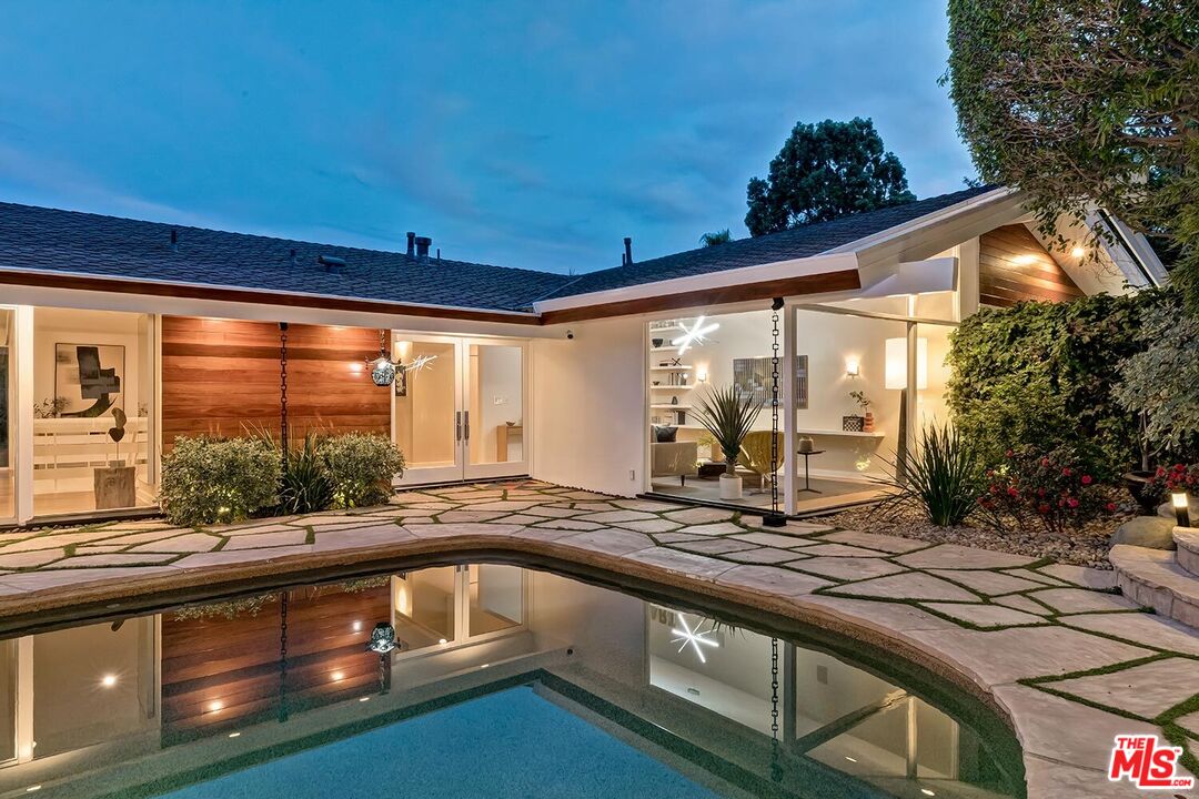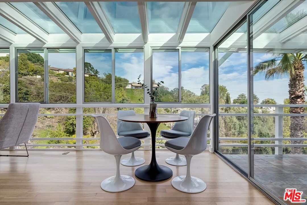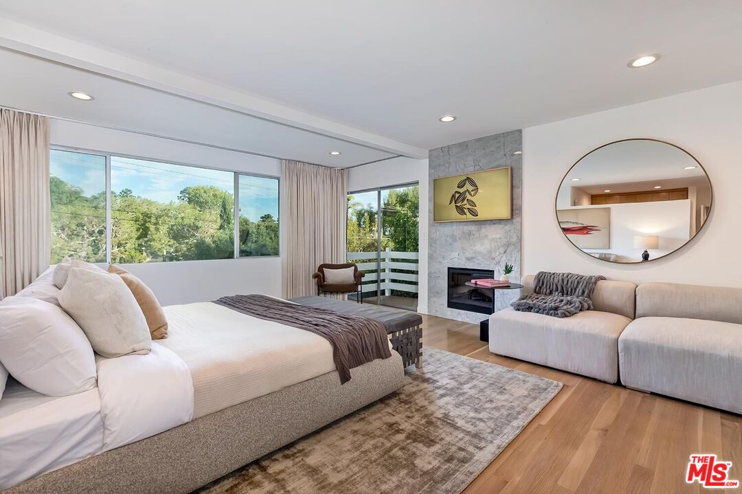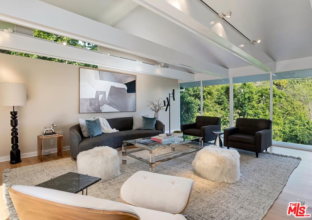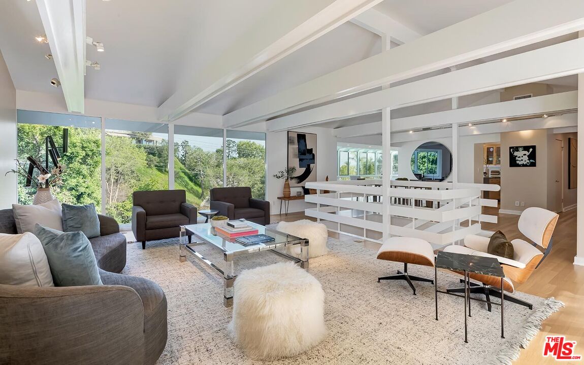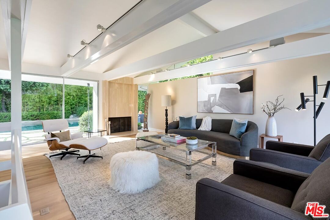 Stunning Mid-Century Post & Beam. Fully updated and expanded, this swanky light-filled home exudes charm and sophistication. Enter into a private gated paradise, with Japanese-modern influenced landscaping and romantic pool. Living room features vaulted ceiling, wood-burning marble fireplace and walls of glass that overlook expansive hillside and city-top views. Spacious dining area, fully-equipped chef's kitchen, and breathtaking solarium with a casual dining area create the quintessential California indoor/outdoor experience. Main level also includes media room, powder room and an ensuite bedroom. The home's second level features gallery art walls and a private primary suite with dual baths, dual closets, dressing area, modern fireplace and outdoor balcony. The second level has two additional bedrooms (one currently used as a library), along with a built-in office area and laundry room. Yet another yard offers a second area to entertain outdoors, along with a grove of citrus trees. There is a 2-car garage with direct entry and 2 additional off-street parking spaces. Gleaming hardwood floors and views throughout this smart house. Located in the prestigious Crest Streets right across from Trousdale Estates. Beautiful living just north of Sunset Boulevard!Interested in this Listing?