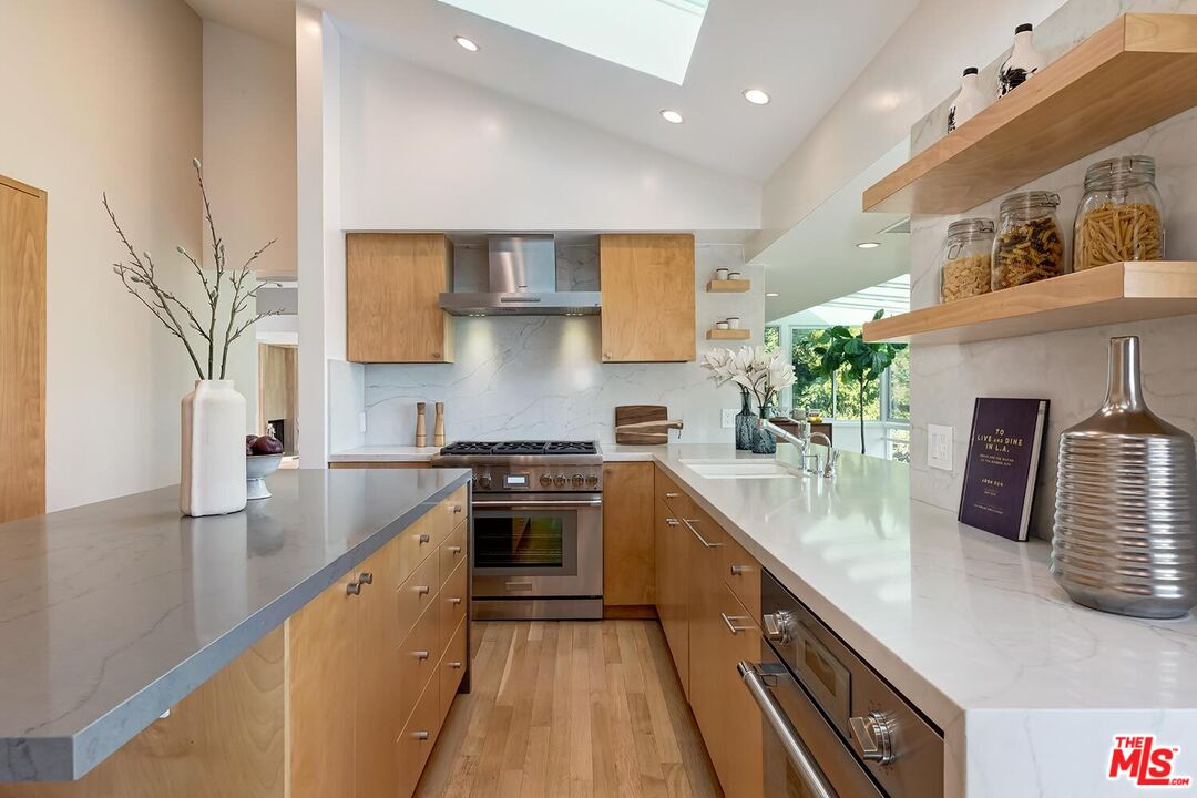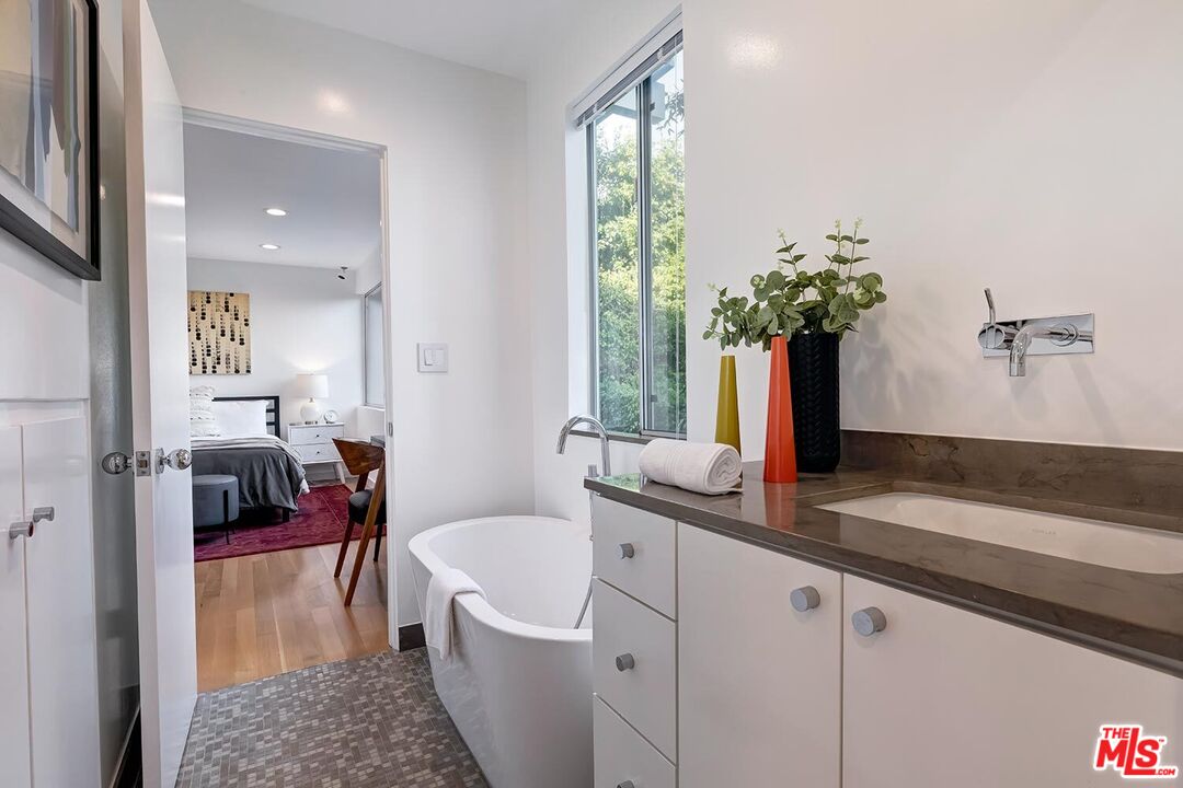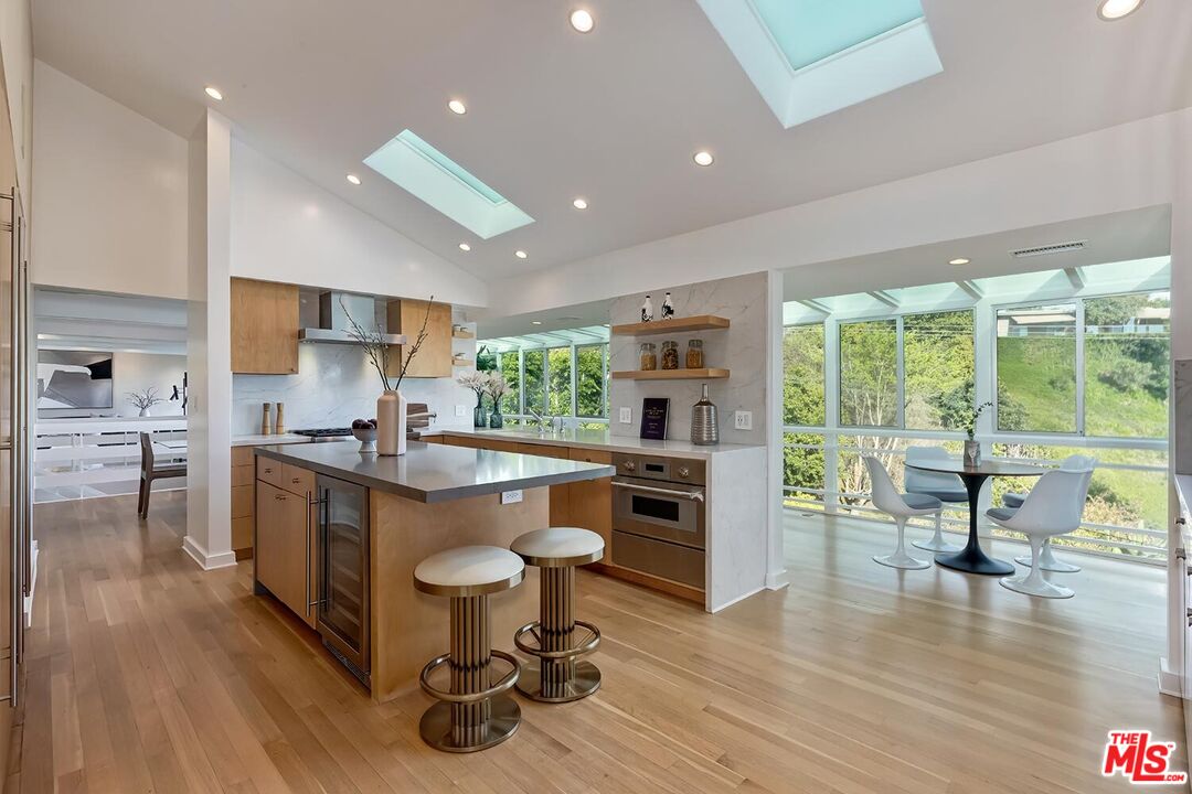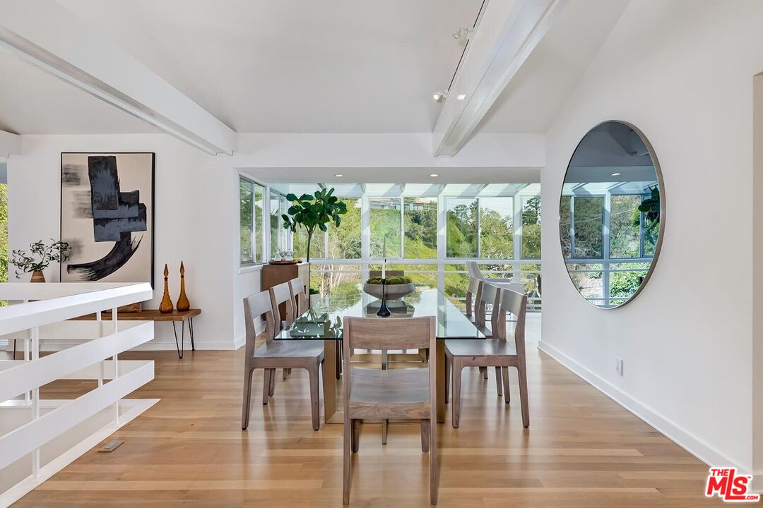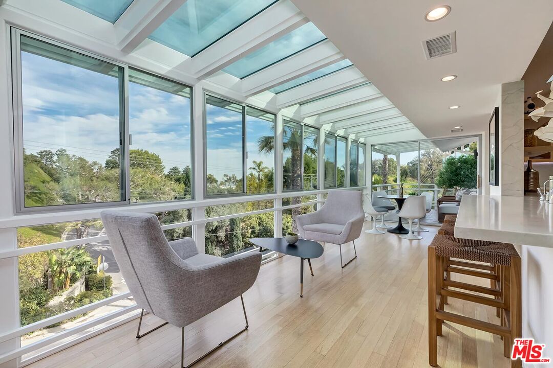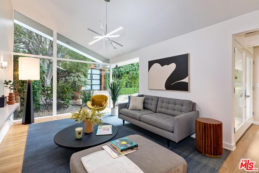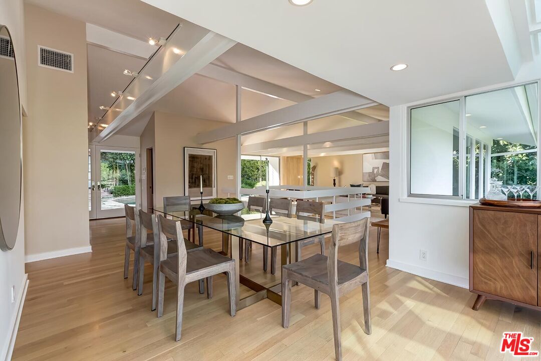 Stunning Mid-Century Post & Beam. Fully updated and expanded, this swanky light-filled home exudes charm and sophistication. Enter into a private gated paradise, with Japanese-modern influenced landscaping and romantic pool. Living room features vaulted ceiling, wood-burning marble fireplace and walls of glass that overlook expansive hillside and city-top views. Spacious dining area, fully-equipped chef's kitchen, and breathtaking solarium with a casual dining area create the quintessential California indoor/outdoor experience. Main level also includes media room, powder room and an ensuite bedroom. The home's second level features gallery art walls and a private primary suite with dual baths, dual closets, dressing area, modern fireplace and outdoor balcony. The second level has two additional bedrooms (one currently used as a library), along with a built-in office area and laundry room. Yet another yard offers a second area to entertain outdoors, along with a grove of citrus trees. There is a 2-car garage with direct entry and 2 additional off-street parking spaces. Gleaming hardwood floors and views throughout this smart house. Located in the prestigious Crest Streets right across from Trousdale Estates. Beautiful living just north of Sunset Boulevard!Interested in this Listing?