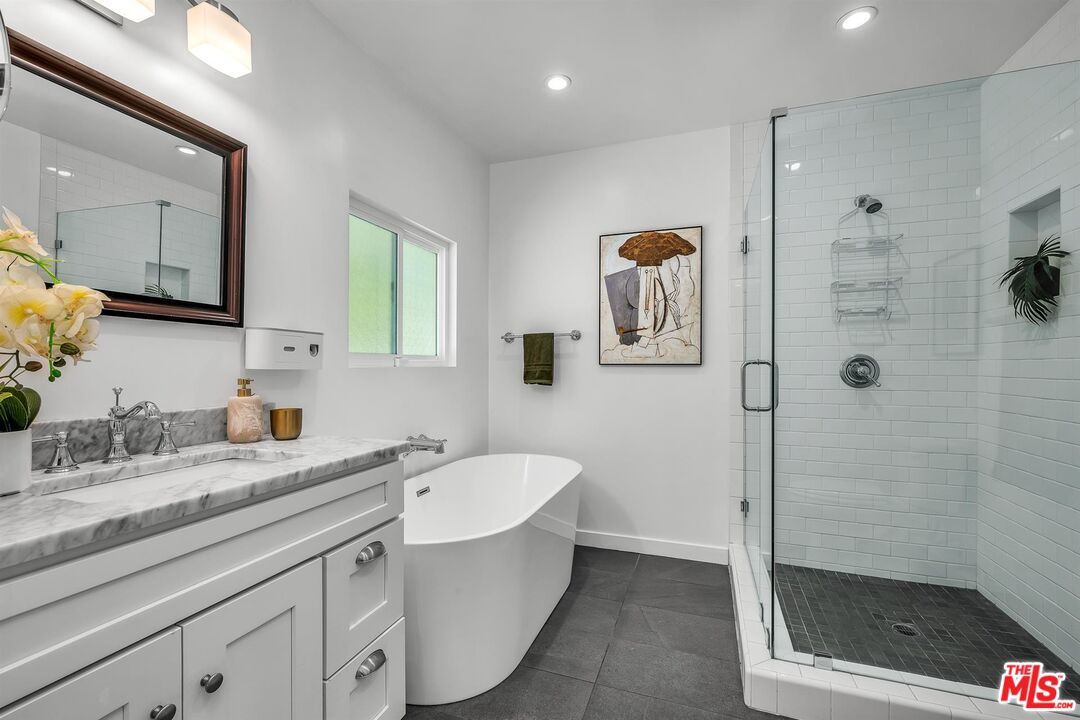 This mid-century compound sits on just under half an acre on a private road at the end of a quiet cul-de-sac. The property consists of a 4-bedroom, 3.5 bathroom house plus office with a private entrance, as well as a separate 900 square-feet guest house with living room, bedroom, 1.5 bathrooms, kitchen and music studio. Both structures have hardwood floors. Originally constructed in 1956, the house was upgraded in 2020, maintaining its open floor plan, including kitchen, bathrooms, plumbing, electrical, windows, doors and HVAC. Situated behind gates, this wonderfully secluded property boasts a pool, vast gardens and a large covered patio.Interested in this Listing?