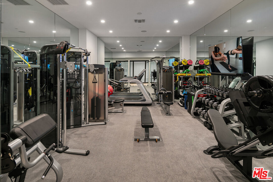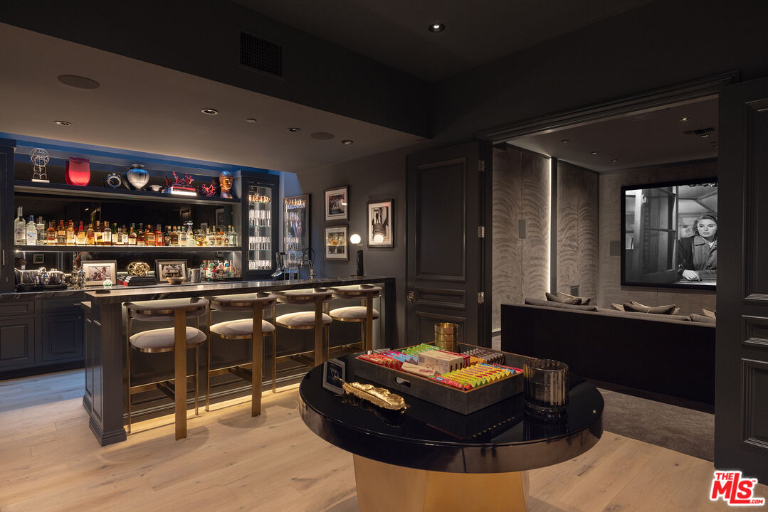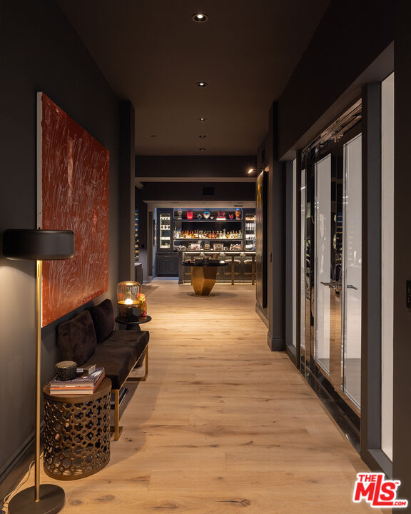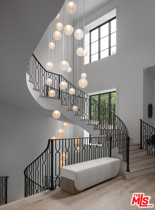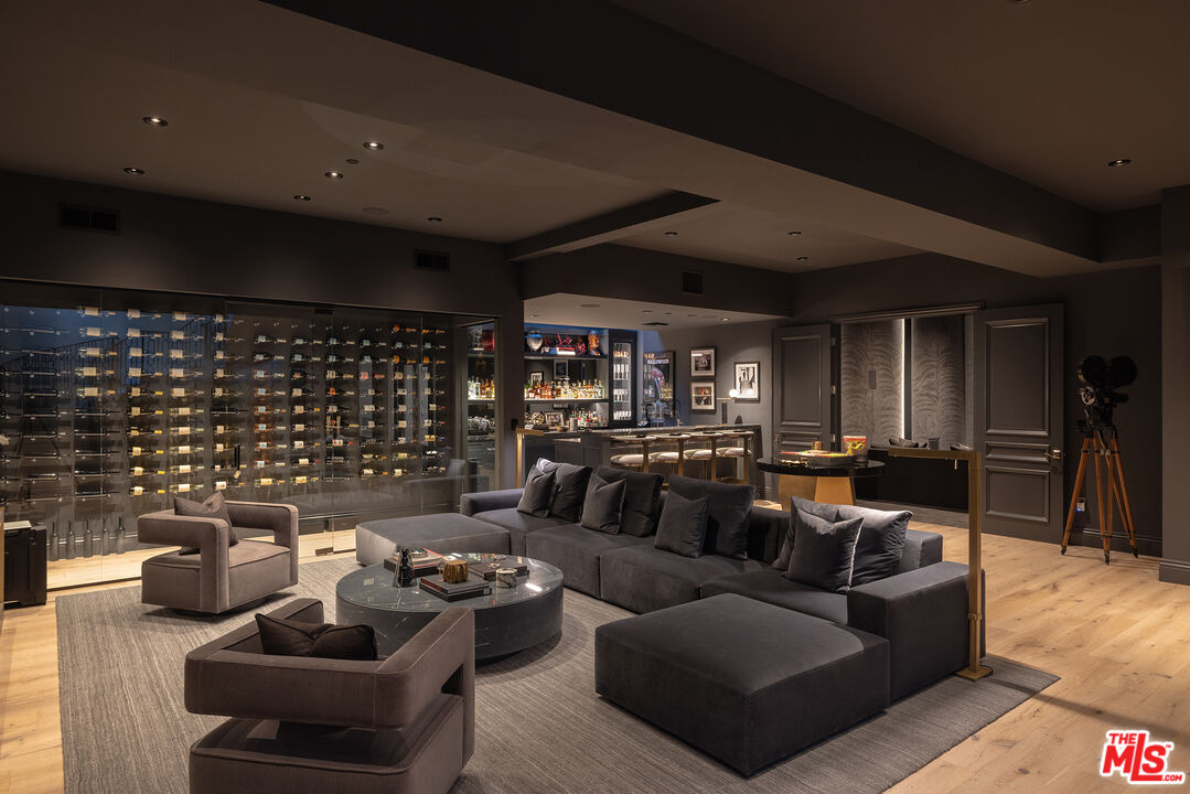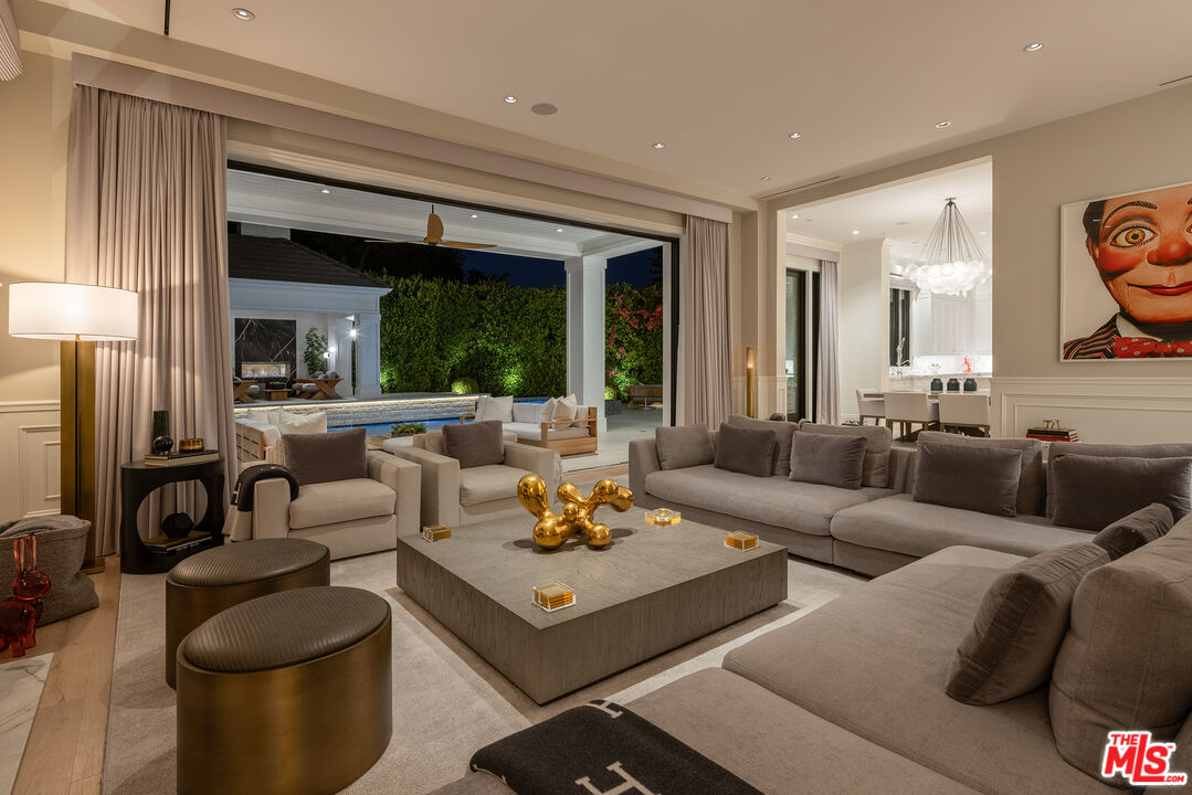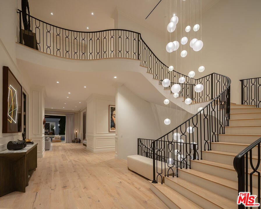 Positioned within the coveted Hidden Valley enclave of Beverly Hills, this impeccable estate offers privacy and tranquility behind secure gates, with 24/7 guard protection and lush, mature landscaping. Situated in one of the area's most prestigious guard-gated communities, this residence showcases timeless design, grand proportions, and a thoughtfully updated aesthetic that harmonizes with its natural surroundings. Every element of this home has been masterfully conceived to deliver an unparalleled living experience. A dramatic 24-foot ceiling in the entry foyer sets the tone, featuring custom-crafted millwork and elegant wrought-iron accents that echo throughout the interiors. Spanning approximately 12,000 square feet, the residence is graced with wide-plank white oak floors, 12-foot-high ceilings, and expansive windows that frame serene canyon vistas. The main level unfolds with a series of distinguished spaces, including a formal living room, office, formal dining room, and multiple powder rooms. A spacious family room seamlessly connects to the outdoor entertaining areas, where a sprawling backyard oasis includes a pool, spa, outdoor kitchen, bar, dining pavilion, and fire pit lounge. The chef's kitchen is a masterpiece of both design and functionality, outfitted with honed Calacatta marble countertops, a La Cornue 1908 range and oven, Wolf microwave, Sub-Zero refrigerator and freezer, dual Miele dishwashers, a wine fridge, and an oversized eat-in island, all framed by crisp white cabinetry. Two ensuite bedrooms and a two-car garage complete the main floor. Effortless access to the estate's three levels is provided by a private elevator. Upstairs, the opulent primary suite offers a serene retreat with a fireplace, a balcony with picturesque views, dual marble bathrooms featuring soaking tubs, and a pair of custom dressing rooms with abundant built-in storage. Four additional ensuite bedrooms, each with spacious dressing closets, complete this floor. The lower level features a host of amenities for relaxation and entertainment. With 11-foot ceilings, this space includes a cozy home theater, a wet bar, lounge, gaming area, temperature-controlled wine room, fully equipped fitness studio, and laundry facilities. Additionally, the subterranean auto gallery spanning approximately 2,000 square feet boasts a revolving car turntable and accommodates up to six vehicles, offering limitless opportunities for customization. Fully automated through Savant and Lutron systems, the home's technology provides seamless control over lighting, drapery, audio, televisions, fireplaces, and entry systems, ensuring modern convenience at every turn. Perfectly positioned within top-tier school districts and offering convenient access to Beverly Hills, the Westside, and the Valley's finest shopping, dining, and nightlife, this estate is a rare offering that combines sophistication, comfort, and cutting-edge amenities.Interested in this Listing?