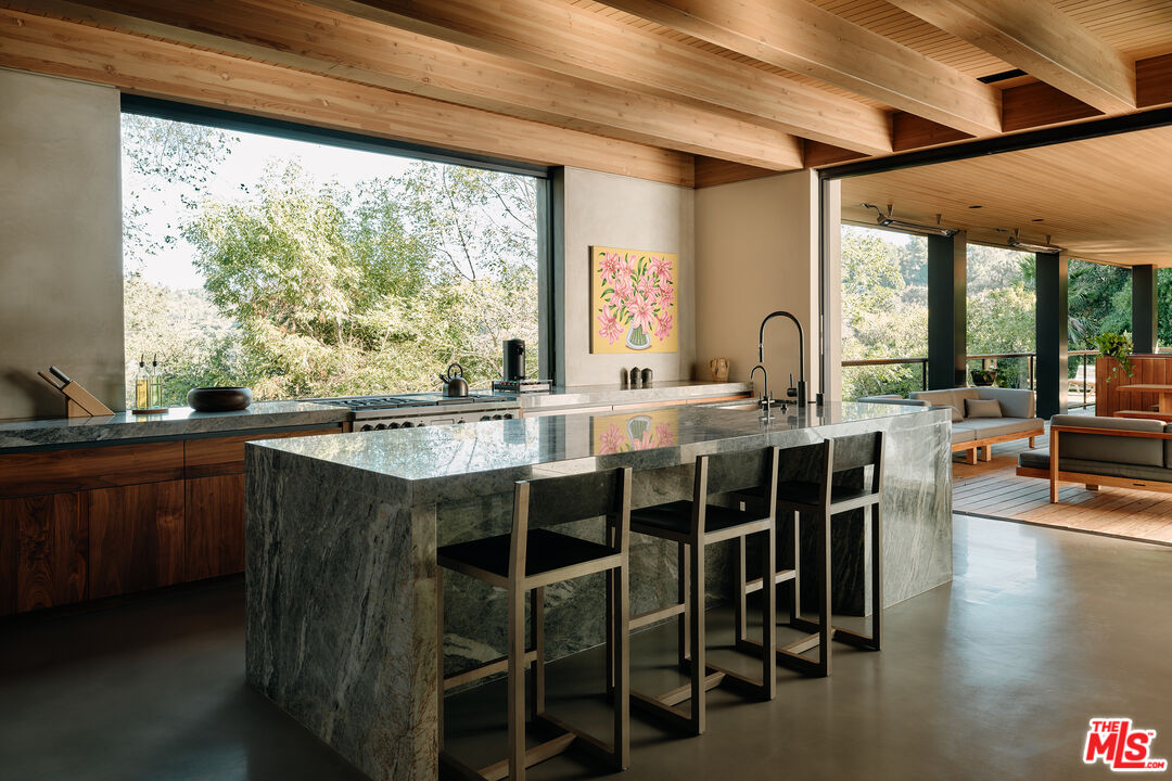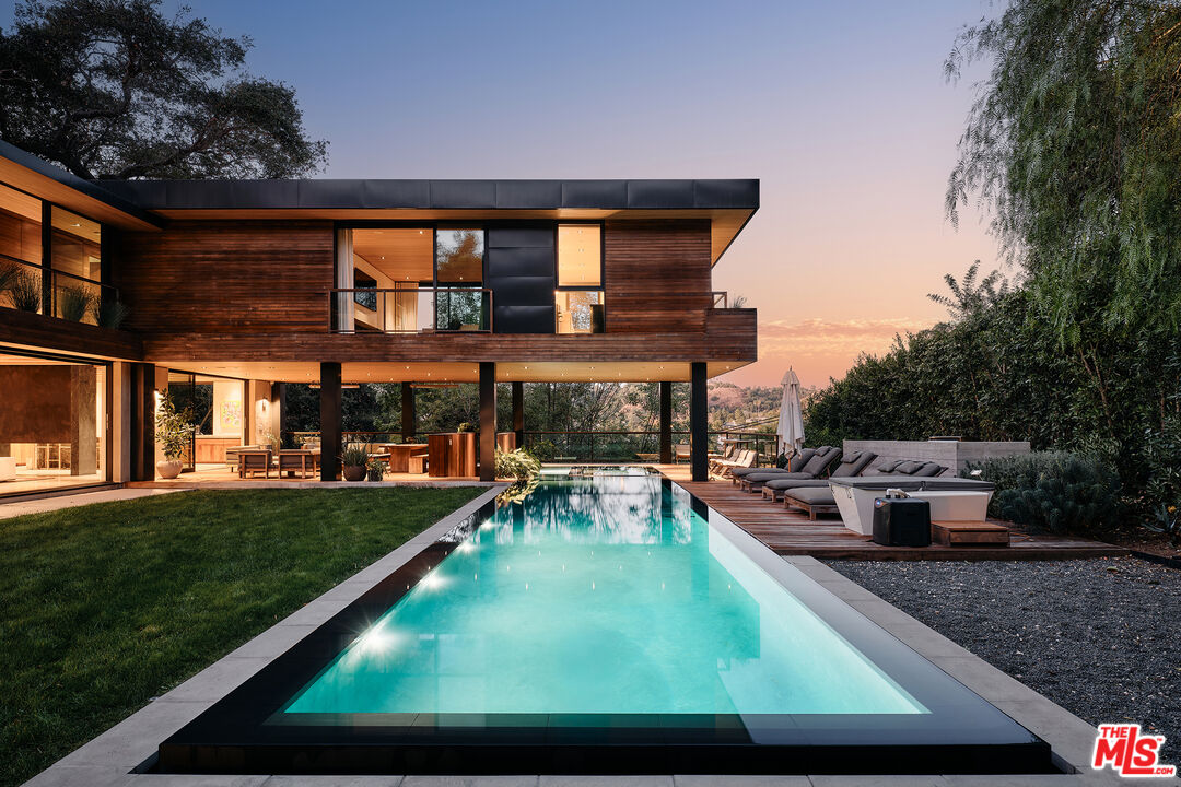 Nestled within the prestigious gated enclave of Oak Pass Road in Beverly Hills, this 5,442-square-foot modern sanctuary embodies a rare synergy of architecture and nature. Positioned on a peaceful .32-acre lot, this 3-bedroom, 5-bathroom retreat offers a secluded haven with panoramic canyon and hillside vistas. Thoughtfully crafted with wood, stone, glass, and fire elements, each room welcomes the outdoors through expansive floor-to-ceiling glass, creating a zen-inspired atmosphere for ultimate relaxation.The home's L-shaped design and sculpted landscape enhance privacy, embracing the surrounding natural beauty. A dramatic two-story atrium fills the space with light and greenery, complemented by floating fire features and suspended gardens that deepen the sense of calm. Flowing seamlessly from the formal dining room, the open living area connects to an expansive kitchen with dual sided fireplace, that opens to the outdoor covered lounge area for effortless entertaining. The primary suite appears to float above a saltwater infinity pool, offering breathtaking views, while two guest suites rest under the canopy of a majestic 100-year-old oak tree.Terraces along the property reveal sweeping views of the private backyard and surrounding mountains, with an inviting spa and lounge area designed for alfresco dining and gatherings. A dedicated gym and wellness area, private studio/office, theater room, and an outdoor kitchen with a fire pit complete this residence, a true celebration of refined, tranquil living in an extraordinary setting.Oak Pass Road is an exclusive gated neighborhood in Beverly Hills Post Office situated west of North Beverly Park, with only 42 private residences offering unparalleled access to the shopping, dining and nightlife of Rodeo Drive and the iconic Beverly Hills Hotel. Simo Designs.Interested in this Listing?
