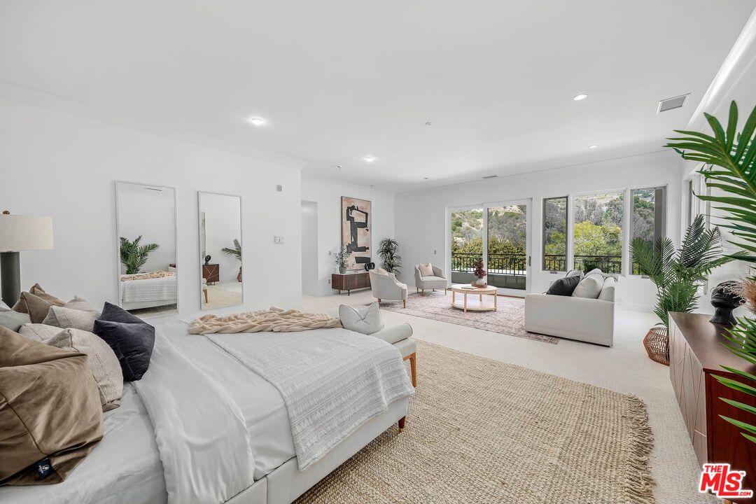 Welcome to this prime cul-de-sac location in lower BHPO! Surrounded by mature, lush greenery beneath towering palms, this gated home offers a feeling of peace, security, and seclusion with an expansive motor court leading to a double-door entry. Inside, gleaming marble floors flow from the living room, with its stone fireplace and banks of windows, and into the formal dining room. The kitchen opens to an eat-in breakfast nook plus sitting area and is appointed with a large center island, Viking appliances, and ample cabinetry. The primary wing is expansive, with French doors that open to a balcony for enjoying sweeping views of the canyons, treetops, and hills. The en-suite bath is spa-inspired with striking vistas, floating dual-sink vanity, jetted tub, and glass-enclosed shower. A walk-in closet has built-ins to maximize storage and organization. A secondary bedroom opens to a large terrace, and other bedrooms and bathrooms are light-filled. In the backyard, a trellis-covered pathway leads through lush gardens to a large entertainer's deck, perfect for hosting intimate gatherings and al-fresco dinner parties under California skies. Refresh and refurbish to create a dream-home sanctuary or move in today. Also available for lease.Interested in this Listing?