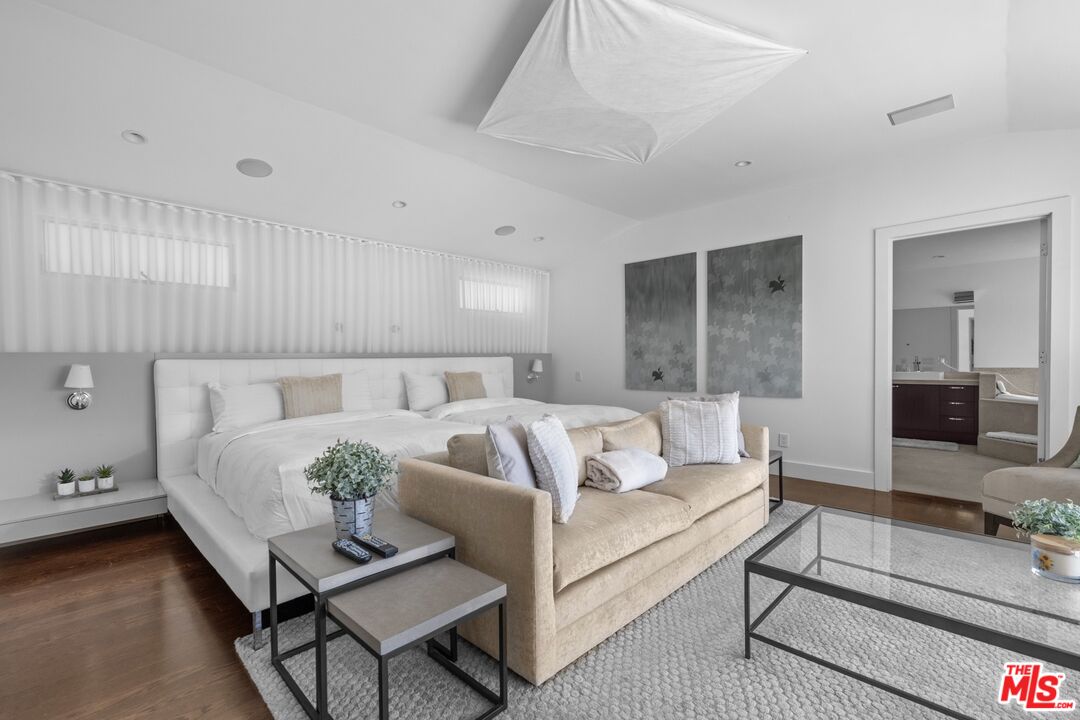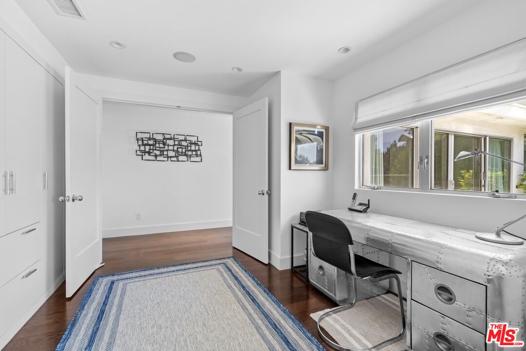 This elegant, single-level contemporary home, located minutes from Rodeo Drive, is gated and set back from the street, offering both privacy and security. The open floor plan effortlessly merges the living, dining, and family areas, creating a perfect space for both entertainment and quiet relaxation. A separate office area adds functionality to the layout. Walls of glass open to a serene outdoor oasis, featuring a sparkling pool, spa, and picturesque views, seamlessly blending indoor and outdoor living. The chef's kitchen is equipped with state-of-the-art stainless-steel appliances and features a large center island, creating an ideal space for cooking and gathering. The primary suite offers a private retreat with its own office area, and a spacious spa-style bathroom complete with double sinks, a vanity, and a steam shower. The lower level features a gym and a three-car garage, while the gated driveway offers ample additional parking.Interested in this Listing?