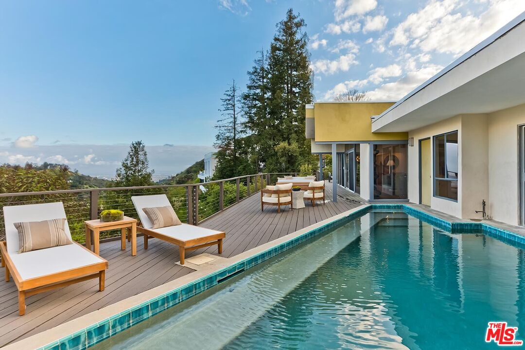Sleek 1962 Mid-Century with walls of glass, pool, and canyon & Century City views. Fantastic open floor plan consisting of large living room with fireplace, dining area and den. Kitchen with eat-in area. All public rooms overlooking the sensational views. Primary suite opens onto the pool. There are 2 secondary bedrooms with bath and 4th en-suite housekeeper's room or office. An amazing opportunity to remodel this sexy Modern home! Located on a quiet cul-de-sac surrounded by multi-million dollar homes. Beautiful living in the city.Interested in this Listing?