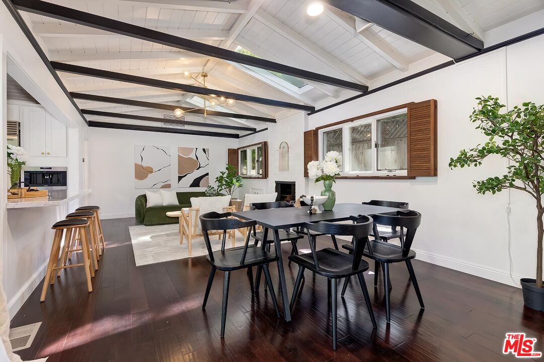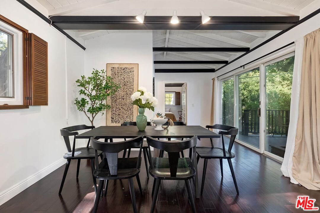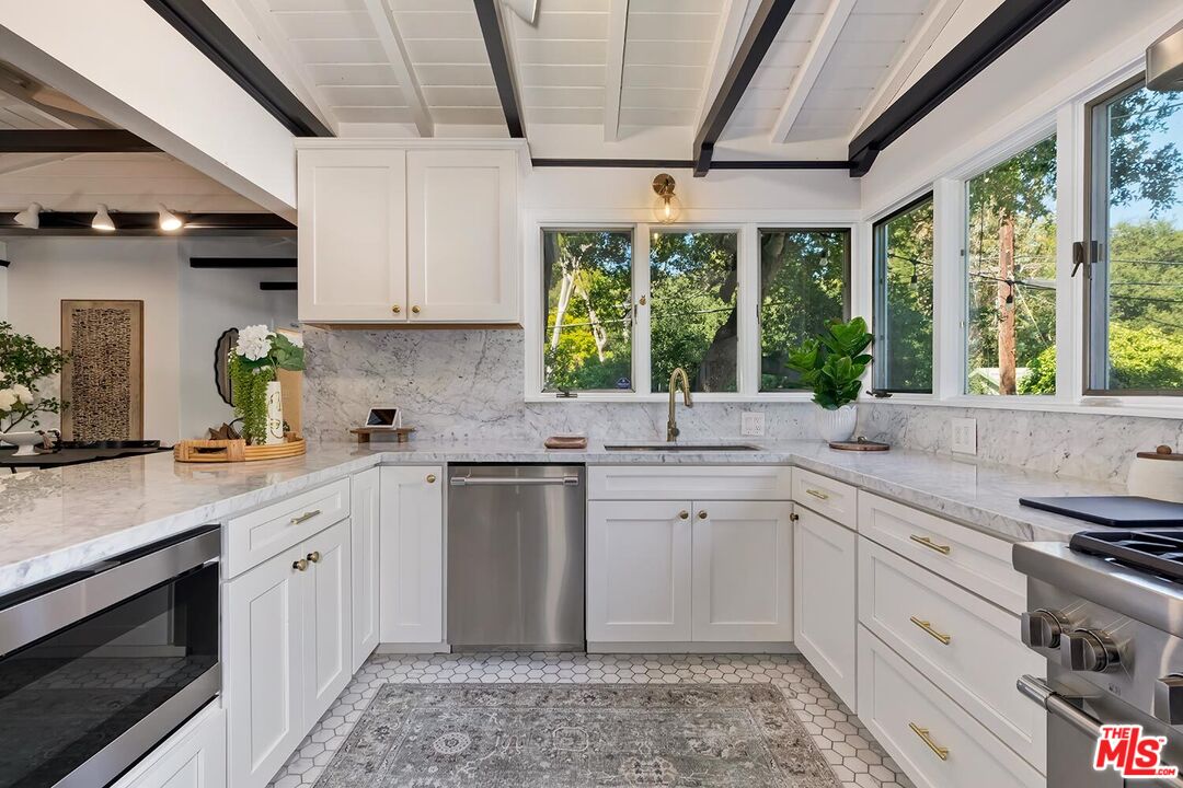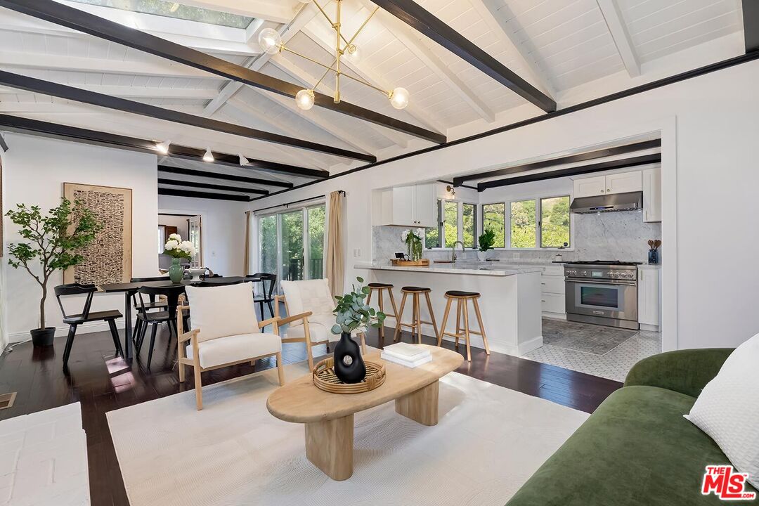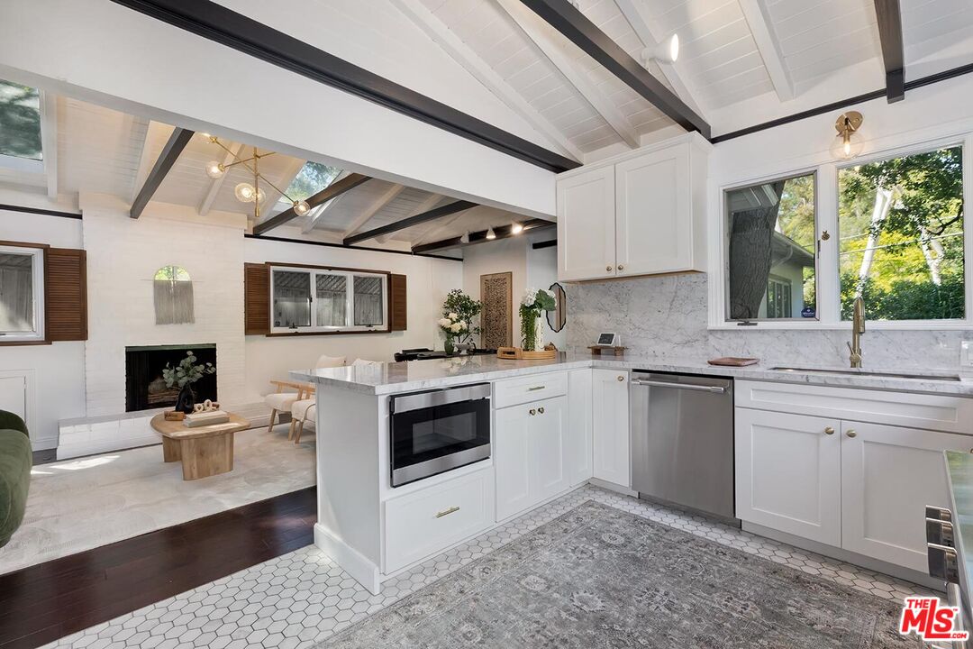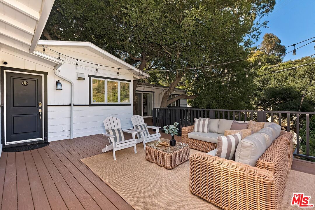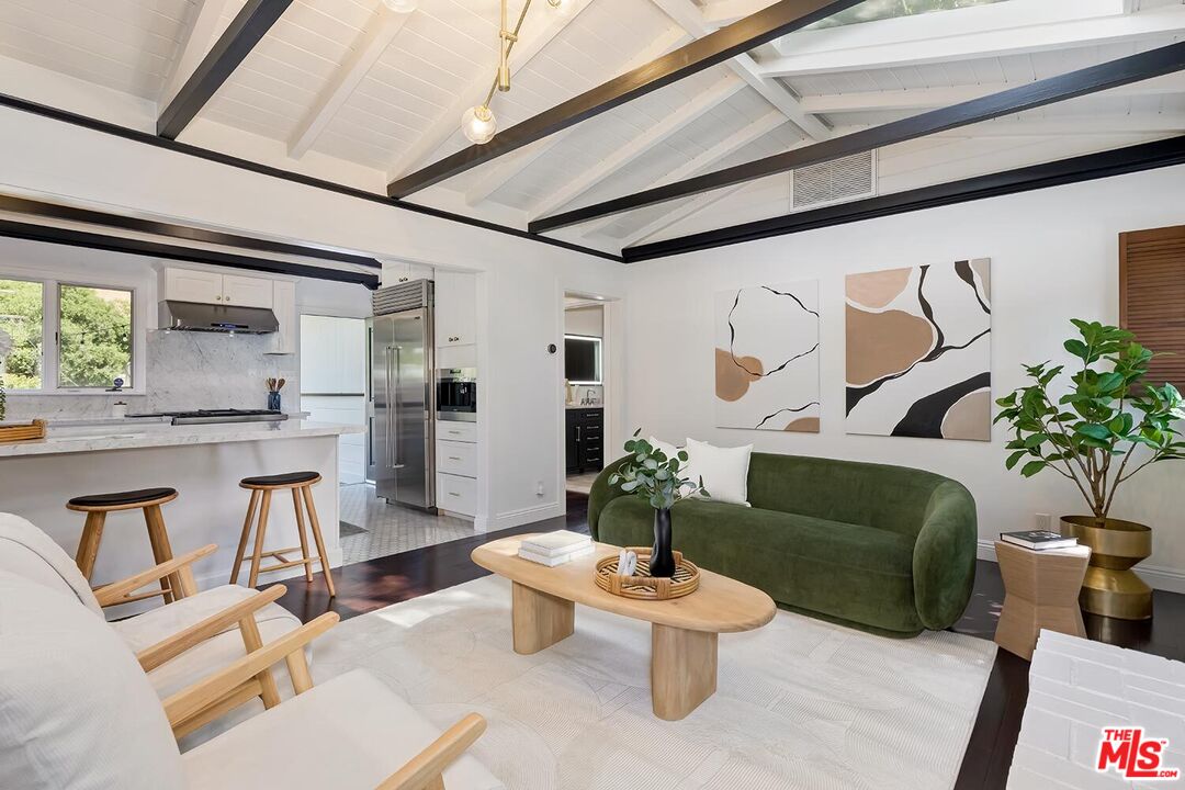 Stunning Completely remodeled updated home, located in BHPO on a quiet street off Benedict Canyon with two bedrooms and two bathrooms. This meticulously updated home features top-of-the-line appliances, vaulted high beamed white ceilings, a fireplace, an open floor plan, and skylights that allow for tree top views. The kitchen features brand-new stainless-steel appliances, a large gas range and hood, abundant natural light highlighting the gold accents, and light marble countertops. The expansive wrap-around deck off the living space allows for ample private dining or entertaining overlooking the canyon views. The primary suite also features white high beam ceilings, dark wood floors, an abundance of natural light and an ensuite primary bath including a double. There is one covered garage parking spot and plenty of street parking. BEST DEAL IN 90210!Interested in this Listing?