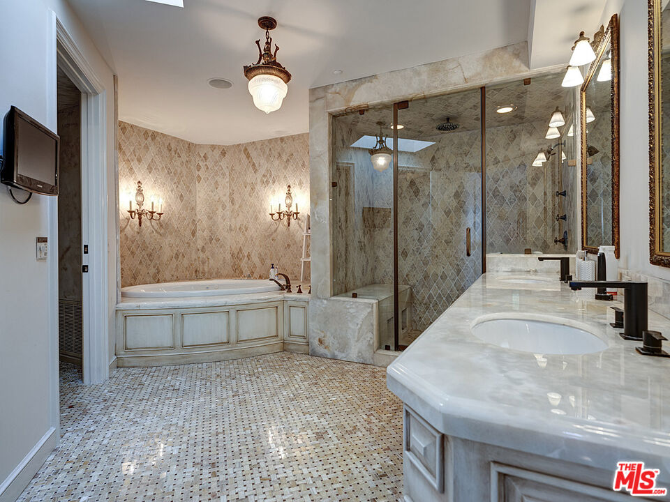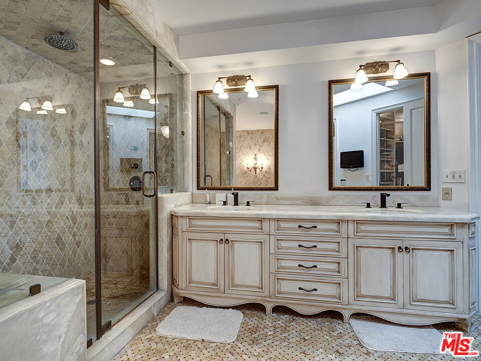 Introducing an exquisite single level, French country-style penthouse, exuding designer elegance, nestled in the heart of Beverly Hills. This meticulously crafted single family home-alternative boasts 3 bedrooms, 4 bathrooms, and spans a generous apx 3,334 square feet, all conveniently situated on one level. Step into luxury as you enter the impeccably designed living space, adorned with soaring ceilings, walnut plank wood floors, and a stunning limestone fireplace. Three luxurious balconies (plus an exclusive rooftop deck), accessed through French doors, flood the interiors with natural light, creating an inviting ambiance throughout. The chef's kitchen is a culinary masterpiece, featuring exquisite marble countertops and a convenient breakfast bar. Two en-suite bedrooms flank a hallway leading to the palatial primary suite, offering a serene retreat. Indulge in the spa-like primary bathroom, adorned with lux white onyx counters, a rejuvenating steam shower, and a spacious walk-in closet. Ascend the spiral staircase, passing by a two-story library, to discover the crown jewel of this residence a private rooftop patio boasting panoramic views of Beverly Hills and the Hollywood Hills, perfect for entertaining or relaxing under the stars. Additional features include five side-by-side private parking spaces with guest parking, an emergency exit from the unit, a storage unit in the garage, a comprehensive sound system throughout, and a private elevator for seamless access. Located mere minutes from the renowned attractions of Rodeo Drive, Westfield Century City Mall, and Roxbury Park, this prestigious address offers unparalleled convenience. Plus, it falls within the highly coveted Beverly Hills School District, making it the epitome of luxury living in Los Angeles.Interested in this Listing?