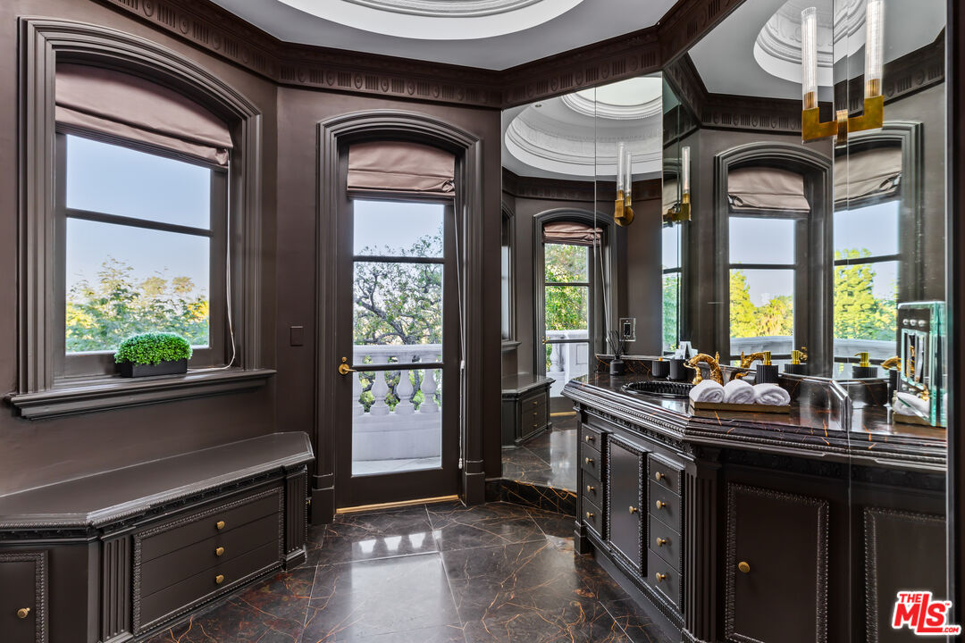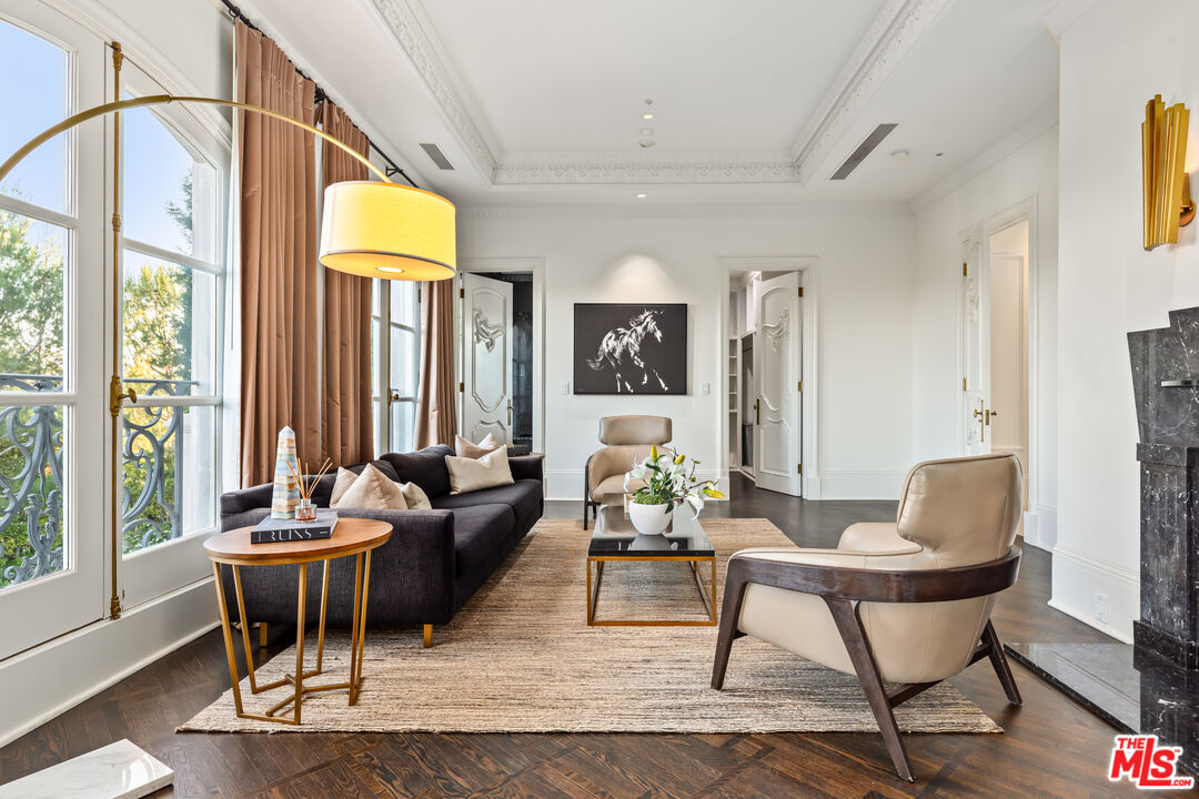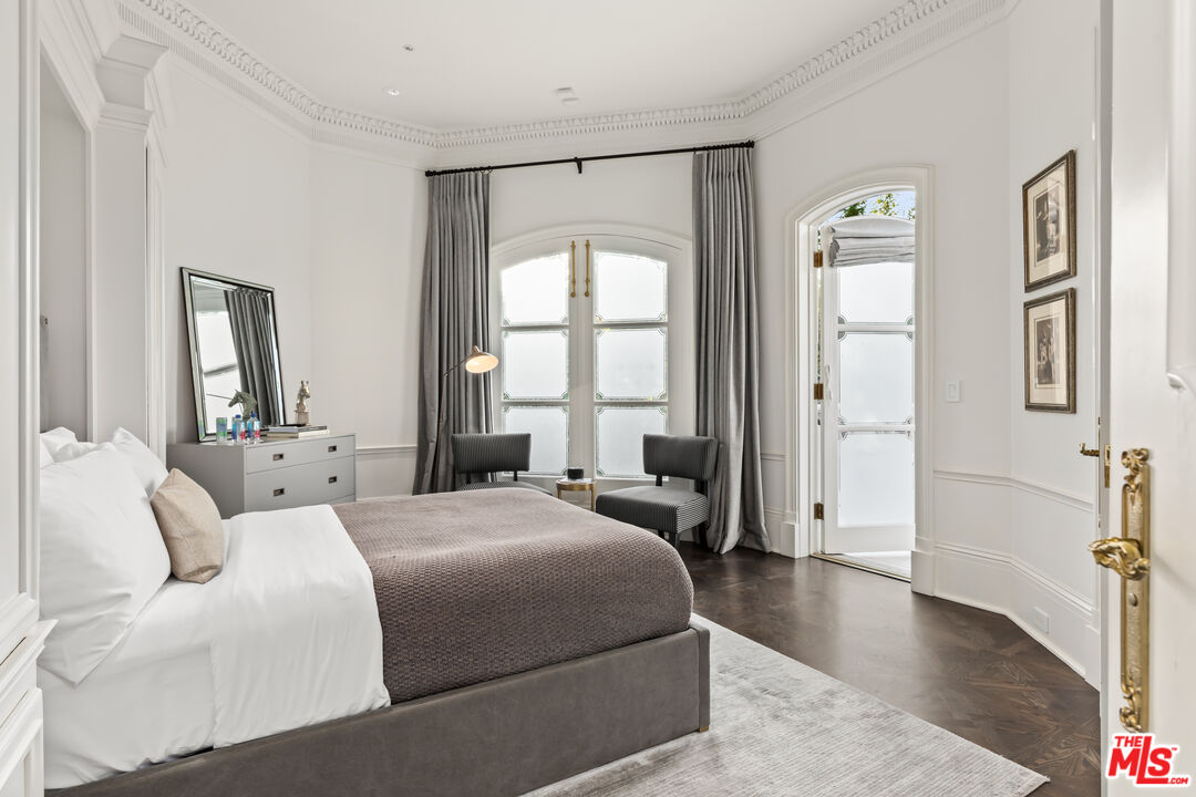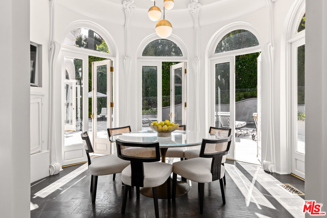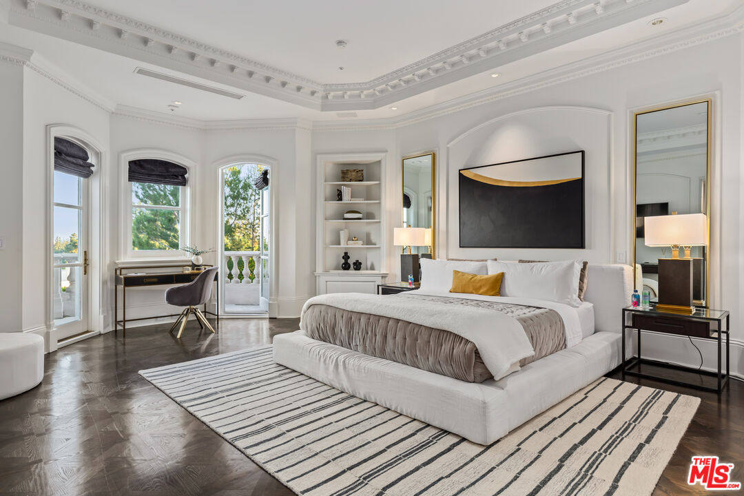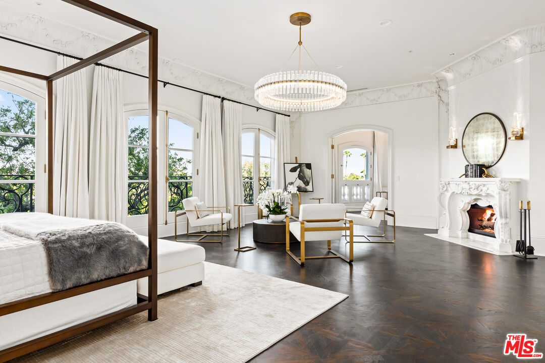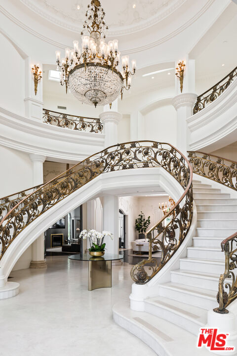 This stunning private estate, located in the prestigious city of Beverly Hills, combines timeless classical architecture with sleek contemporary interior design. Enter through grand double doors into an impressive foyer featuring soaring 30-foot ceilings and a striking bronze dual staircase, leading to a seamless indoor-outdoor layout. The formal rotunda entrance sets a tone of elegance, inspired by the refined style of the Peninsula Hotel in Paris. Blending European architectural elements, this home is a masterpiece of craftsmanship and detail.With 8 bedrooms, 12 bathrooms, and an array of formal spaces including family, living, and dining rooms with fireplaces, along with a library, bar, and media room, the estate is designed for both luxury and comfort. The custom-designed kitchen, created by Martin Pierce, includes a butler's pantry and top-of-the-line appliances. The master suite features dual bathrooms, spacious walk-in closets, and an attached private office.The impeccably landscaped grounds are an oasis, featuring a cascading pool, spa, shaded seating areas, and vibrant gardens. Ideal for hosting large gatherings, the property also offers a warm and welcoming atmosphere for intimate family living.Interested in this Listing?