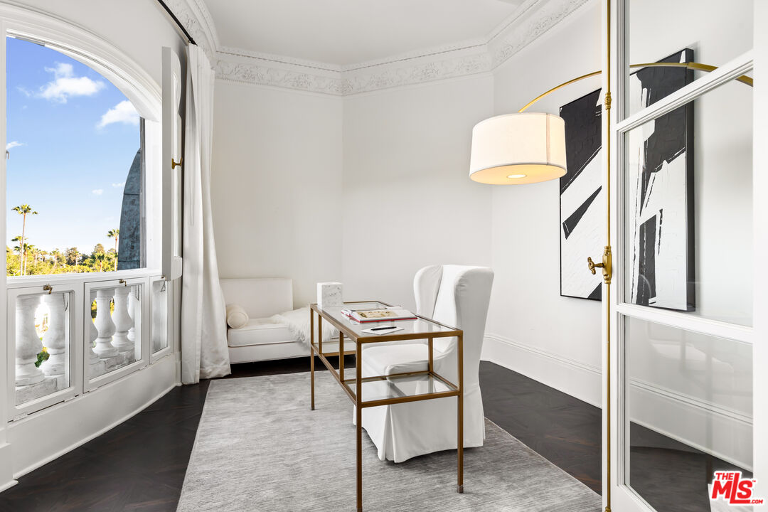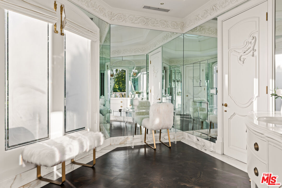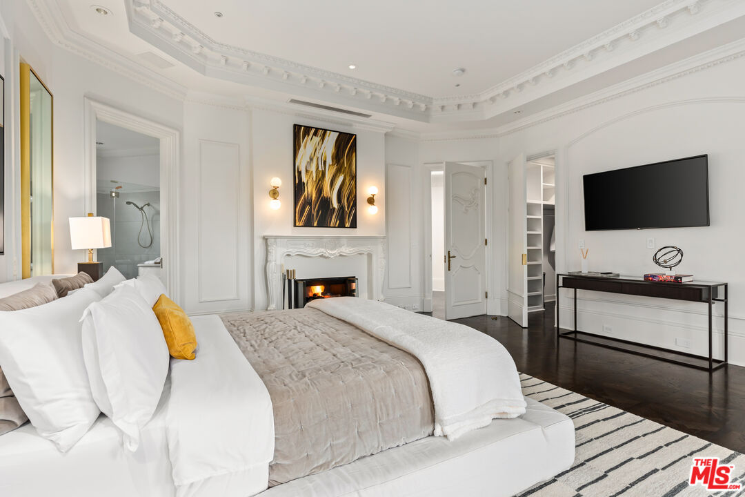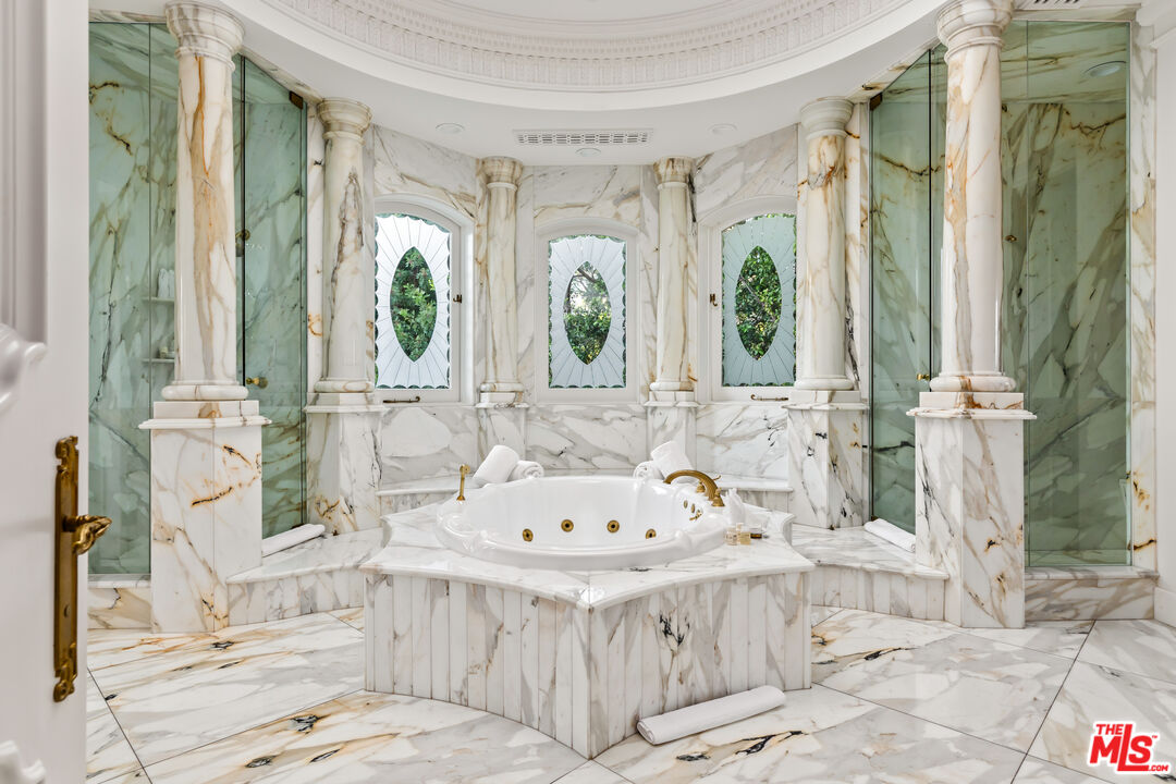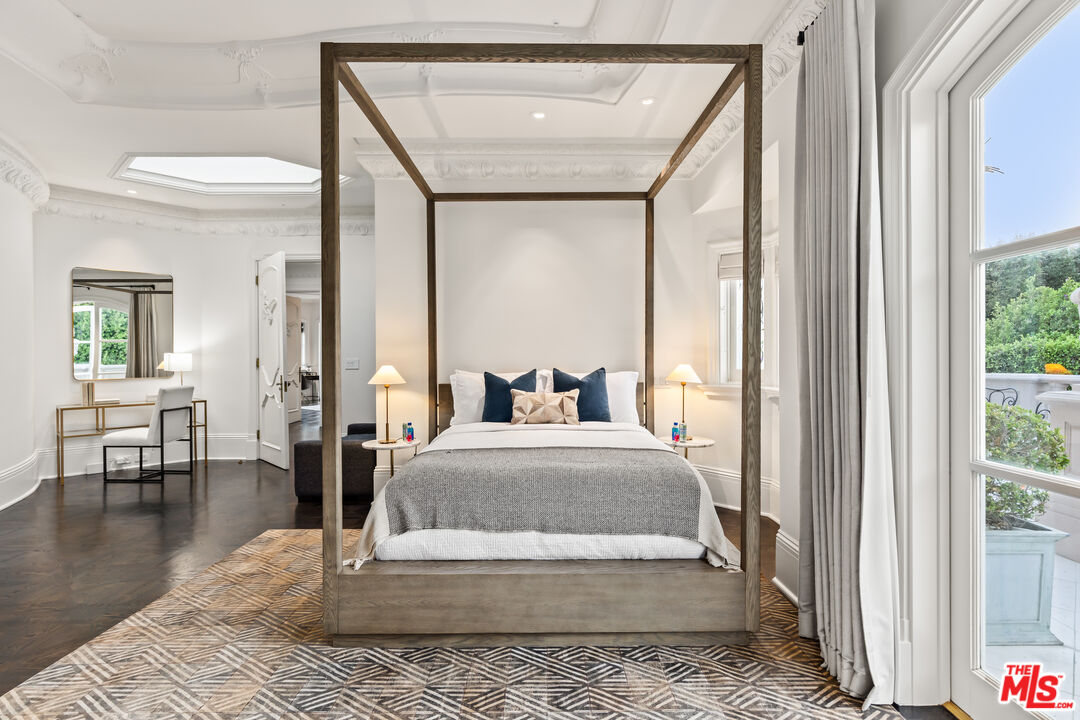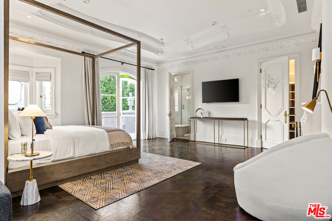 This stunning private estate, located in the prestigious city of Beverly Hills, combines timeless classical architecture with sleek contemporary interior design. Enter through grand double doors into an impressive foyer featuring soaring 30-foot ceilings and a striking bronze dual staircase, leading to a seamless indoor-outdoor layout. The formal rotunda entrance sets a tone of elegance, inspired by the refined style of the Peninsula Hotel in Paris. Blending European architectural elements, this home is a masterpiece of craftsmanship and detail.With 8 bedrooms, 12 bathrooms, and an array of formal spaces including family, living, and dining rooms with fireplaces, along with a library, bar, and media room, the estate is designed for both luxury and comfort. The custom-designed kitchen, created by Martin Pierce, includes a butler's pantry and top-of-the-line appliances. The master suite features dual bathrooms, spacious walk-in closets, and an attached private office.The impeccably landscaped grounds are an oasis, featuring a cascading pool, spa, shaded seating areas, and vibrant gardens. Ideal for hosting large gatherings, the property also offers a warm and welcoming atmosphere for intimate family living.Interested in this Listing?
