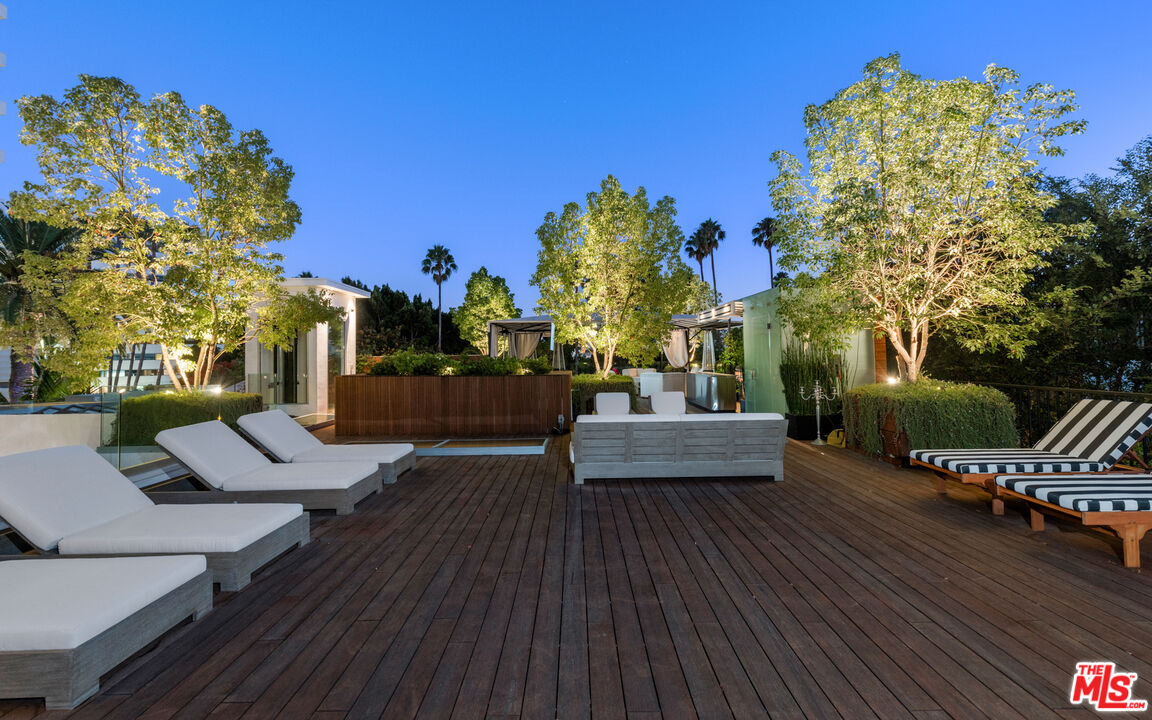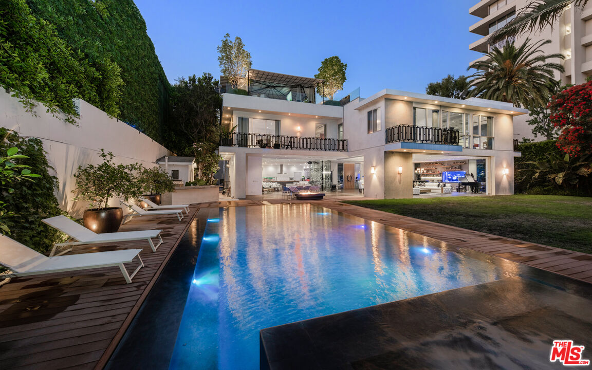 Available fully furnished and turnkey for short term monthly and longer term leases March 15th! Incredible fully furnished lease in a prime location. Super luxury personal home of experienced real estate and development family in residential and commercial many years. Fully gated, great dual entry motor court and parking garage with commercial elevator. Designed with family in mind and fabulous entertaining the home was executed with great care and attention to detail. Incredible rooftop with full kitchen, endless fruit and vegetable gardens, firepit, multiple seating areas and a bathroom, A grand bar to the left with saltwater aquarium, sitting room in front of you, formal dining and floor to ceiling glass wine refrigerator to your right are wrapped in glass and Fleetwood pocket doors which connect you seamlessly to natural light, fresh air, and views of the professionally landscaped grounds. The private yard features a swimmer's pool surrounded by a wooden deck, spa, lawn, lush koi pond, waterfall, and patio with dining table and fire pit. Step in from the patio to the comfortable family room with fireplace and drop down projection screen and into the gourmet kitchen appointed with Italian cabinetry, massive island, breakfast bar and nook. The rooftop garden deck offers you a cabana lounge with fire pit and al fresco dining area for entertaining or relaxing on warm Southern California nights. The floating staircase takes you up to the lavish guest rooms, highlighted by the dramatic primary suite with its fireplace, drop down big screen, lounge, balcony, expansive walk-in closet, and bath with dual basins, shower, soaking tub, and infrared sauna. Four exquisite additional en suite guest rooms. The main residence is exquisitely appointed, finished with the finest materials, and includes a gymnasium, staff quarters, elevator, and Control Home automation system. Twin guest houses are detached from the main house and feature kitchenette, bedroom, and bath, the larger of the two includes a separate living area. The entire compound features 10,000 sq ft of living spaces on a half acre lot, strategically located in close distance of fine dining such as Boa, Soho House, Lavo, sunset strip and minutes to Rodeo Drive and the Beverly Hills Hotel.Interested in this Listing?