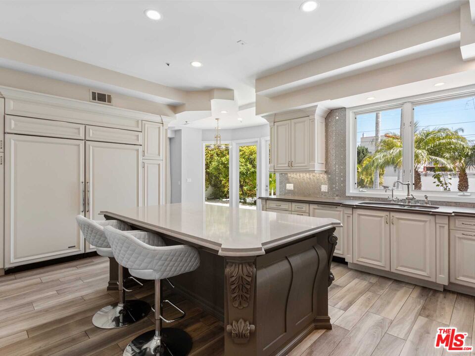Welcome to the luxurious Beverly Hills lifestyle! Located in the heart of the 90210 zip code, this grandeur and pure elegance home is accessible to the world-renowned shopping, dining, and famous Rodeo Drive. Recently remodeled with brand new floors, bathrooms and windows, showcasing a contemporary, warm modern open style floorplan and aesthetic. Upon entry, you are greeted with high ceilings throughout, sky lights, and a grand foyer leading to an impressive living room, that flows into a family room with a full bar. The culinary kitchen has custom cabinetry, quartz countertops, Wolf commercial grade 8-burner stove, and French door side-by side Subzero refrigerator and freezer. The spacious breakfast area overlooks the lush backyard and pool, providing a serene setting. A grand staircase leads to the upstairs primary suite, a peaceful sanctuary, complete with 2 walk-in closets and a balcony overlooking the backyard and pool. The second floor boasts three additional guest bedrooms one of which is en-suite and two others that share a dual bathroom, all with walk in closets. Residents of the property can utilize all of Beverly Hills School District. This bright and spacious masterpiece offers an unparalleled living experience in one of the most desirable locations in Beverly Hills. Staging in photos is virtual.Interested in this Listing?