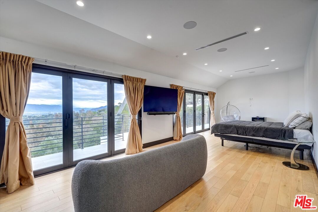 Located within the Exclusive guard-gated community "The Summit" a highly sought-after celebrity neighborhood in Beverly Hills Post Office area. This extensively remodeled gated two-story estate seamlessly combines luxury, comfort, boasts an elegant main house plus an ADU / Studio guest house. Modern contemporary home features Three en-suite bedrooms and 5.5 bathrooms. Foyer opens to an elegant living room, a formal dining room and an inviting family room open-concept living area , marble floors flow throughout home with it's stone fireplace features high ceilings, walls of glass doors that slide offering a blend of modern contemporary luxury. Main level features Modern open kitchen with European cabinetry and marble countertops, formal dining area with wine cellar, spacious living areas, including a family room and Theater Media room perfect for movie nights with powder room. The floating staircase takes you up to the lavish second floor. Master suite highlighted by the dramatic primary suite with its fireplace, lounge area, expansive boutique walk-in closet, retreat to the master bath with dual sinks, large Carrera marble dual shower, garden soaking tub plus sliding glass doors to your private balcony offering city & mountain views. Two additional en suite guest rooms with walk-in closets to maximize storage. Two car garage with direct access into the house plus electric charging station. Enjoy your privacy with the Separate ADU/ Studio guest house featuring kitchenette, dining area and full bath for your long term guest. Perfect long term furnished lease opportunity! Ready for move in.Interested in this Listing?