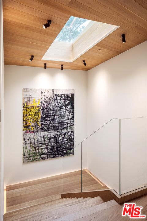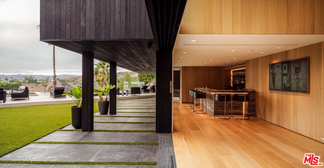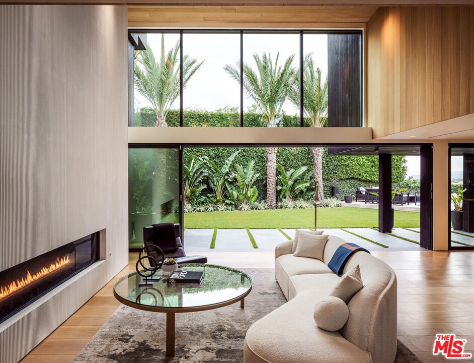 Nestled atop a private ridge in the heart of Beverly Hills, this exceptional residence by the renowned design firm Colab House offers sweeping, unobstructed views that stretch from the vibrant city skyline to the tranquil, rolling hills beyond. Inspired by the iconic Upper House Hotel in Hong Kong, this property seamlessly blends contemporary elegance with a serene sanctuary, tucked behind gates and verdant hedges to ensure the utmost privacy. The striking oak exterior opens to an expansive interior with 20-foot ceilings that flow between living spaces and the outdoors. A chef's kitchen with top-tier appliances, a spacious family room, and elegant guest accommodations are complemented by an impressive bar and dining area. Upstairs, the primary suite features a walk-in closet, sitting area, and a luxurious bathroom with panoramic views. A fully-equipped gym, office, and additional guest suite complete the second level. The backyard is a true escape with a vast lawn, sunken fire pit, infinity pool, and hot tub, all set against a backdrop of breathtaking sunsets. Fully integrated with Savant home automation, this home offers the ultimate in modern luxury.Interested in this Listing?