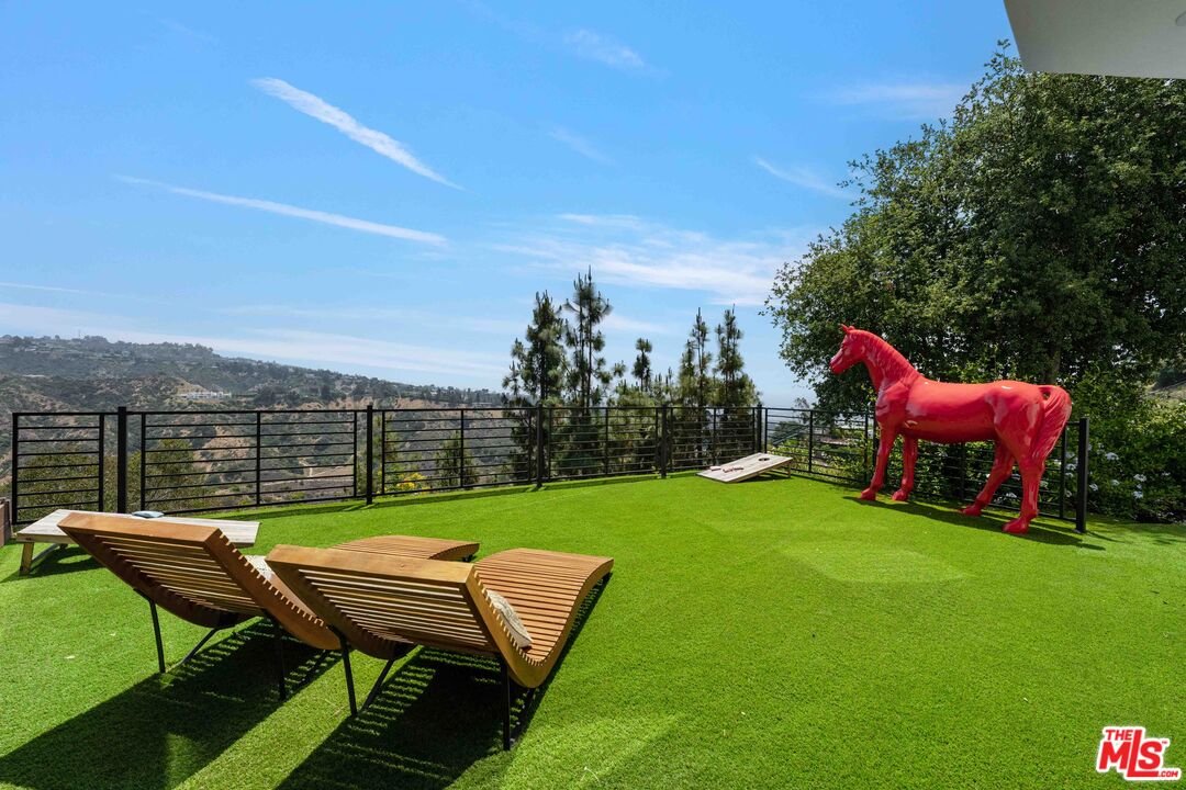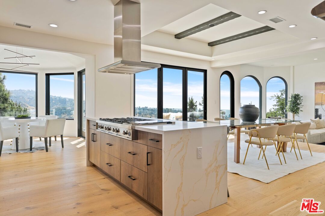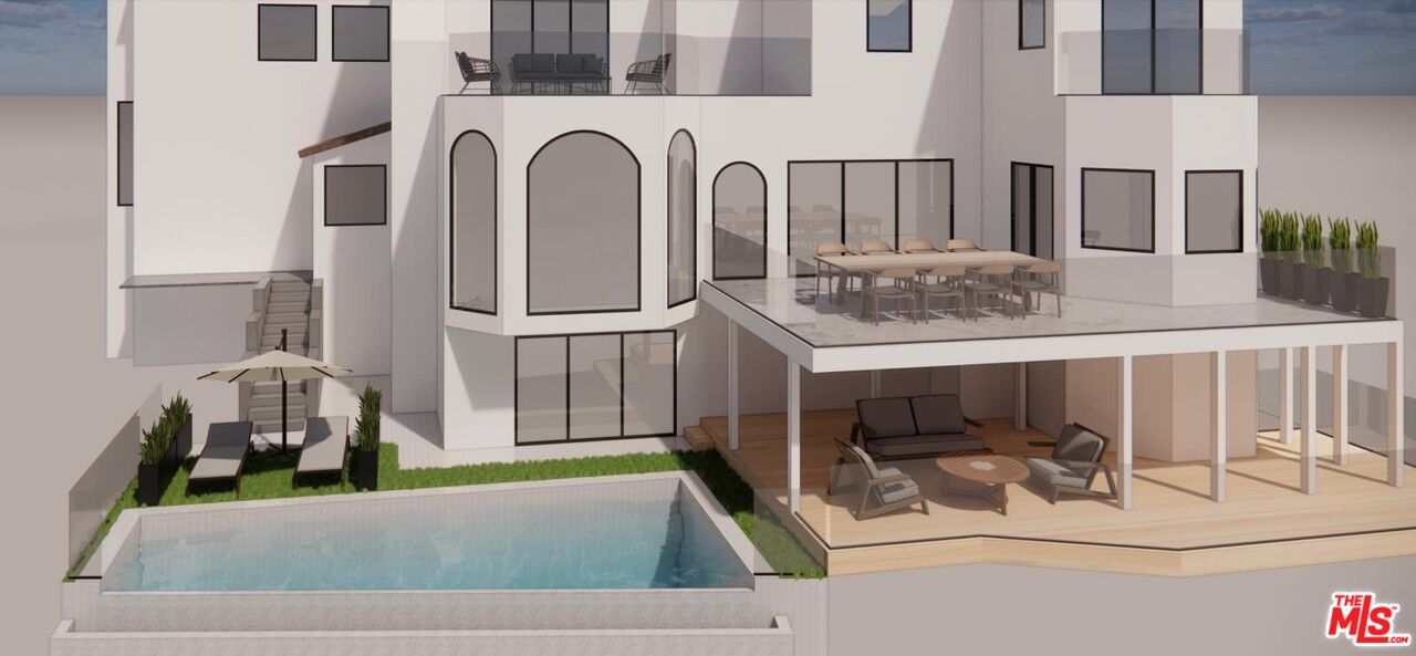 Welcome to THE SUMMIT, a fully reimagined, modern masterpiece perched atop 1.24 acres of gated hill side where every room opens to sweeping panoramas from the Pacific Ocean to the Downtown skyline. A long, private drive delivers you through secure gates to a dramatic motor court and three car garage, surrounded by lush, curated landscaping. Step inside the open plan great room, where soaring ceilings and floor to ceiling glass walls dissolve into sun drenched terraces and wraparound lounge decks. An opulent formal dining area commands prime views, while the custom kitchen dazzles with Calcutta countertops, custom wood panels, and a full suite of high end appliances. Sliding insulated glass doors in the adjacent family room extend living space to the outdoors, perfect for sunset cocktails or intimate gatherings under the stars. Ascend the sculptural staircase to the double sized master suite, complete with a private patio, cozy fireplace, and sweeping balcony. The Spa inspired bath features a freestanding tub and an elegant walk in closet finished in premium Italian millwork. At night, retreat to the outdoor deck to enjoy city lights and ocean breezes. Above the garage, a fully self contained ADU guesthouse offers a full kitchen, spa bath, and its own terrace ideal for visitors or an art studio. And with approved, ready to issue plans for a dramatic infinity pool, you can create your personal resort without delay. THE SUMMIT delivers both luxury and peace of mind. This is a rare opportunity to own a contemporary Beverly Hills sanctuary that harmonizes grandscale entertaining with serene everyday living. This home is available fully furnished for $40k per month.Interested in this Listing?