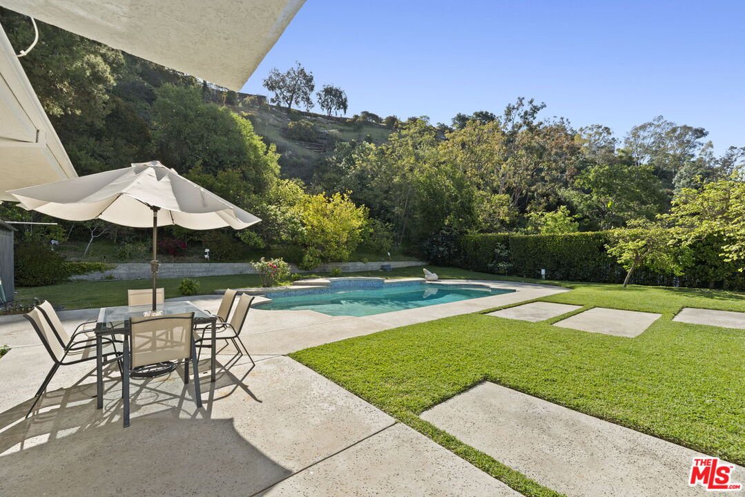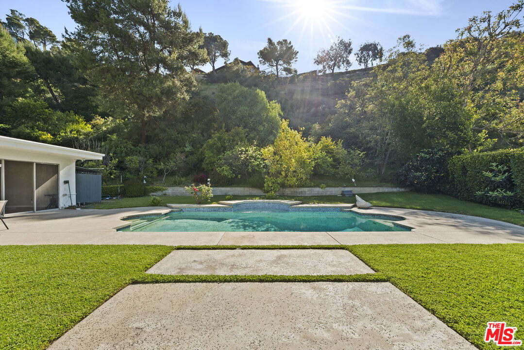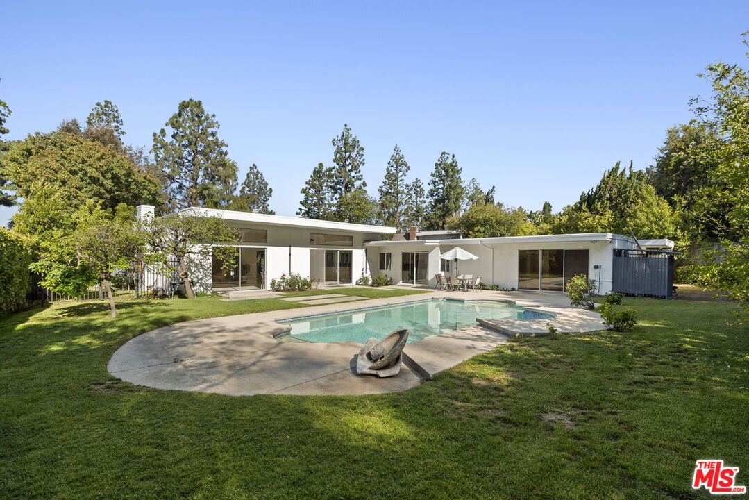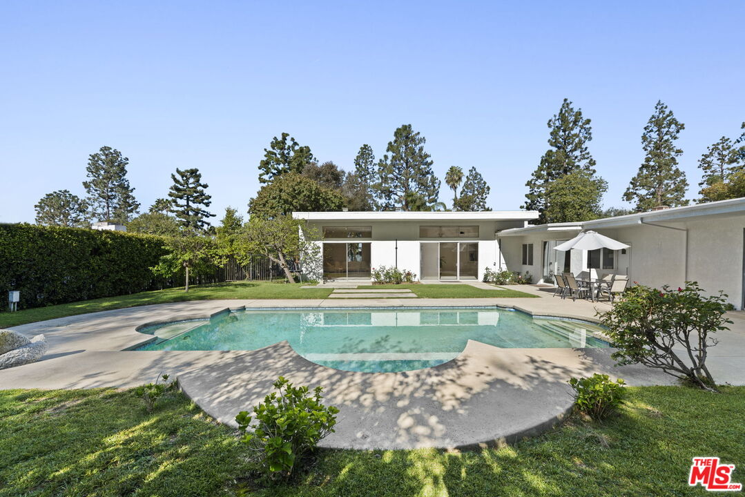 Private, mid-century modern estate in prime Beverly Hills. This 4BD, 4.5BA home spans approx. 4,848 SF and features a formal foyer, high ceilings, and walls of glass for seamless indoor-outdoor living. The spacious living room includes a fireplace and built-in wet bar, flowing to a serene private large back yard with pool. Gourmet kitchen with breakfast area overlooks lush grounds. A separate family room offers added comfort and flexibility. The primary suite features dual walk-in closets and a spa-like bath with dual sink. All bedrooms are en-suite & generously sized with ample closets. Circular drive leads to a 3-car side-by-side garage plus space for 5+ additional cars. Minutes from world-class shopping, dining, and entertainment this is a rare Beverly Hills retreat offering timeless style and total privacy. The property may have video/surveillance devices.Interested in this Listing?