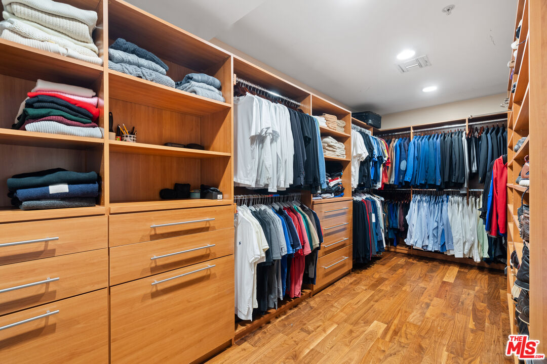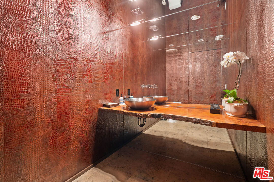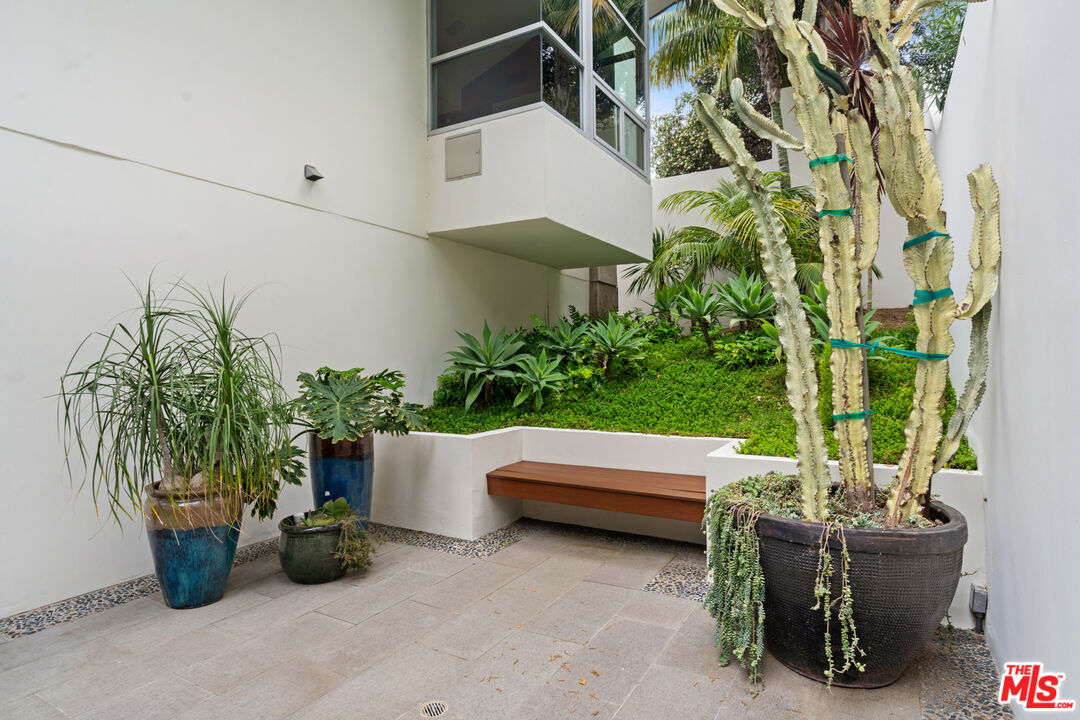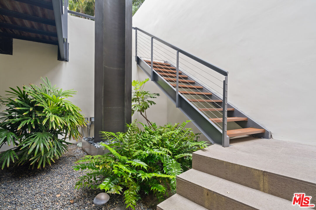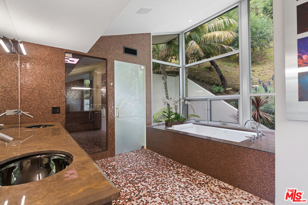 This secluded modern residence, crafted by renowned architect Steven Ehrlich after time spent in Africa with interiors by Mark Brunetz, offers unparalleled privacy at the end of a gated long driveway while surrounded by lush greenery. Floor-to-ceiling windows flood the living spaces with natural light and treetop views of the surrounding hills. The main level features a grand living room with a magnificent Murano glass chandelier, a functional fireplace, a massive family room with an adjacent crocodile leather imprint walled powder room, and a formal dining room. The custom kitchen boasts top-of-the-line Miele stainless steel appliances, Gaggenau and Fisher & Paykel, and an oversized island for casual dining. Additionally, the residence features a motorcourt for convenient parking and easy access to the home. Upstairs, the primary suite offers automatic shades along with blackout curtains, a TV that elegantly descends from the ceiling, as well as a walk-in closet with built-in walls. A spa-like en-suite bathroom adjoins with exquisite Bisazza tilework which cascades from light to dark as you walk through the room, plus a spa bathtub, steam shower and an in-wall Ariston espresso maker. The outdoor space includes a heated spa and pool with outdoor entertaining areas and a viewing deck that offers panoramic views from the top of the hill behind the home connected by a charming staircase. Three guest bedrooms, one with an en-suite bath, provide ample accommodation, while the additional guest bedrooms share a bathroom complete with both a shower and a bathtub. Underneath, a versatile space awaits, with a room equipped with a bathroom and shower which has easy access to the pool and can serve as a workout room or workplace. With meticulous attention to detail and modern conveniences throughout, this exceptional residence epitomizes luxury living in a serene oasis.Interested in this Listing?