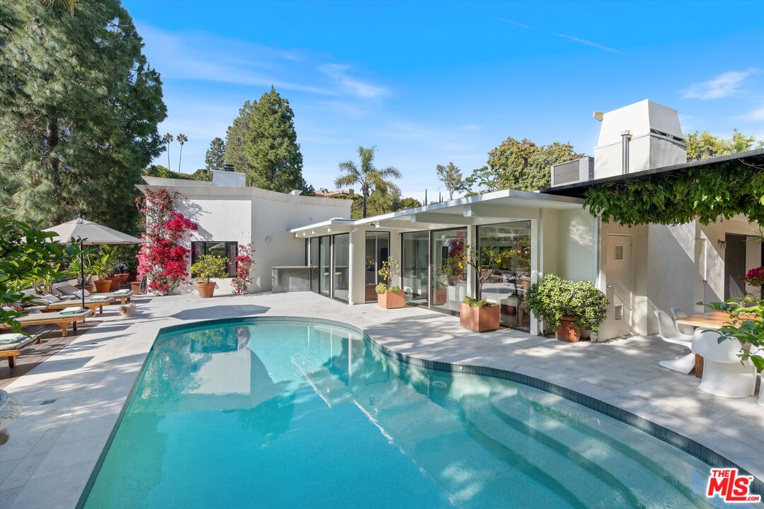Experience the indulgence of residing in this opulent abode, available for both short-term and long-term stays, complete with professional housekeeping services! This exquisitely appointed home, replete with European influences, exudes impeccable style and sophistication. Nestled just steps away from the prestigious Beverly Park Estates and within easy reach of celebrity mansions, this single-story villa offers a tranquil retreat accessed through a meticulously landscaped courtyard. Inside, an open-concept layout seamlessly integrates the living room, dining area, library, and executive office, all connected to the expansive outdoor area featuring a heated saltwater pool, BBQ zone, and lounging area adorned with chaises perfect for unwinding. The luminous and sumptuous primary bedroom suite, adorned with high ceilings, French doors, a dual fireplace aside the hot tub, a separate luxurious steam shower, and an expansive walk-in closet, promises unparalleled comfort. Each of the three ensuite bedrooms enjoys direct access to a garden patio and the backyard pool, while a generously sized reading area and office overlook the front courtyard, embellished with vibrant bougainvilleas and a serene fountain. For added luxury and versatility, a separate detached guesthouse complete with a full bathroom, living area, and kitchenette may be included separately. This private retreat is ideal for guests, in-laws, or as a peaceful work-from-home space. The covered, gated 2-car garage offers convenient access, supplemented by additional parking in the driveway. Discover the epitome of luxury living in this remarkable home!Interested in this Listing?