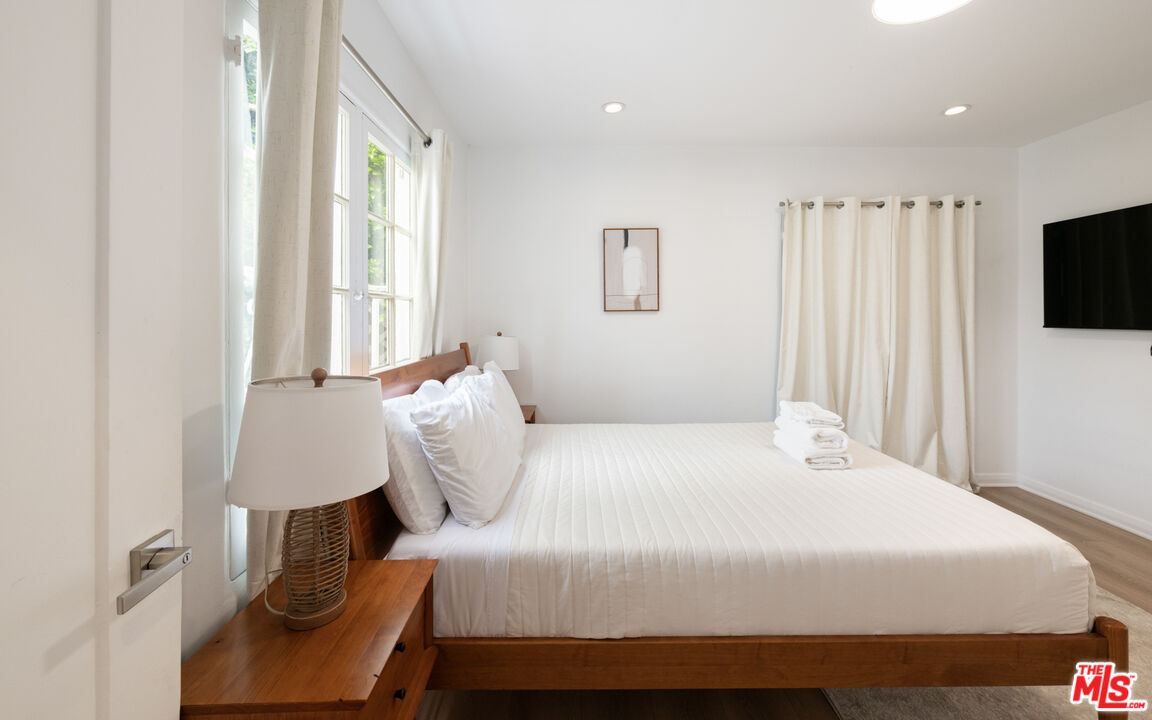 Welcome to 239 S Doheny Drive, a beautifully furnished 2-bedroom, 2-bathroom upper unit that offers classic Beverly Hills living with timeless charm. This thoughtfully designed home features an open floor plan that is bathed in natural light, highlighting gorgeous hardwood floors and tasteful, contemporary furnishings that create a warm and inviting atmosphere throughout. The fully equipped kitchen features high-end appliances, ample counter space, and modern cabinetry, making meal preparation a breeze. Enjoy year-round comfort with central air conditioning and the convenience of in-unit laundry. With two dedicated parking spaces, you'll have no trouble finding convenient parking in this sought-after location. Ideally situated just minutes from Rodeo Drive, this residence provides easy access to Beverly Hills' finest dining and shopping destinations, including Urth Caffe and Mastro's Steakhouse. Set in a charming Spanish duplex, this unit offers both privacy and luxury in one of the most desirable neighborhoods in Los Angeles. With its prime location, luxurious amenities, and classic interiors, this home is the perfect turnkey opportunity for those seeking a sophisticated lifestyle in Beverly Hills.Interested in this Listing?