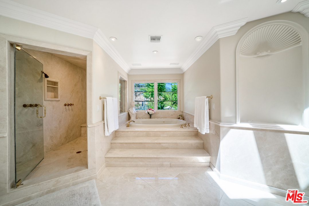 Contemporary Mediterranean Villa on a Cul-De-Sac, furnished lease available @ $40,000 per month. Enter the lavish two story sun filled foyer into the beautifully fully furnished 7 bedroom home with various formal or informal living rooms. Completely renovated in 1998 with various size-able rooms perfectly comfortable for two people or large scale entertaining, accented with beautiful large windows to let the outside in. Large fully equipped kitchen with high end appliances, butler counter for easy dining room service, additional counter and full size table seating. Resort like grounds, complete with multiple gathering areas. Enjoy evening cocktail hour listening to the waterfall, enjoying the blazing fire pit or BBQ Steak, Salmon, even Vegetarian/Vegan meals. Treat yourself to outdoor activities in the swimming pool, soaking in the spa, play a game of tennis or relax on the lounge under the umbrella. Neighborhood has 24 hour patrol, a Fantastic Get-Away only minutes from Beverly Hills Restaurants & first class shopping. Call for short term pricing Security Deposit to be adjusted by length of stay.Interested in this Listing?