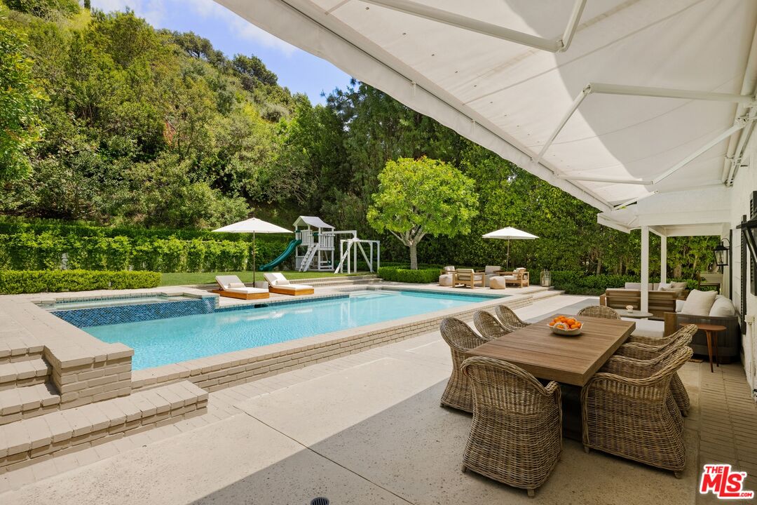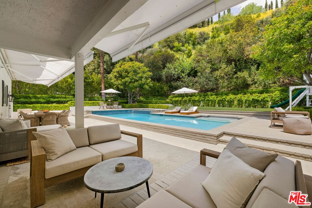 Discreetly located in a quiet cul-de-sac in one of Benedict Canyon's most coveted pockets, this elegantly reimagined home strikes the perfect balance of charm, space, and style. A dramatic entry and sweeping staircase set the tone, with sun-drenched interiors and a smart, flowing floor plan designed for easy living and effortless entertaining. The formal living, dining, and family rooms are generous and inviting, while the eat-in kitchen anchors the home with both beauty and function. Downstairs also features a private maid's suite, full laundry, and direct access to a spacious 3-car garage. Upstairs, the expansive primary retreat offers dual walk-ins and his n hers baths, with three additional bedrooms- one ensuite, one Jack-and-Jill for flexibility. Out back, the vibe is pure SoCal Leisure with a sparkling pool, large lawn and multiple lounge areas for relaxing or hosting under the stars. All utilities included. (Short term lease available between June 7th and August 23rd only).Interested in this Listing?