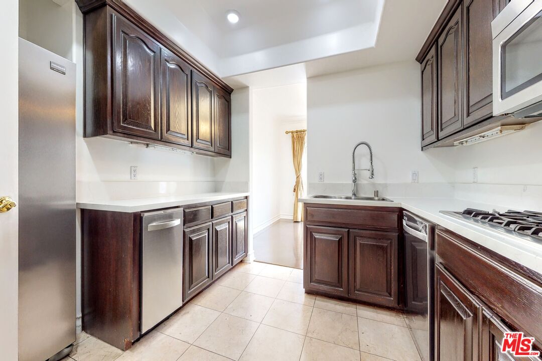 The beautiful French Normandy Condo Building is located in the highly desired city of Beverly Hills. Bright 3-bedroom unit on the 3rd floor facing Century City with many double French doors, so close it's almost on Beverly Dr. Each bedroom has its own bathroom. This charming condo has been upgraded with stainless steel appliances, brown cabinetry, and Calcutta gold granite countertops. Hardwood floors throughout. NO COMMON WALLS (except ceiling/flooring). Large master bedroom and master bath with bidet. An Entertainer's unit! Large living room with fireplace. Separate dining area, great kitchen, LARGE master suite with fireplace, and spa tub, beautiful wrought iron balcony and French doors throughout, recessed LED lighting, video intercom, 2 side-by-side covered car parking, storage room.Interested in this Listing?