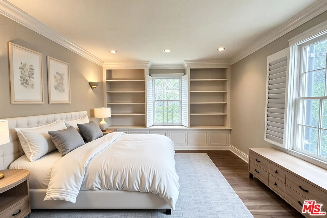 Located in the prestigious Beverly Hills Flats near iconic Rodeo Drive, this beautiful two-story traditional brick home is the embodiment of timeless luxury. A picturesque rose garden frames an inviting porch, perfect for morning tea. Inside, the formal foyer opens to a spacious living room featuring an elegant fireplace and built-in reading nook. Across the foyer, the formal dining room flows into a sophisticated breakfast room and sun-drenched kitchen with generous counter space, rich wood cabinetry, island range and luminous skylights. Down the hall, an enormous, wood-paneled family room is illuminated by wall-to-wall French doors. Boasting a sit-down wet bar, a cozy fireplace and parquet floors, this delightful space is ideal for gathering and entertaining. A laundry room and versatile 5th en-suite bedroom complete the first floor. Upstairs, the luxurious primary suite includes a grand entry, sunlit bedroom, glamorous walk-in closet and spa-like bath with dual vanities and soaking tub. A 2nd oversized bedroom features its own fireplace, walk-in closet and private bath. Two additional bedrooms and a shared bathroom complete the floor. Outside, the serene backyard features enchanting flower-covered pergolas, an outdoor kitchen, a lush grassy area and romantic fireplace. A charming 1bd+1ba guest house above the detached garage offers a full kitchen and open living space. With top-rated Beverly Hills schools, civil services, shopping and dining, this is a coveted offering that's quick to go! Please note, the garage will not be included as part of the lease.Interested in this Listing?