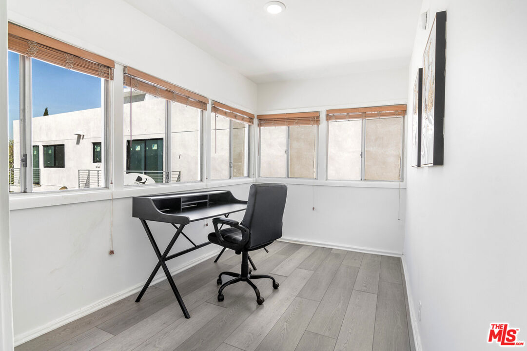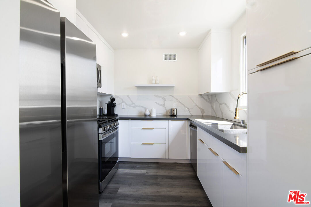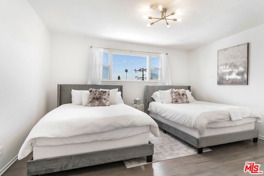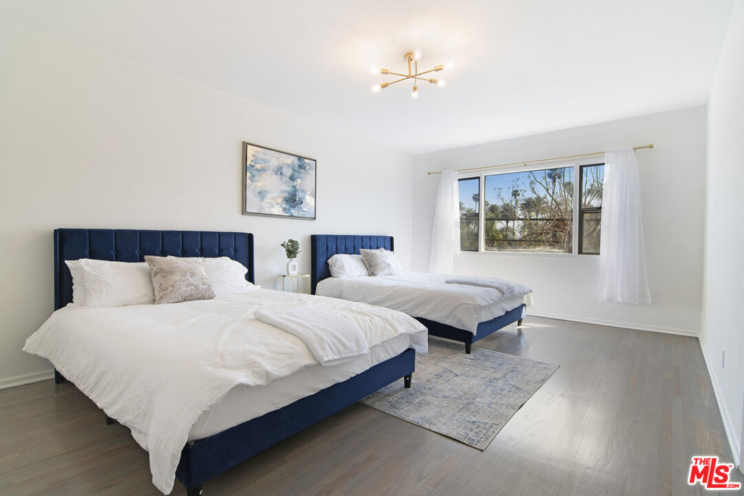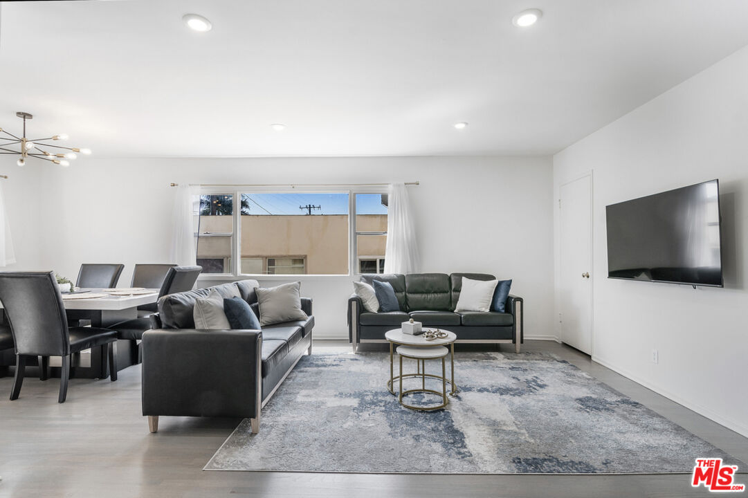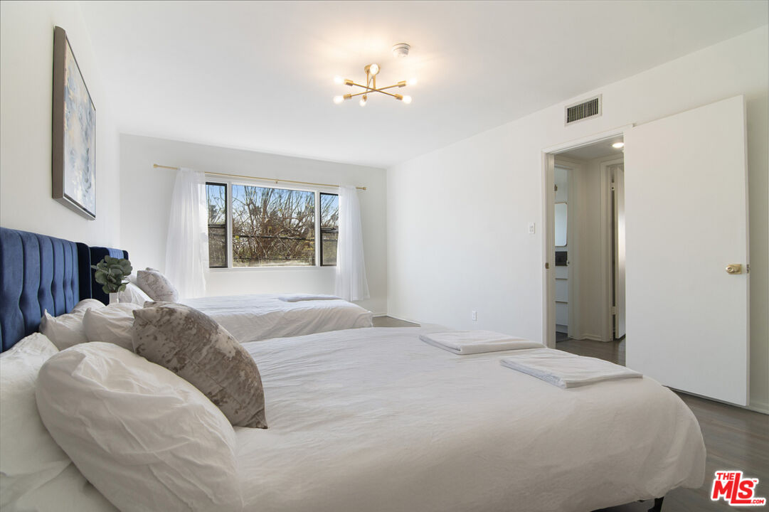 Great newly renovated 3-bedroom, 2-bathroom townhome in prime Beverly Hills. This sunshine-filled home features an open living and dining area with recessed lighting and original stained hardwood floors. The sleek modern kitchen includes white cabinetry, stone countertops, and stainless steel appliances. A large downstairs bedroom with closet provides flexibility, while upstairs offers two spacious bedrooms with expansive walk-in closets and sweeping treetop and mountain city views. Both bathrooms include vanities and tub/shower combos. A bright bonus sunroom/office/den adds versatility, and additional features include in-unit stackable washer/dryer, central A/C and heat, two side-by-side parking spots, and gated security. Fully furnished with new furniture and cookware, with an option for unfurnished.