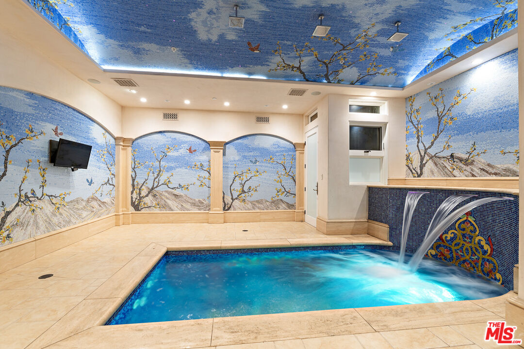 Completed in 2017, this newly furnished masterpiece blends timeless European architectural influences with the most advanced modern comforts, including full Crestron smart home integration. Spanning approximately 12,000 feet with three expansive levels serviced by an elevator, this 7-bedroom compound (including a separate guest house) features bespoke finishes throughout and is newly outfitted with Restoration Hardware furnishings. At the heart of the home is an oversized chef's kitchen with top-of-the-line Miele, Wolf, and Sub-Zero appliances including a double-sided refrigerator, four freezers, 8-burner range, dual ovens, and built-in espresso machine centered around a massive island ideal for culinary creativity and social gatherings. Unwind in the spectacular diamond-quilted leather theater with 14+ plush seats and state-of-the-art audiovisual technology. Entertain effortlessly with indoor-outdoor flow, outdoor poolside shower and bathroom, barbecue area, and multiple balconies. Indulge in spa-like amenities including a rare indoor saltwater pool with swim current jets, rainfall shower, and both dry and wet saunas. A custom wine cellar, lavish primary suite with oversized walk-in closet and jacuzzi, and smart security system with full perimeter cameras, motion detectors, and glass-break sensors complete the experience. Additional features include water softening and reverse osmosis filtration systems, garage parking, and a separate guest house ideal for staff, guests, or a private home office setup. This one-of-a-kind estate is offered fully furnished and move-in ready for long-term or multi-month lease. Experience luxury living at its finest, in the most prestigious location Beverly Hills has to offer.Interested in this Listing?