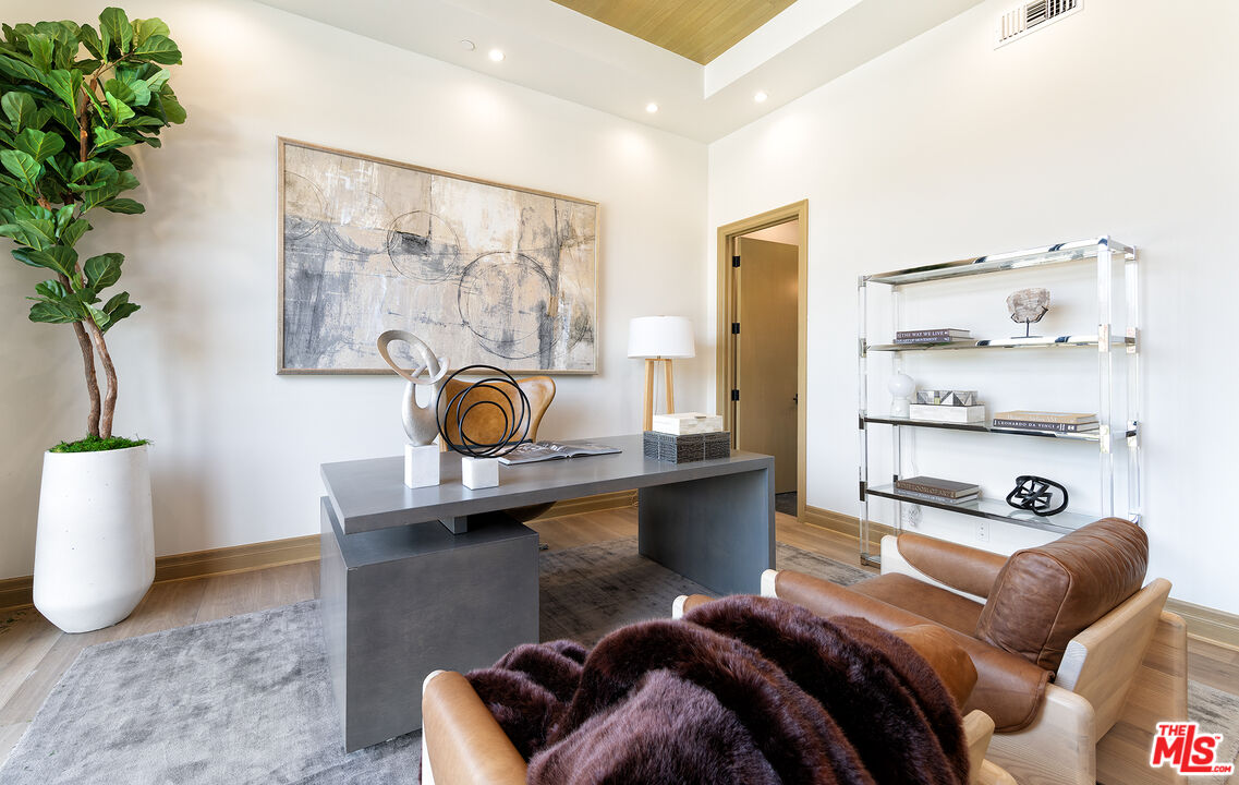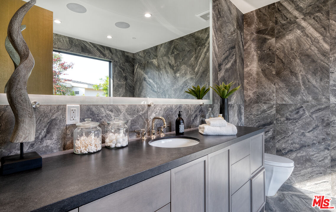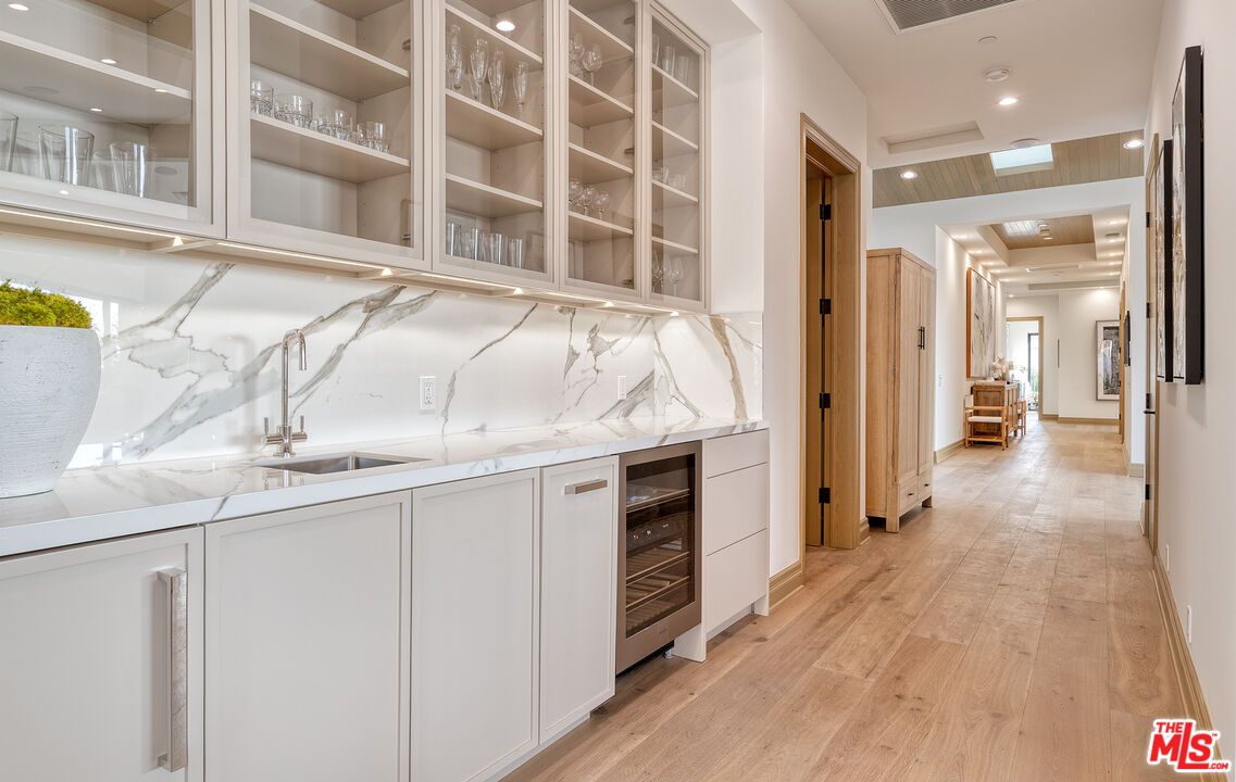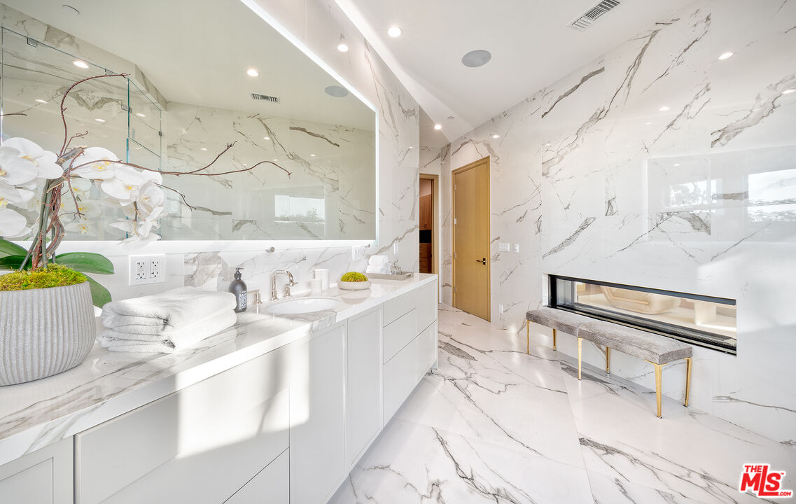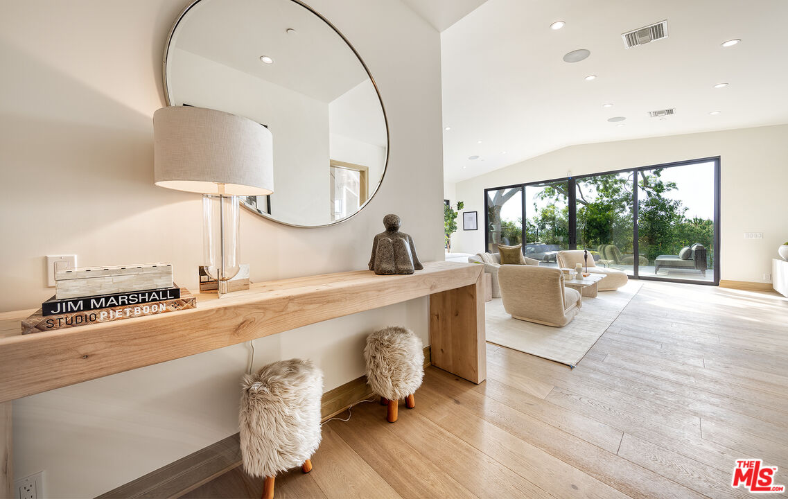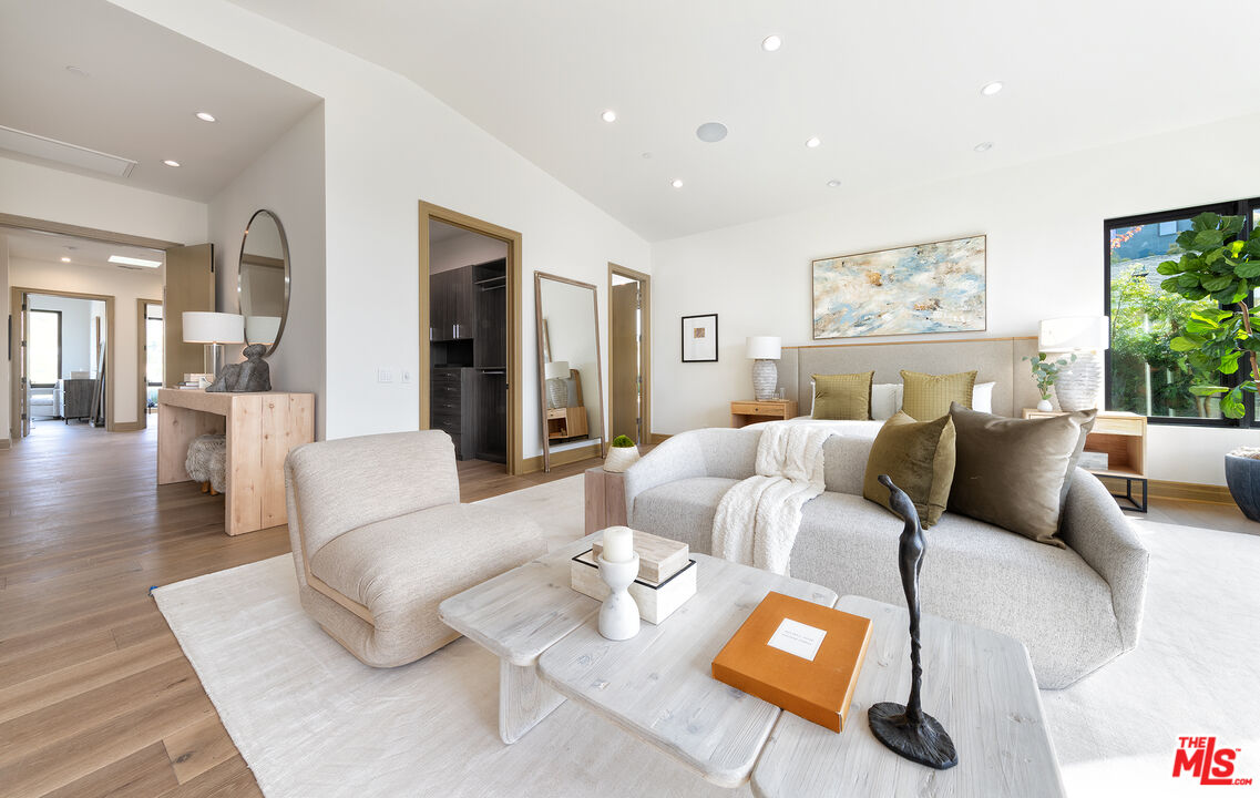 The Janice Place Estate is a contemporary masterpiece on a 28,950 square-foot lot oasis set within a secluded cul-de-sac just north of coveted Trousdale Estates. The newly built, 6194 square foot, single-story home boasts six en-suite bedrooms and nine bathrooms, surrounded by a lush and expansive backyard featuring an infinity pool and spa set over stunning canyon views. Past the sustainably harvested garapa wood facade with iron windows at the front exterior lies a 10-foot high, pitched oak ceiling entryway that leads to retractable floor-to-ceiling glass doors allowing the great room to seamlessly merge into the Eco-conscious backyard landscaping. The chef's kitchen features Meile appliances, Calacatta Borghini waterfall islands, custom-designed cabinetry and pantry, a full wet bar, and a glass-enclosed wine room. The media room sits beside a matchbook feature wall and easily converts from an expansive entertaining space or flows into an intimate home theater. Inside the spacious primary bedroom suite is a pearl onyx double-sided fireplace, his/hers baths; each with a sitting tub, steam shower, personal closet, and private patio. The five additional bedroom suites are perfect for family, guests, a private office, an indoor gym/yoga studio, or au-pair quarters. Outside is an entertainer's paradise with a custom barbecue station, multiple lounge areas, and a fire pit. This turnkey property is immediately ready with curated interior-designed furniture and a one of-a-kind art collection. Smart home technology, a Sonos sound system, and a camera security system complete this affluent lifestyle home.Interested in this Listing?