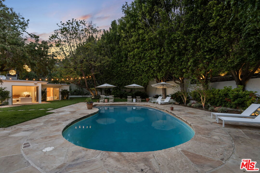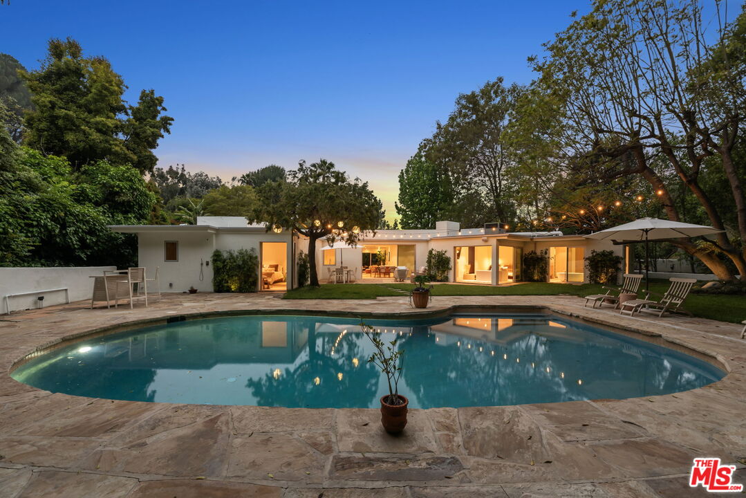 Welcome to your private mid-century paradise a truly magnificent retreat. This stunning estate, offering approximately 2,600 sq. ft. of refined living space, was once the cherished home of Hollywood icons Anne and Kirk Douglas. Tucked away in a serene, exclusive cul-de-sac, this secluded haven blends timeless elegance with resort-style luxury in one of L.A.'s most coveted neighborhoods. Step into a sun-drenched, expansive living room featuring a classic fireplace and a dramatic skylight that floods the space with natural light. The open layout flows effortlessly into a sophisticated dining area, ideal for intimate dinners or upscale entertaining.Beyond the living spaces, discover a lush, tranquil paradise meticulously landscaped grounds that offer the ultimate in outdoor living. Enjoy your own private oasis with a sparkling pool, shaded lounge areas, and lush gardens designed for both relaxation and unforgettable gatherings. The romantic primary suite offers a true sanctuary, complete with a spacious en-suite bath and private access to the garden, where you can wake up to birdsong and unwind in nature's embrace. With a prime central location just minutes from Beverly Hills, Mulholland Drive, and the best of Los Angeles, this estate offers not only luxury and privacy but also unmatched convenience. Don't miss this rare opportunity to experience a slice of Hollywood history wrapped in resort-style comfort.Interested in this Listing?