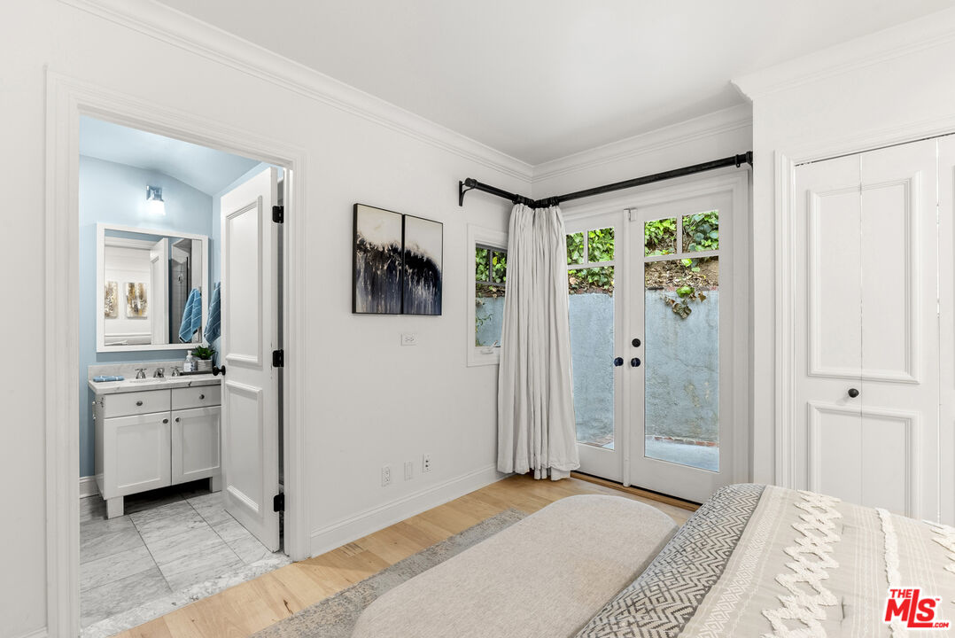 Just minutes from Downtown Beverly Hills, this charming home is tucked away on a private cul-de-sac off Coldwater Canyon. Inside, two private bedrooms each offer en-suite marble baths, including a spacious primary suite with a walk-in closet and its own secluded patio with hot tub. The open living and dining area features a gas fireplace and French doors that lead to a sunny deckideal for indoor-outdoor living. A well-appointed kitchen boasts stainless steel appliances, marble countertops, and a stackable washer and dryer. With crown moldings, hardwood floors, and Waterworks fixtures throughout, this elegant residence embodies classic Beverly Hills living. Furnished rate available upon request.Interested in this Listing?