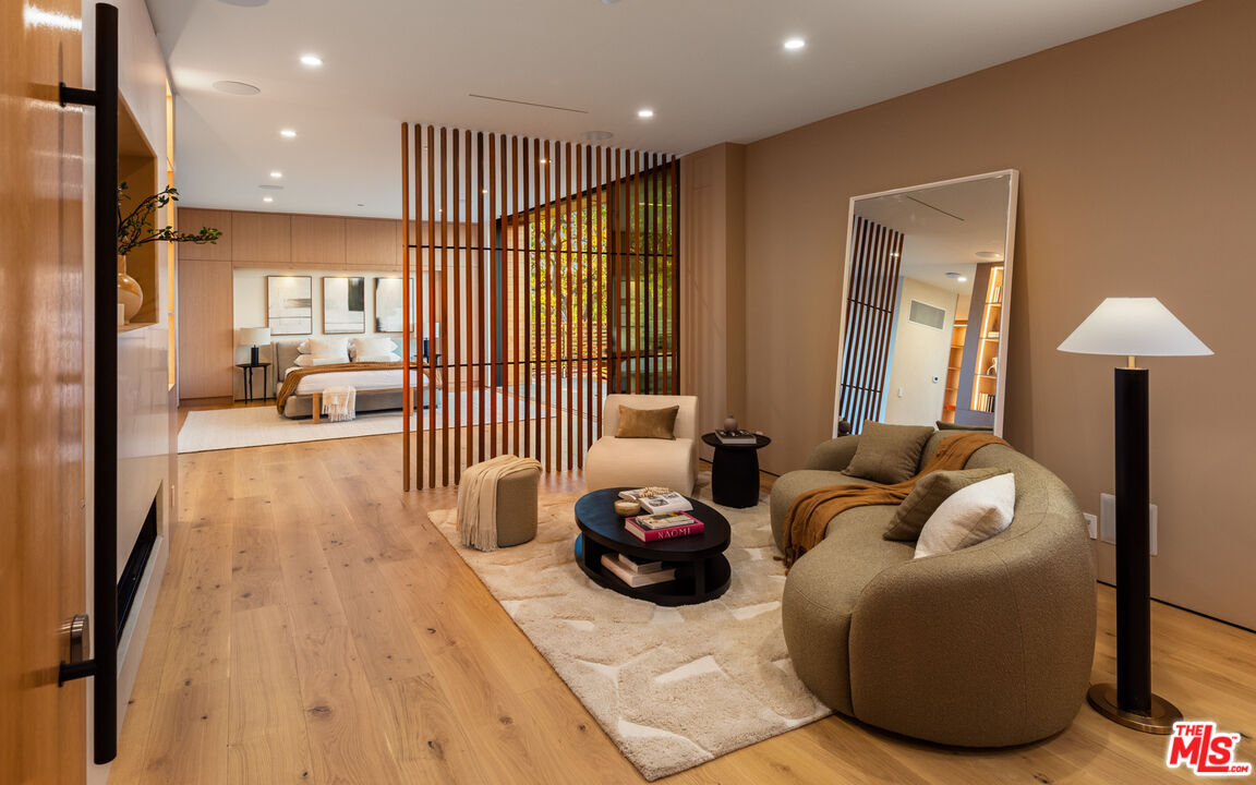 This stunning new architectural gem, designed by the acclaimed Noah Walker, sets a new standard for luxury living. Nestled behind the prestigious gates of Oak Pass Road in Beverly Hills, this ultra-private estate offers a rare combination of seclusion and grandeur. Spanning across an expansive floor plan, the home features 7 spacious bedrooms and 9 lavish bathrooms, perfect for both intimate living and large-scale entertaining. The journey begins through an impressive glass pivot door, greeted by a 10-foot indoor greenery wall, elegant brick-clad columns, and soaring hardwood ceilings. The state-of-the-art kitchen isa chef's dream, with dual marble islands, oak cabinetry, top-of-the-line Wolf and Subzero appliances, and two Miele coffee makers. The kitchen seamlessly flows into the dramatic two-story living area, complete with a custom floating staircase that connects all levels of this architectural wonder. Designed to blend indoor and outdoor living, the home boasts 50-foot Fleetwood pocket doors that open to the meticulously landscaped grounds, featuring a zero-edge pool and spa, an outdoor kitchen, fire pit, olive trees, and multiple lounging areas all set against breathtaking panoramic views. First-class amenities include a private movie theater, fully equipped gym, Himalayan salt sauna, dual steam showers, a temperature-controlled wine display, three private balconies, and a Crestron smart home system. The motor-court, lined with mature oak trees, adds the finishing touch to this one-of-a-kind estate. This extraordinary residence off ers an unmatched level of sophistication, set in one of the most exclusive locations in Beverly Hills. An unparalleled opportunity for those seeking ultimate luxury.Interested in this Listing?