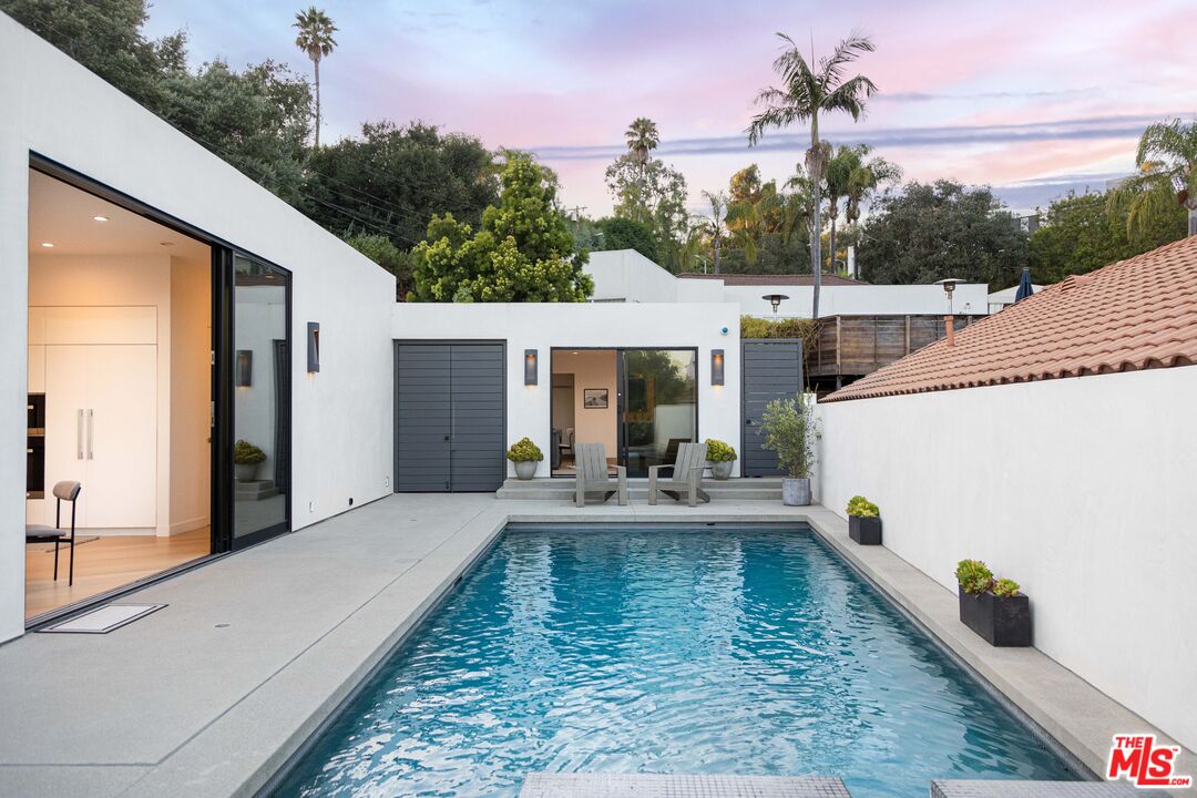 In an exclusive neighborhood, nestled among a lush gully with amazing city views, is a private sanctuary for your most discerning clients. Professionally decorated with a chic but casual vibe, the home boasts White oak European hardwood floors, and an all Miele kitchen. Eleven foot ceilings, and tall Fleetwood doors open back to create a seamless indoor/outdoor living experience. Generous bathrooms with natural light and solid wood vanities offer plenty of drawers that are both rich and functional. Luxurious, custom made silk and wool rugs are in both the master and guest bedrooms, while all bedrooms feature high quality linen bedding. Other amenities include a heated pool and spa, with a detached pool house that can be used as an office or an additional guest bedroom, as the custom built- daybed can quickly and easily convert to a queen bed. For outdoor lounging and entertaining, there is an L-shaped outdoor sofa as well as a dining table that seats 8, and two teak chaise lounges. The grassy side-yard hosts a large stone fire pit, with seating and fiesta lights for a magical ambiance. The design aesthetic of this house is chic, modern and organic. EV hookup installed. Clients seeking high quality must see to appreciate. NO Airbnb.Interested in this Listing?