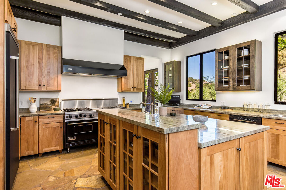 Tucked away at the very end of coveted Mandeville Canyon, Stone Hollow is a breathtaking 7.5-acre estate where timeless rustic charm meets refined California living. Offering total privacy, generous scale, and striking natural beauty, this one-of-a-kind compound features a 5-bedroom, 5-bathroom main residence with over 5,400 sq ft of thoughtfully designed living space plus a detached 700 sq ft guesthouse above a 3-car garage. A secure gated entrance opens to a long, private drive that winds past mature trees and lush landscaping. The main home, built in 2006, radiates warmth and understated sophistication, with natural stone finishes, vaulted wood-beamed ceilings, rich textures, and expansive views of the surrounding canyon. Walls of glass and open, airy living spaces create seamless indoor-outdoor flow throughout. The layout is ideal for entertaining and everyday living, with a chef's kitchen, formal and informal dining areas, and a dramatic living room anchored by a statement fireplace and large picture windows. Outside, expansive flat lawns, stone patios, a tucked-away spa, fire pit lounge, multiple seating areas invite relaxing outdoor living year-round. Meandering pathways and manicured gardens further enhance the sense of retreat. Just beyond the residence is a professional-grade equestrian facility, complete with a 4-stall barn, tack room, wash area, gym, and a riding arena. While no longer an active ranch, the infrastructure remains intact offering endless possibilities for horse lovers, creative reimagining, or simply enjoying the space and flexibility it provides. Minutes from the heart of Brentwood, yet a world away, Stone Hollow is a true legacy property rarely available and impossible to replicate. For those seeking nature, serenity, and luxurious space without leaving Los Angeles, there is nothing else like it.Interested in this Listing?