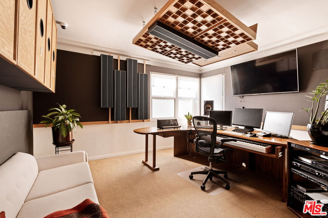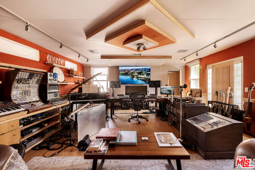 This unique property offers an exceptional opportunity for musicians, producers, and creatives seeking a professional recording studio seamlessly integrated with a spacious home. Currently configured as two independent studio spaces with an additional two writing and editing suites, the property lends itself equally well to the needs of a small creative team or a professional seeking the ultimate in home studios. Designed by renowned acoustician Steven Klein, the facility combines a first-class recording environment with state of the art audio and video networking, and gives the user the ability to use the live spaces from any of the four writing rooms. With natural light emphasized throughout, and a gorgeous garden featuring mature fruit trees, this is an outstanding creative oasis. The master bedroom, currently used as Studio B, features a luxurious ensuite bath with dual sinks and a deep soaking tub. With maple and walnut hardwood floors and stylish accent lighting, this space is both inspiring and functional. The gated property also offers ample parking for up to eight vehicles behind two sliding automatic gates, ensuring privacy and security. Located just blocks from major entertainment studios such as NBC, Disney, ABC, and Warner Brothers, this property is perfectly situated for industry professionals. Offering a blend of high-end functionality, privacy, and artistic inspiration, it is truly a rare find.Interested in this Listing?