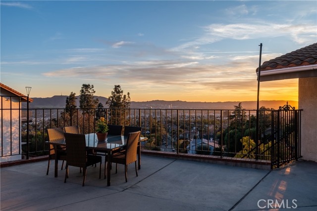 Welcome to this beautiful, multi level contemporary view home nestled in desirable Burbank Hills with breathtaking, panoramic views and stunning light throughout the day. Functional floor plan provides spacious living spaces, privacy and tranquility. Sunbathed open floor plan welcomes you to an elegant living room with polished marble floors and fireplace and formal dining room. Expansive balcony that runs along the entire length of the living room and formal dining room featuring captivating hillside views all the way to DTLA, San Fernando Valley and Burbank is a perfect place to relax and enjoy the sunset. Exceptional cherry wood chefs kitchen with granite countertops and custom cabinetry is conveniently located between the dining room and family room complete with a breakfast area. Also upstairs is a guest powder room and family room with direct access to the outdoor patio. Downstairs is truly its own world, including large sunny primary suite with walk-in closet and view balconies plus additional bedrooms, bathroom, and laundry room. The separate guest quarters with separate bedroom, bath, office and large living area are located on a ground level and can be accessed from the private backyard patio. Ideal for guests and the extended family. 2-car attached garage. Enjoy convenient access to top-rated schools, shopping, dining, entertainment, and all that Burbank and Glendale have to offer. This home has so much to offer and is an absolute must see!Interested in this Listing?