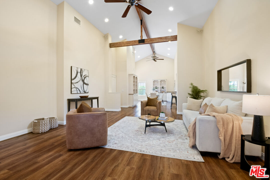 Stunning Home in the Burbank Hills Nestled on a desirable corner lot in the sought-after Burbank Hills, this beautifully home combines contemporary comfort with classic charm. Boasting an open and spacious floor plan, the interior is enhanced by elegant laminate wood flooring and soaring vaulted ceilings accented with striking wood beams. The gourmet kitchen is a chef's dream, featuring a large center island, custom cabinetry, and a built-in wine refrigerator perfect for both everyday living and entertaining. The adjacent dining room offers custom built-in cabinets and seamless indoor-outdoor flow through sliding doors that open to the private patio. Retreat to the luxurious master suite complete with built-in drawers and cabinetry, a generous spa-style bath with a soaking tub, and a spacious layout designed for relaxation. It has prewired for sound system throughout the house. Each additional bedroom includes its own ensuite bath and large closet, providing comfort and privacy for all. This meticulously maintained home is move-in ready and features a private yard and patio ideal for entertaining or quiet enjoyment.Interested in this Listing?