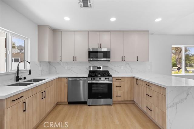 In the heart of Burbank's ever so popular Magnolia Park, the unveiling of this brand new SB9 building marks a monumental leap forward in urban development. Designed with a blend of innovative architecture, sustainability and efficient use of space, this structure exemplifies the evolving needs of the community. Where traditional homes meet contemporary style, a once dated front house has been redesigned and paired with three newly constructed units. The redesigned house with its charming covered front porch, features 3 bedrooms and 1¾ bathrooms, an open living space with pitched ceilings and custom kitchen with stainless steel appliances. The one-bedroom unit features ten-foot ceilings and is attached to the back of the front house but has a separate entrance. It features a full bathroom and custom two-toned kitchen cabinetry with quartz stone cabinetry. The back two story structure are two brand new identical 2 bedroom, 2 bath units. The ten-foot ceilings are featured throughout with an abundance of kitchen cabinetry and quartz counters. The upstairs unit offer outdoor living with a generous sized balcony. The downstairs unit has a private patio which would be ideal for entertaining and a BBQ. These two units are newly built and therefore have completely paid for solar panels. All units feature tankless water heaters, and the generous sized driveway has rooms for 6 cars. This new development provides an ideal combination of classic charm, advanced design, and multi-generational living potential making it a perfect addition to any real estate portfolio. Projected rental income on these vacant structures could potentially be $14,000 a month.Interested in this Listing?