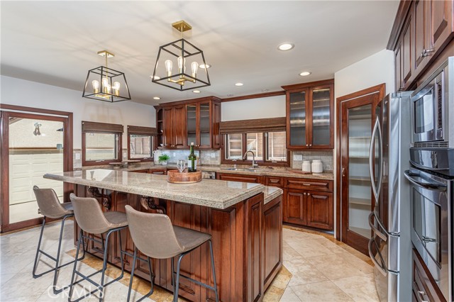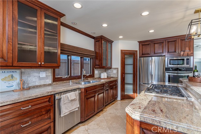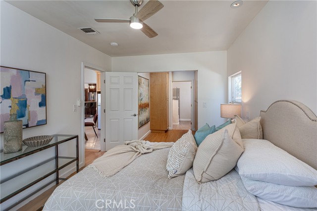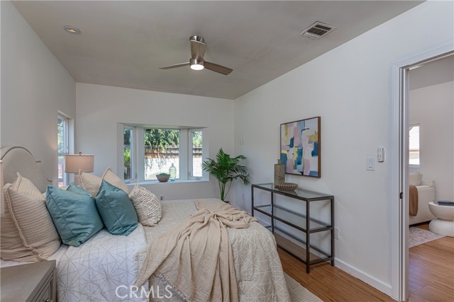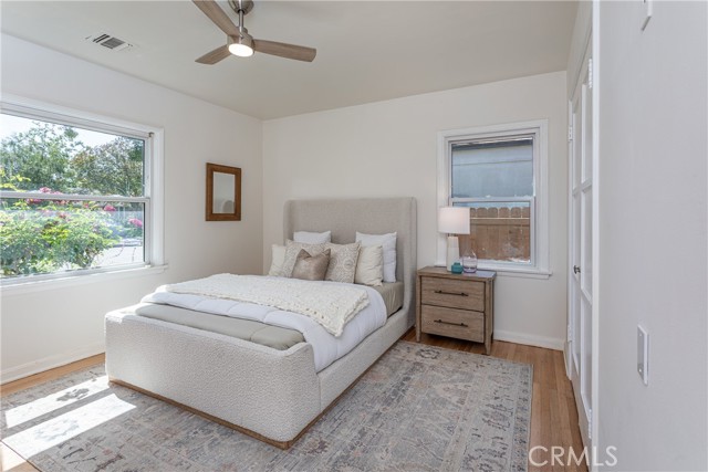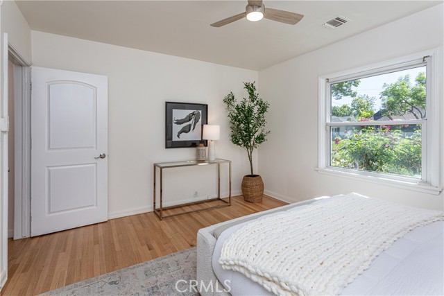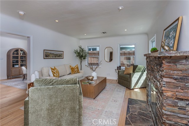 Welcome to 624 S Reese Pl, tucked into the heart of Burbank s highly desirable Rancho neighborhood. A stone path winds through manicured landscaping, guiding you to a warm and inviting home where timeless details meet modern comforts. Step inside and you're immediately greeted by streams of natural light dancing across original hardwood floors. The formal living room sets the tone with a stacked stone fireplace, recessed lighting, and serene charm. A bright bay window highlights the dining room, where a refined chandelier adds elegance without fuss. The chef s kitchen is a standout featuring rich espresso cabinetry, granite countertops, and a striking green stone subway-style backsplash. A wine fridge and generous walk-in pantry complete the space. From here, the home opens into a spacious family room with soaring angled ceilings, another stone fireplace, and seamless flow to the outdoors. Just off this room, the laundry area is neatly tucked behind a door, bathed in natural light from its own window proof that even utility spaces can feel bright and intentional. Venture upstairs along a stairway accented by textured stone and discover a true retreat: the primary suite. Vaulted ceilings, skylight, and a cozy stone fireplace create an elevated yet cozy ambiance. The cedar-lined walk-in closet, custom built-in wood cabinetry, and repeated stone elements add warmth and sophistication. A private balcony and a bonus sitting area at the landing complete this restful haven. Downstairs, two additional bedrooms with original wood floors are located at the front of the home, with a full guest bathroom in between featuring both a standing shower and tub, plus extra hallway storage. At the rear of the property, a Junior ADU offers its own entrance, full eat-in kitchen, spacious living area, separate bedroom with walk-in closet, and a modern bath with walk-in shower perfect for guests, extended family, or added income potential. The private backyard features new sod, an upgraded sprinkler system, and a detached two-car garage with gated driveway. A bonus storage room behind the garage offers an ideal workspace or hobby area. This is Burbank living at its best.