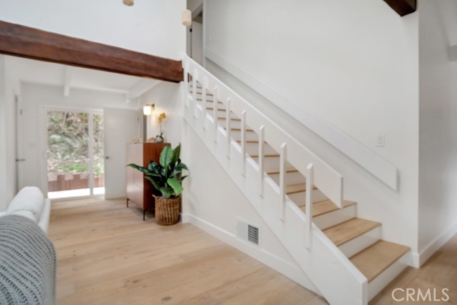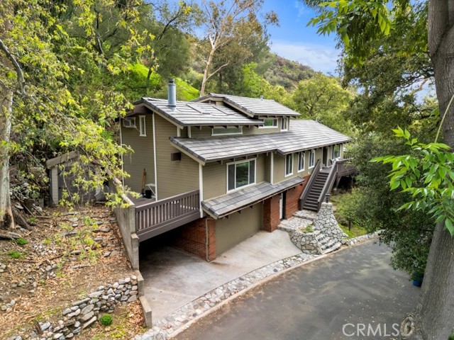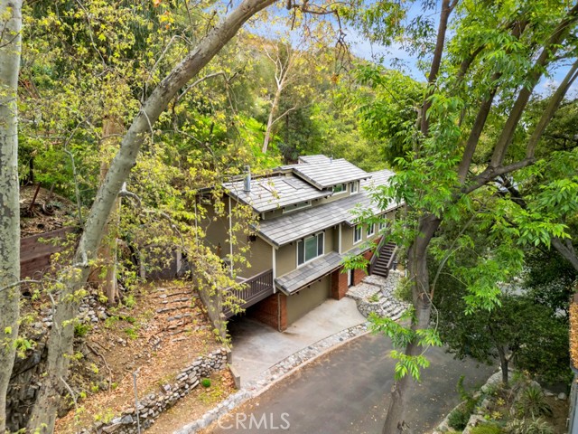 An Inspired Hillside Sanctuary Just Minutes from Burbank's Creative Core Perched in the tranquil Verdugo Mountains above Burbank, this luminous 3+ bedroom, 4-bath post-and-beam retreat invites you into 2,700 sq. ft. of thoughtfully designed space that feels more like a treehouse studio than a traditional home. Plus a bonus room for office, workout/hobby or 4th bedroom with full bathroom on ground floor. Bathed in natural light from skylights and soaring 20-foot ceilings, this architectural gem offers a serene retreat for anyone seeking inspiration and tranquility whether you're an artist, entrepreneur, remote professional, or simply someone who values a peaceful space close to the city. Step into a bright, airy living area where beamed ceilings and a cozy fireplace create the ideal setting for slow mornings, intimate gatherings, or uninterrupted work sessions. The open-concept kitchen elevated by Brazilian Quartzite counters and custom-paneled appliances from Miele, Jenn-Air, and Dacor is as functional as it is beautiful, seamlessly blending form and utility for culinary creatives and entertainers alike. The main level includes a spacious guest suite, while the upstairs offers a dreamy primary suite with spa-style bath and direct access to a private rooftop deck perfect for sketching at sunrise, reading under the trees, or stargazing after a long day. Street level, a separate bedroom with a ¾ bath provides flexible space for a dedicated studio, quiet office, or private guest retreat. Open the patio doors and let the canyon breeze stir your senses this is a home where nature and imagination coexist in harmony. Tucked along peaceful Country Club Drive, this hillside hideaway feels worlds away yet sits just minutes from downtown Burbank's studios, cafs, and creative community. EV charger-equipped garage, carport, and timeless design details complete this rare offering of light, space, and seclusion.Interested in this Listing?